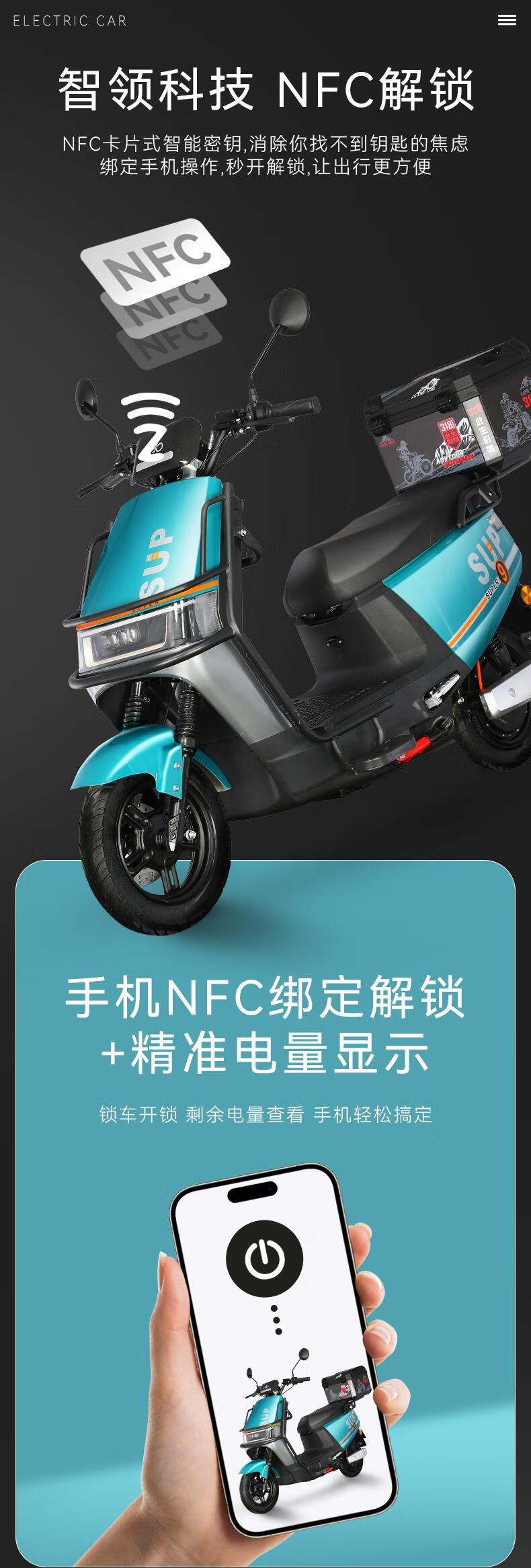 Permanent permanent electric motorcycle 2025 new 72V black gold graphene long range NFC smart two-wheeled electric motorcycle interstellar gray NFC (comes with guardrail and tail box) 72V20ah has a range of about 80 kilometers