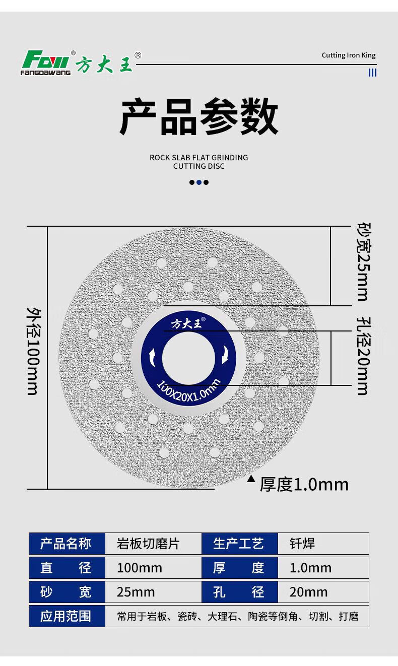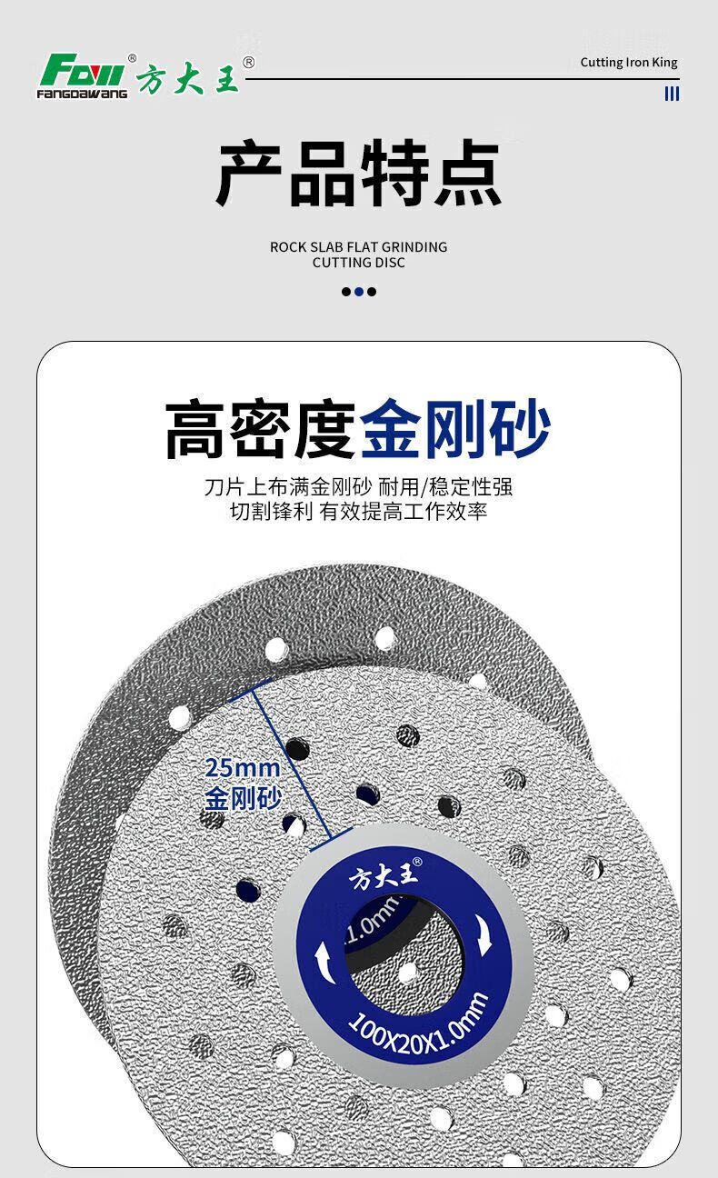 Fangdawang rock plate cutting piece, ceramic tile trimming stone flat grinding 45 chamfering and bevel cutting grinder grinding piece, dual-purpose sharp, industrial grade emery + reducing ring, 2 pieces