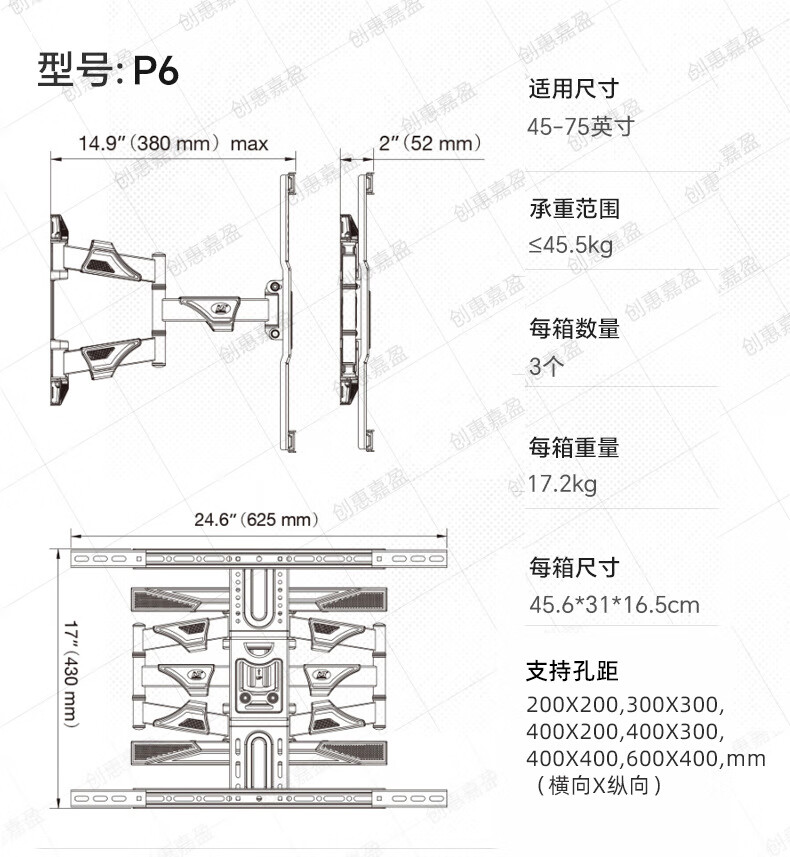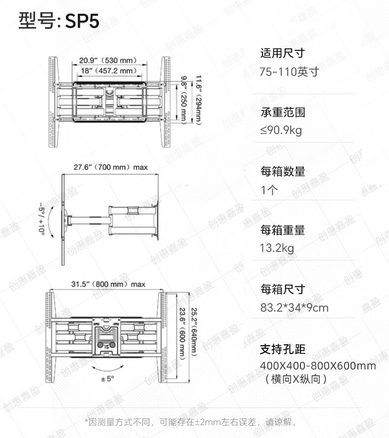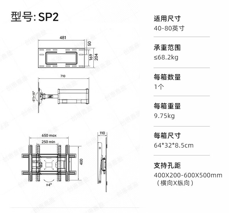 NB (ERGONOMIC) NBP4 TV bracket telescopic rotating P65 TV wall bracket SP5 Jingdian P6 40-75 inches load-bearing 45.5kg
