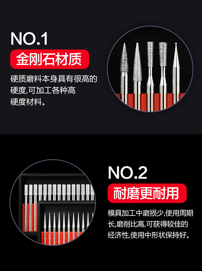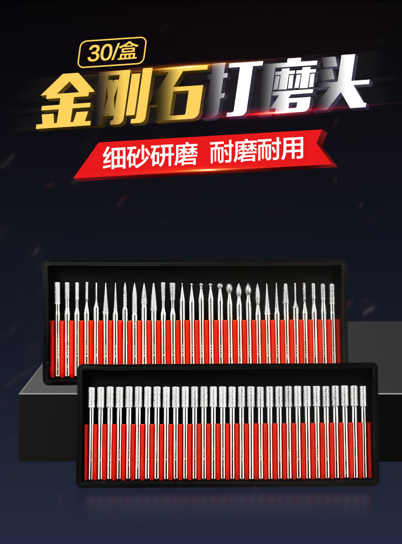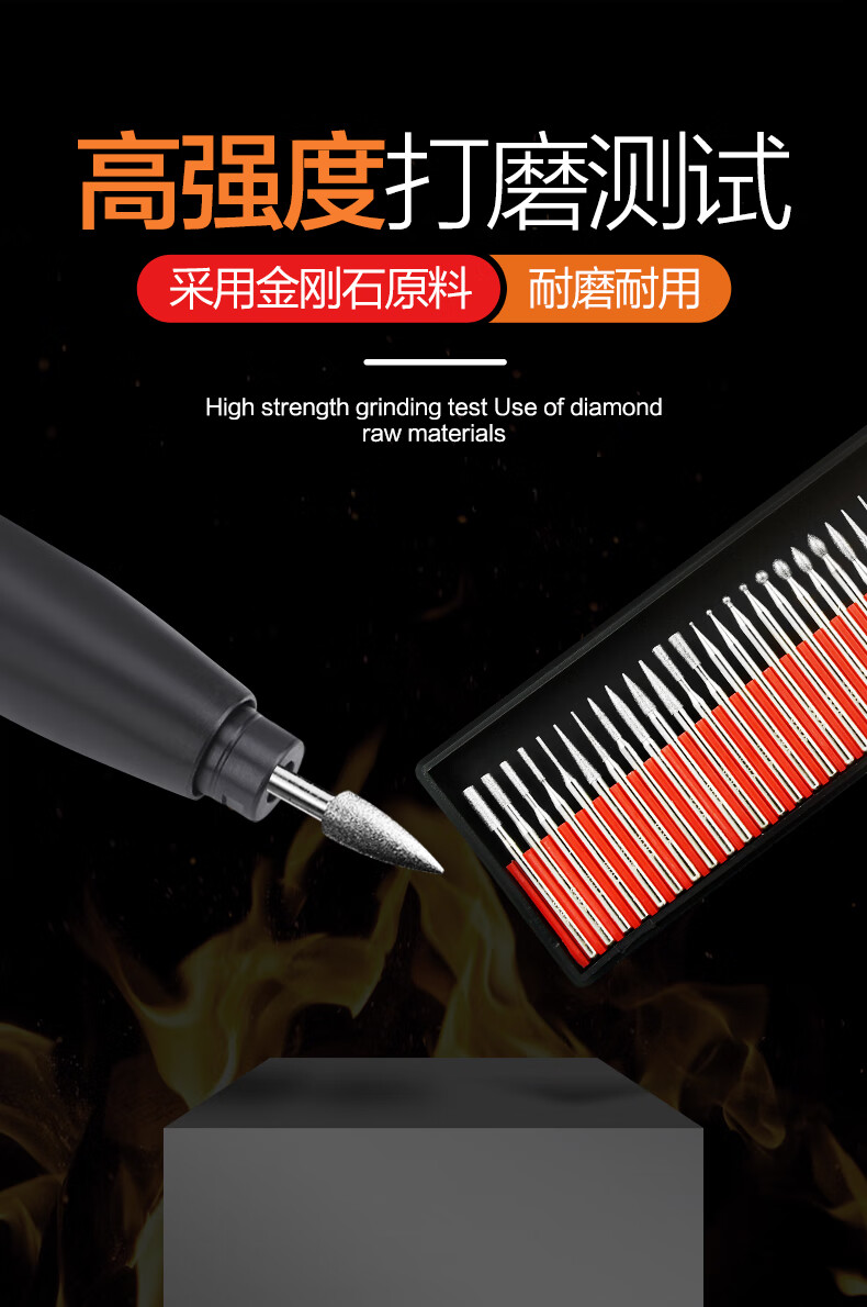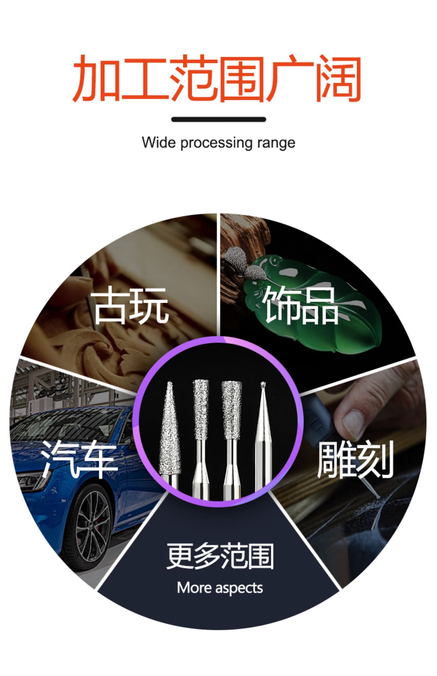 Yue Changsheng diamond grinding head alloy grinding head jade emery grinding head 3MM rod engraving head grinding needle diamond set 3 handles imported cylinder 8MMA80 (30 pieces)