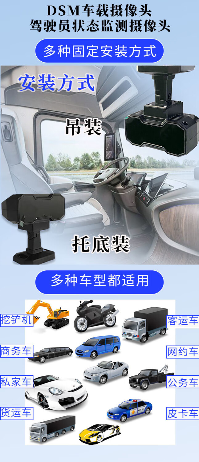Fatigue warning device X6 driving anti-drowsiness reminder truck driver DMS face recognition infrared smart camera DSM integrated camera