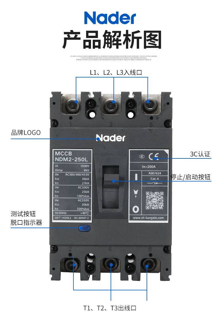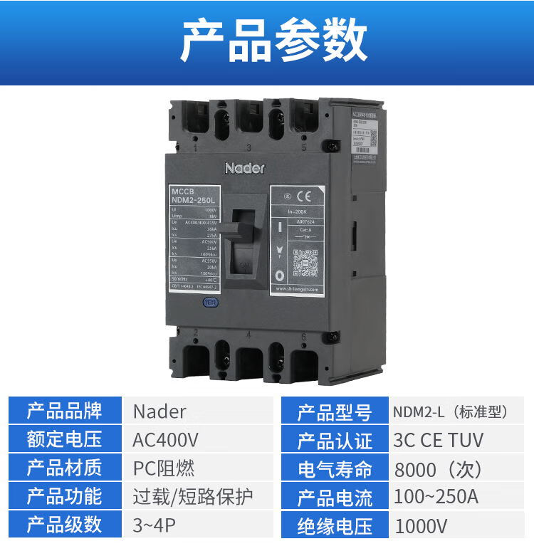 Shanghai Liangxin Electrical/L Molded Case Circuit Breaker NDM2-250L/3300 Air Switch 3P NDM2-250L 3P x 250A