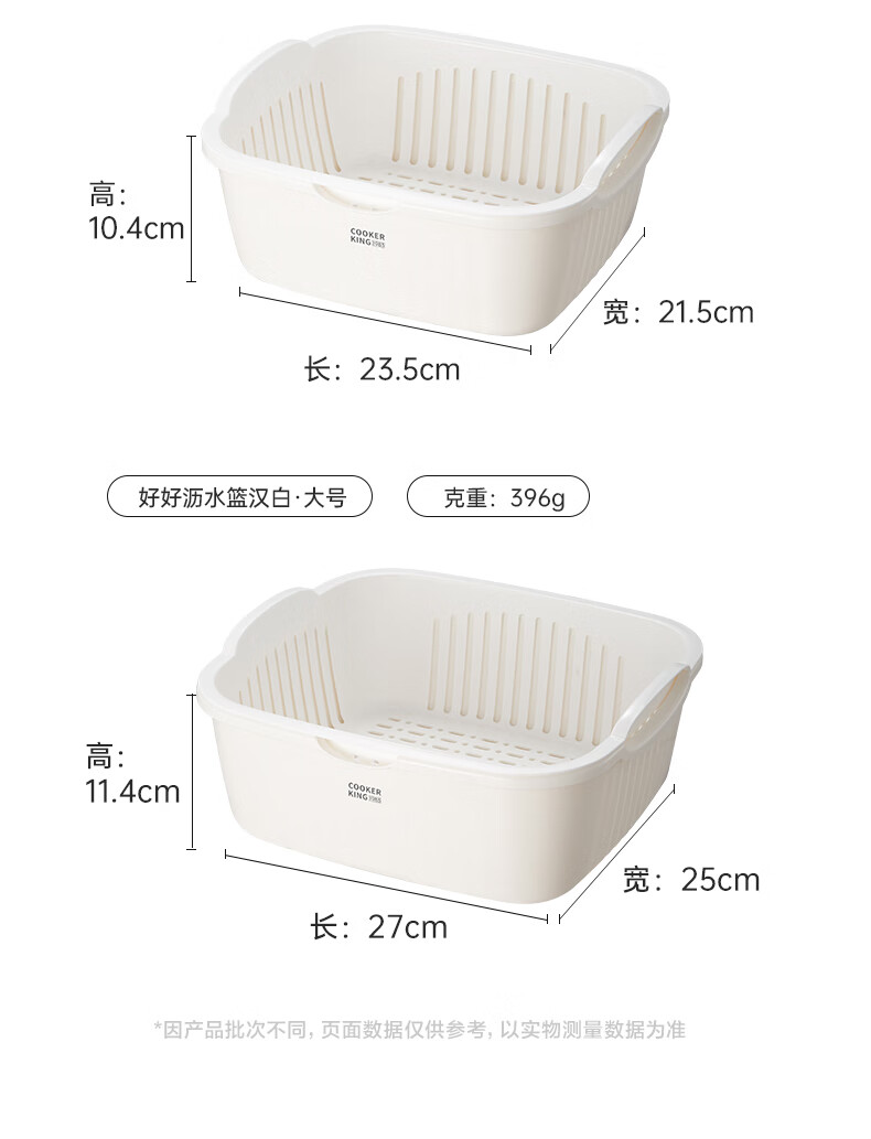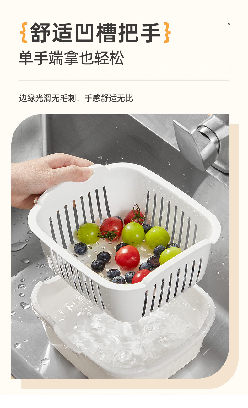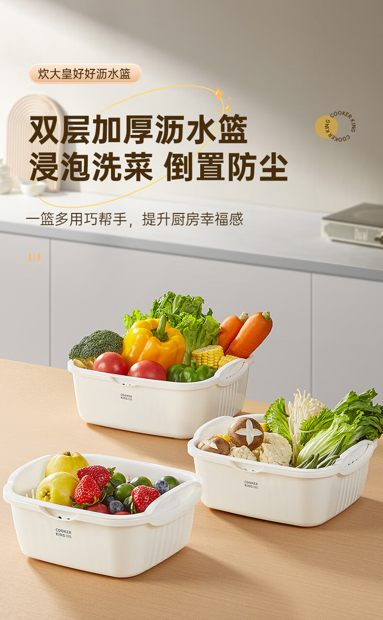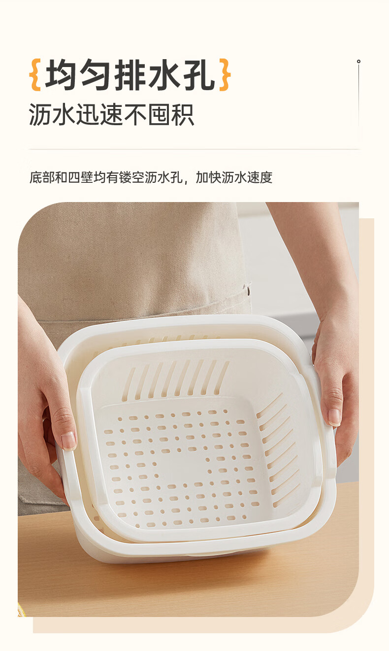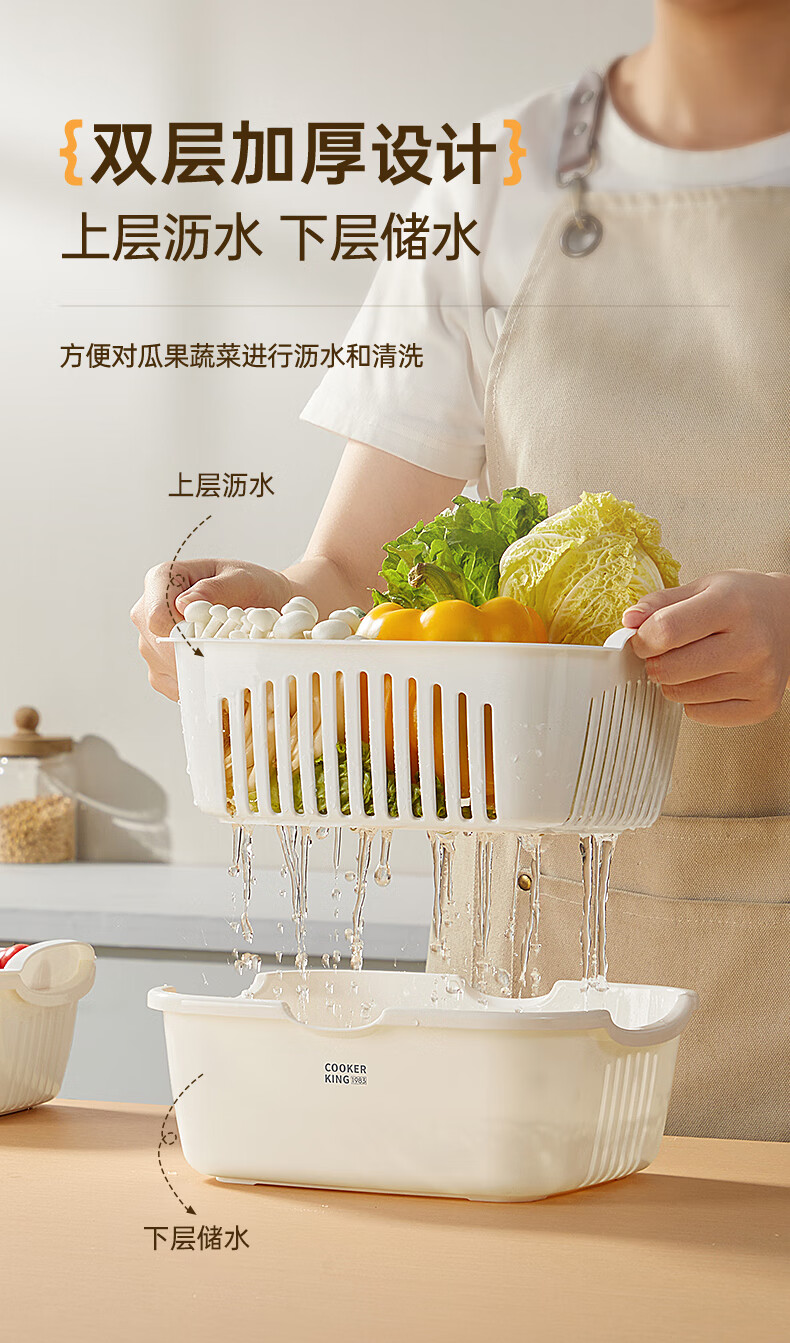 Cui Dahuang Drainage Basket Wash Basin Double Layer Thickened Kitchen Household Fruit Basket Drainage Basket Large (27*25*11.4)