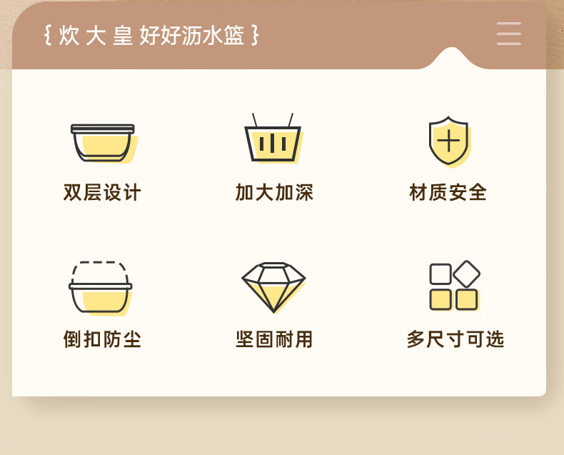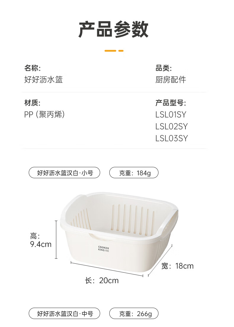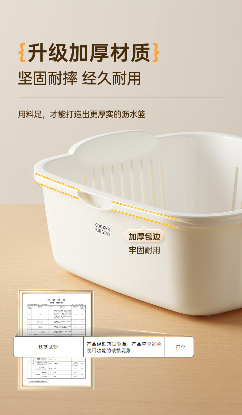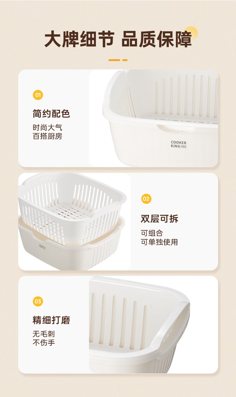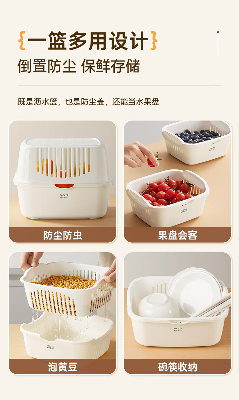 Cui Dahuang Drainage Basket Wash Basin Double Layer Thickened Kitchen Household Fruit Basket Drainage Basket Large (27*25*11.4)
