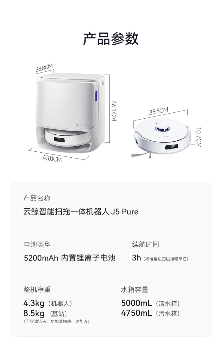 NARWAL sweeping robot J5 Pure sweeping and mopping all-in-one automatic cleaning fully automatic mopping and mopping floor scrubber robotic arm bionic hand with expanded hair and 0 tangle water tank version