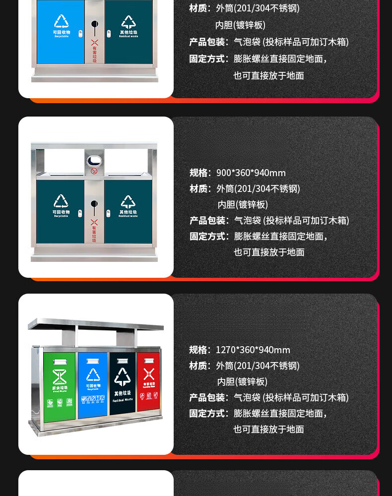 Outdoor trash can classification stainless steel park community scenic area property peel box sanitation municipal street classification trash can punching 1mm (price can be negotiated, welcome to inquire)
