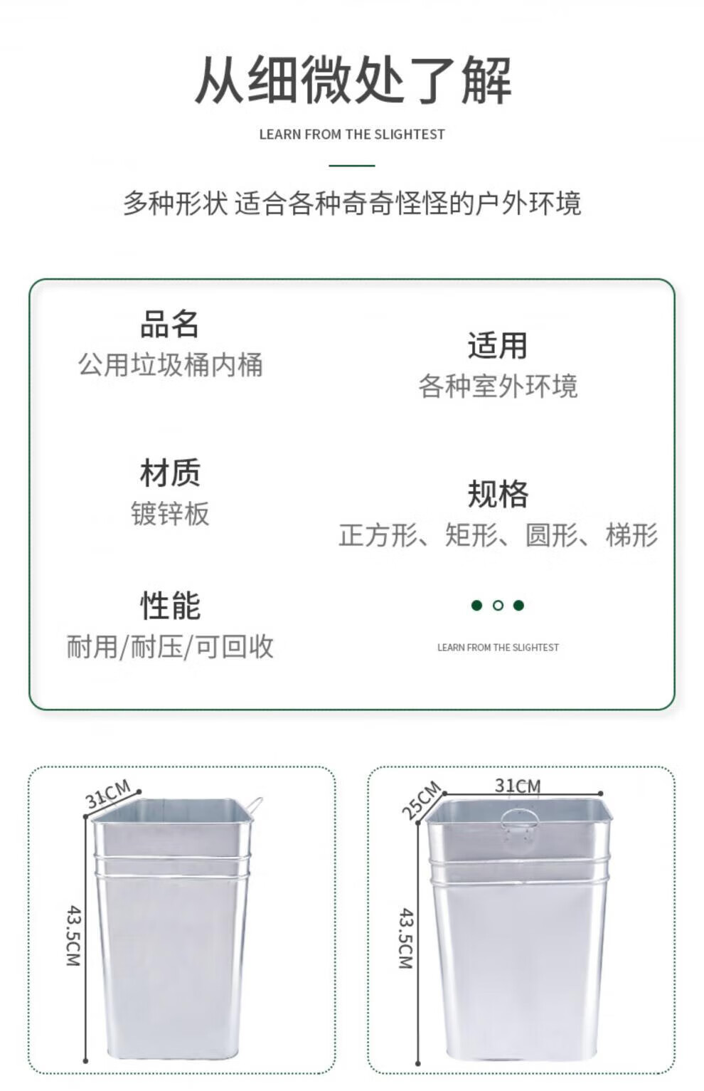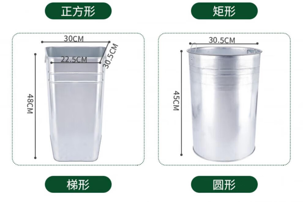 Outdoor trash can liner, peel box, galvanized plate square storage, thickened stainless steel iron barrel, round barrel, custom-made square barrel, length 30, width 24.5, height 43