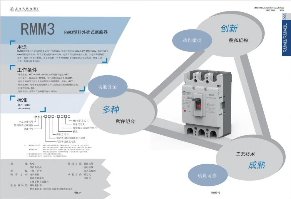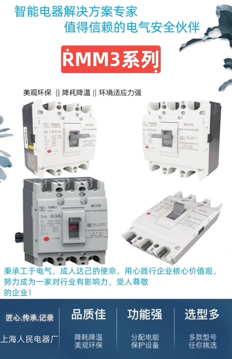 Shanghai People's Shanglian Molded Case Circuit Breaker-63S/L/H/3300 125A160A 250A400/630 125A RMM3-250 type x L