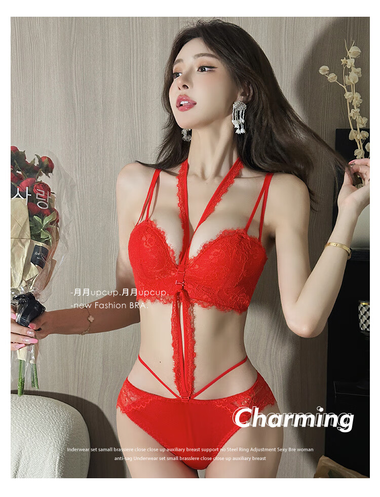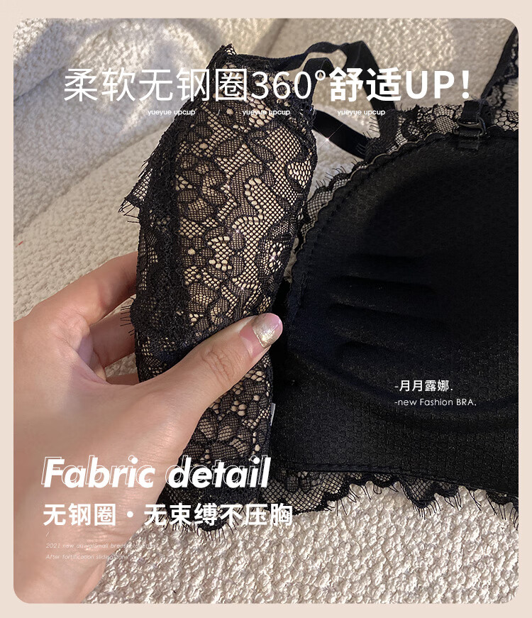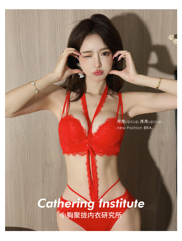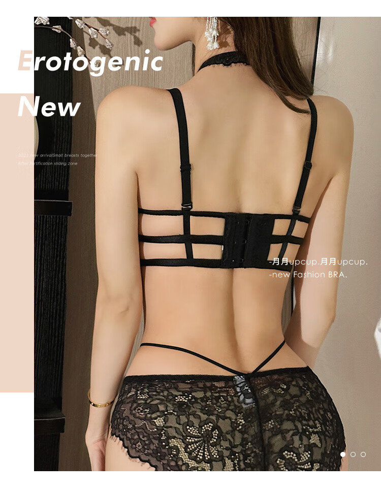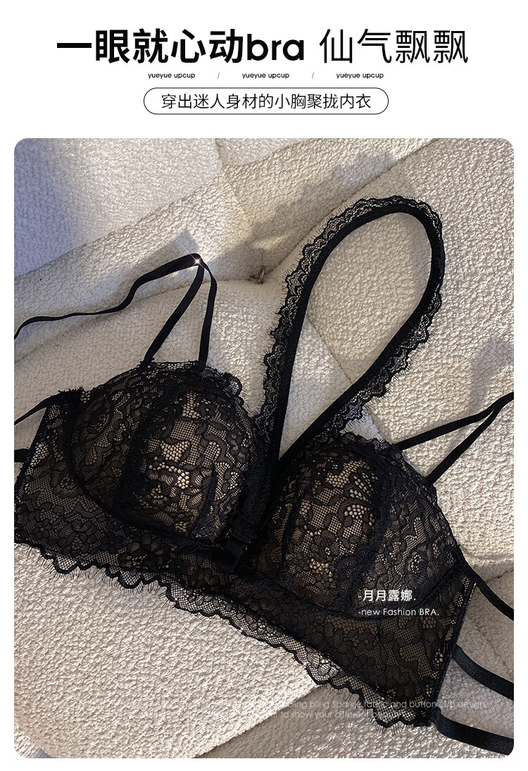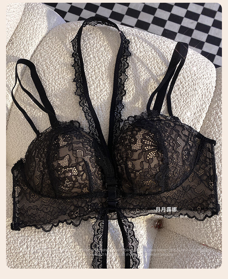 Triumph push-up display large bra halter neck bra for women with small breasts to gather pure lust sexy lace bra to control secondary breasts and prevent sagging breasts sexy black (underwear + underwear) 75A 34BC universal cup