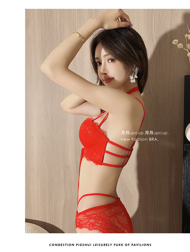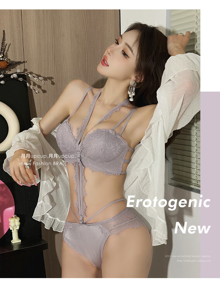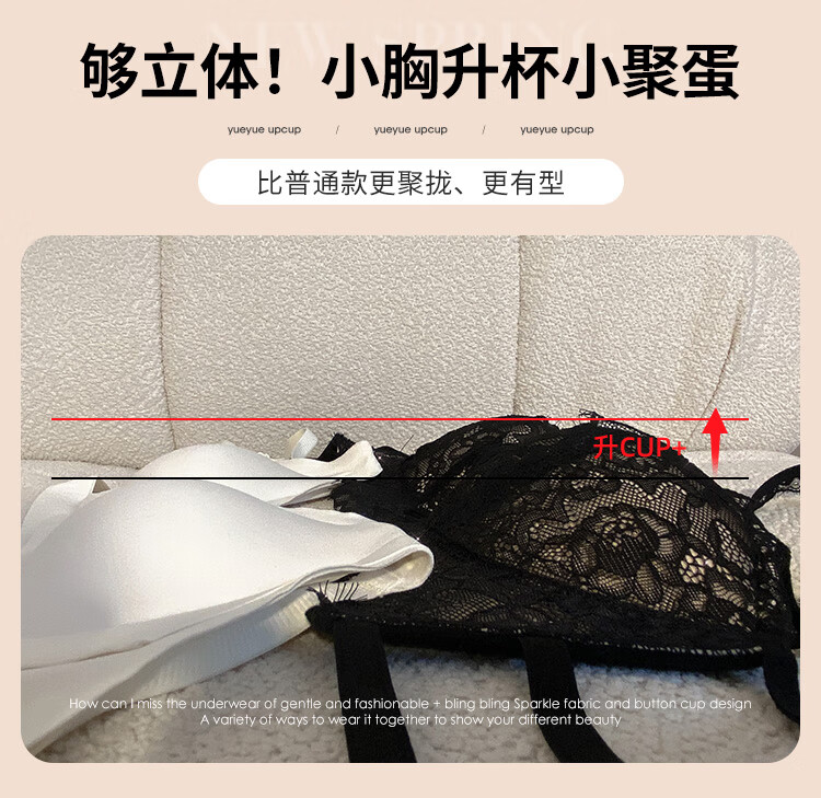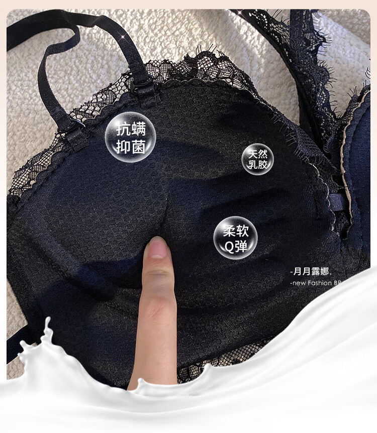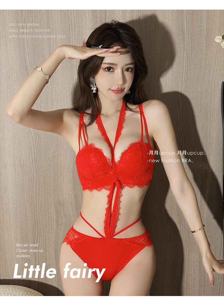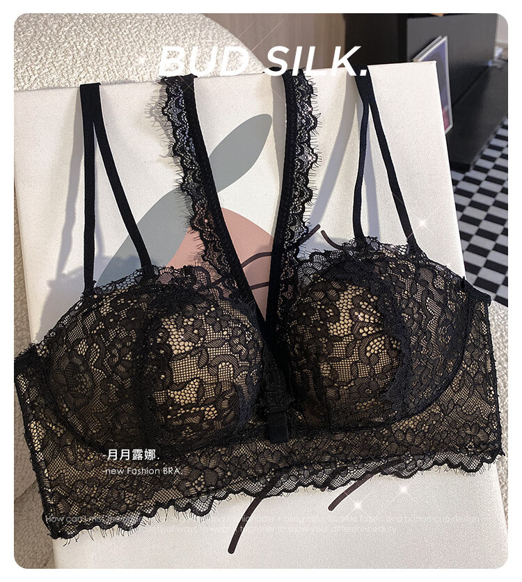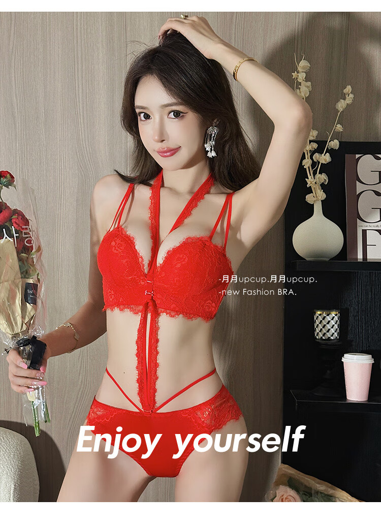 Triumph push-up display large bra halter neck bra for women with small breasts to gather pure lust sexy lace bra to control secondary breasts and prevent sagging breasts sexy black (underwear + underwear) 75A 34BC universal cup