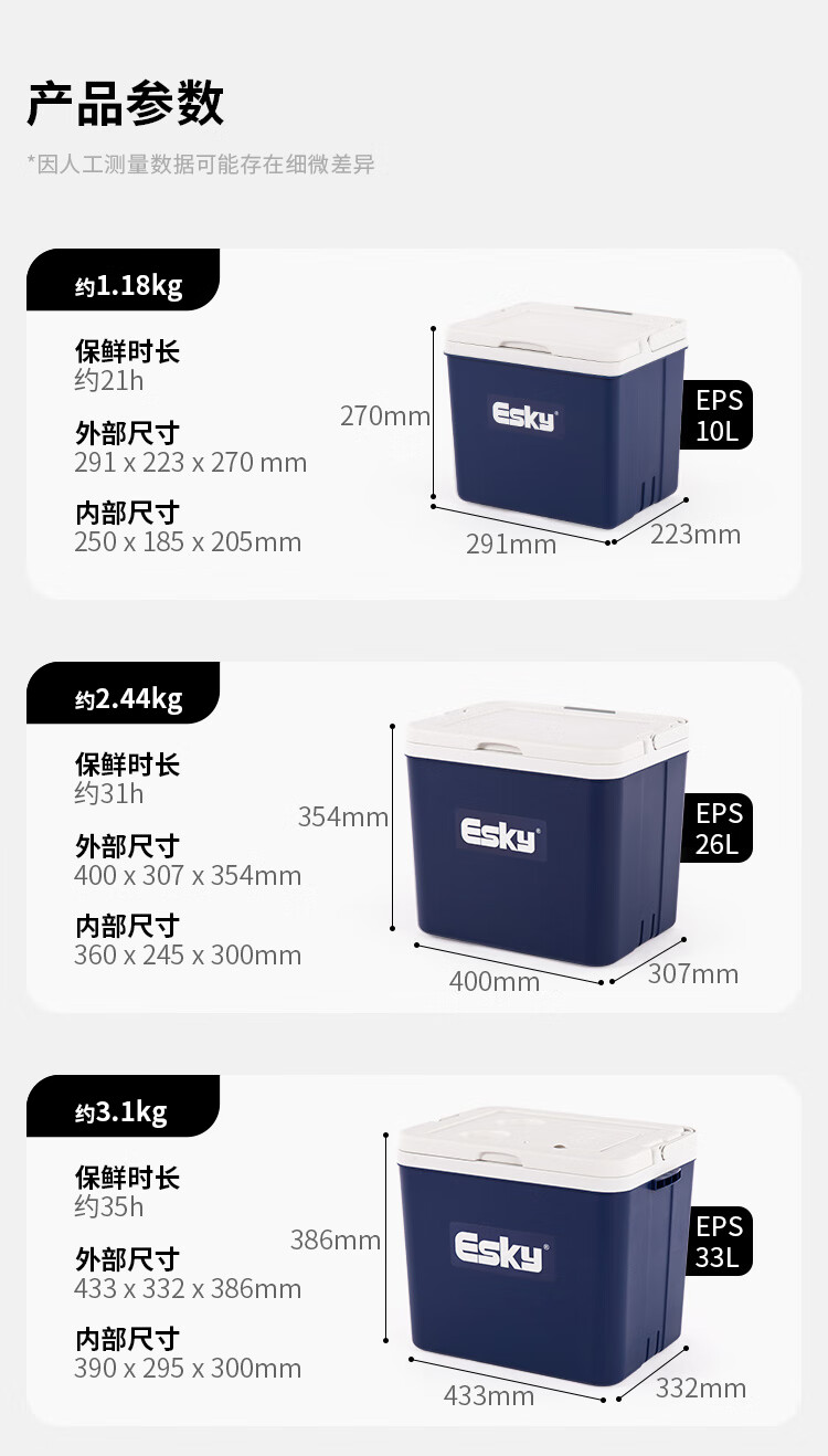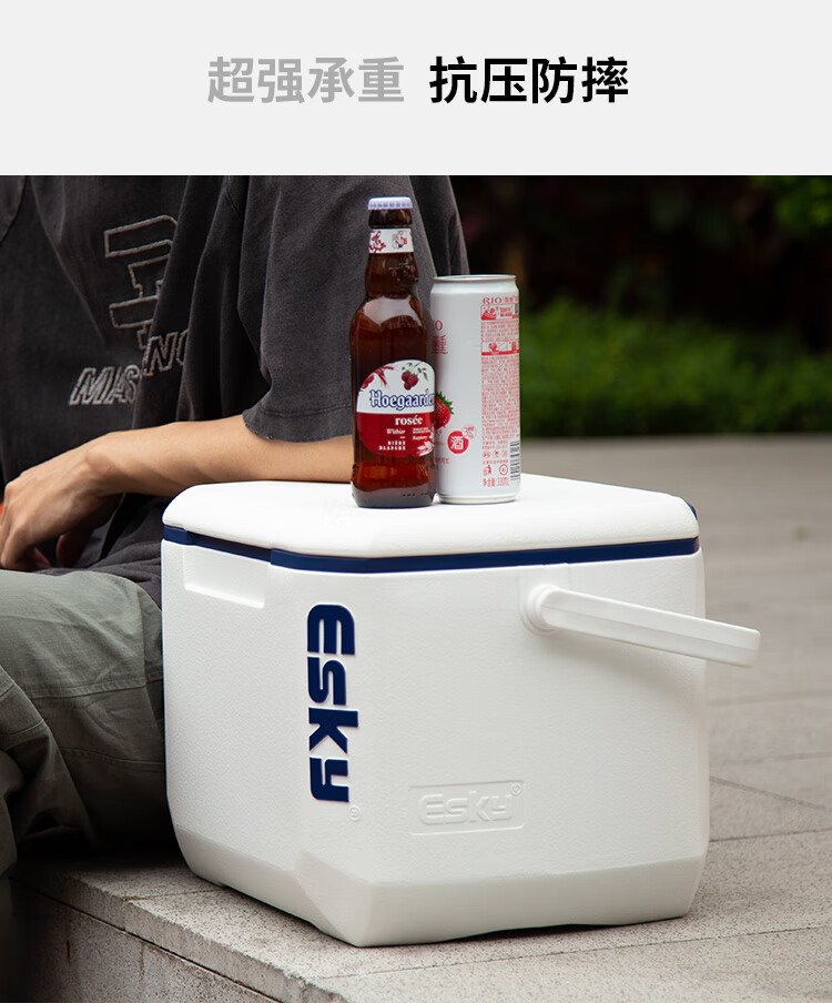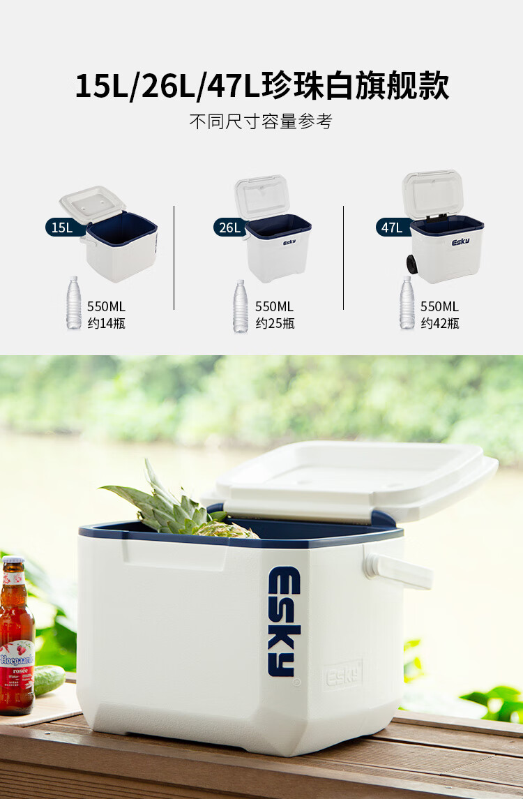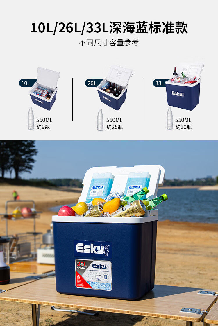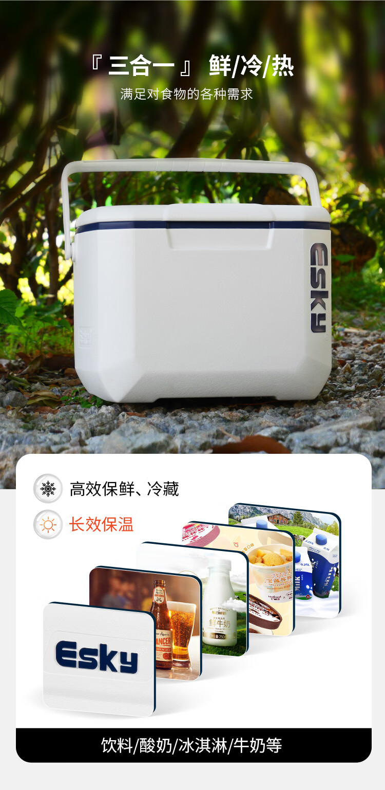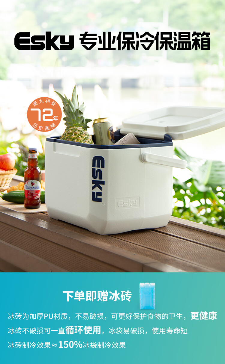 Esky Insulated Box Refrigerator Home Car Outdoor Food Cooler Portable Commercial Place 27L Deep Sea Blue Classic Free Ice Brick*2 14