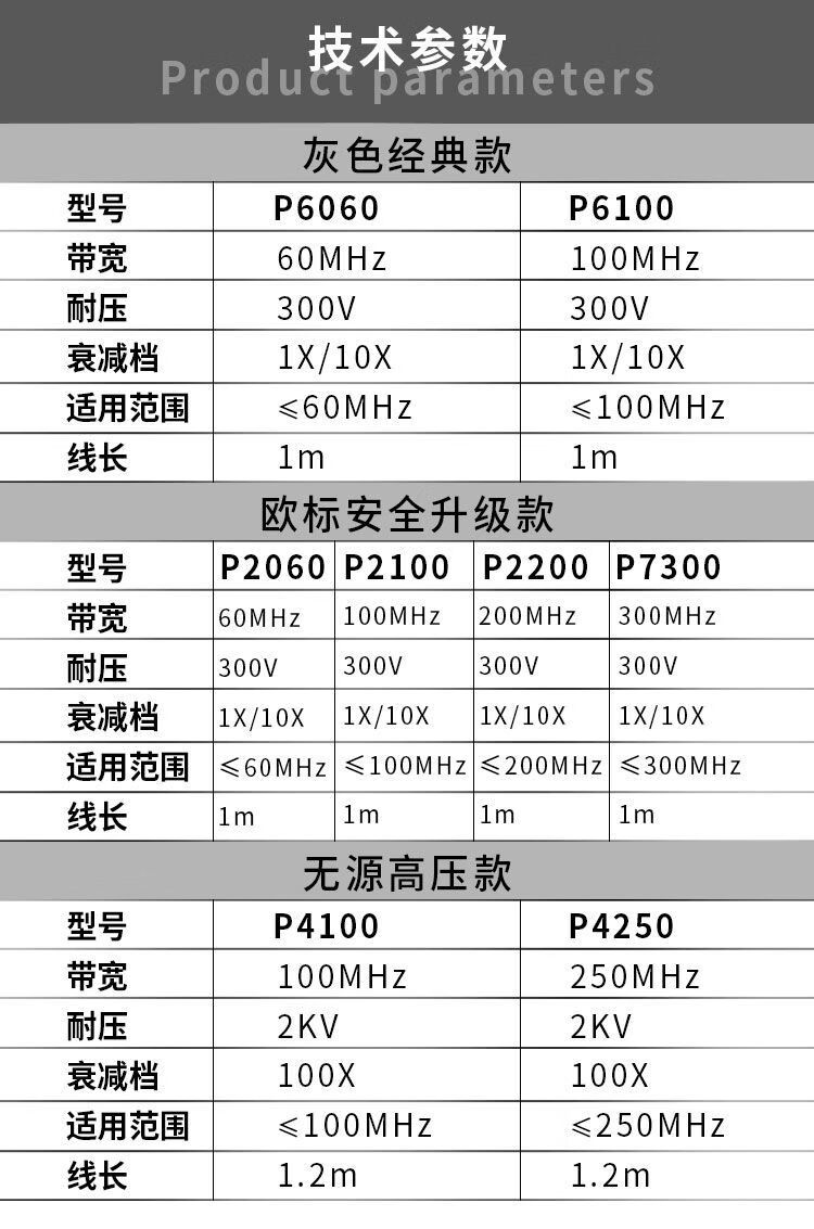 Oscilloscope probe 20-300MHz universal oscilloscope probe test line high-voltage probe oscilloscope instrument pen classic P6100 (100MHz)
