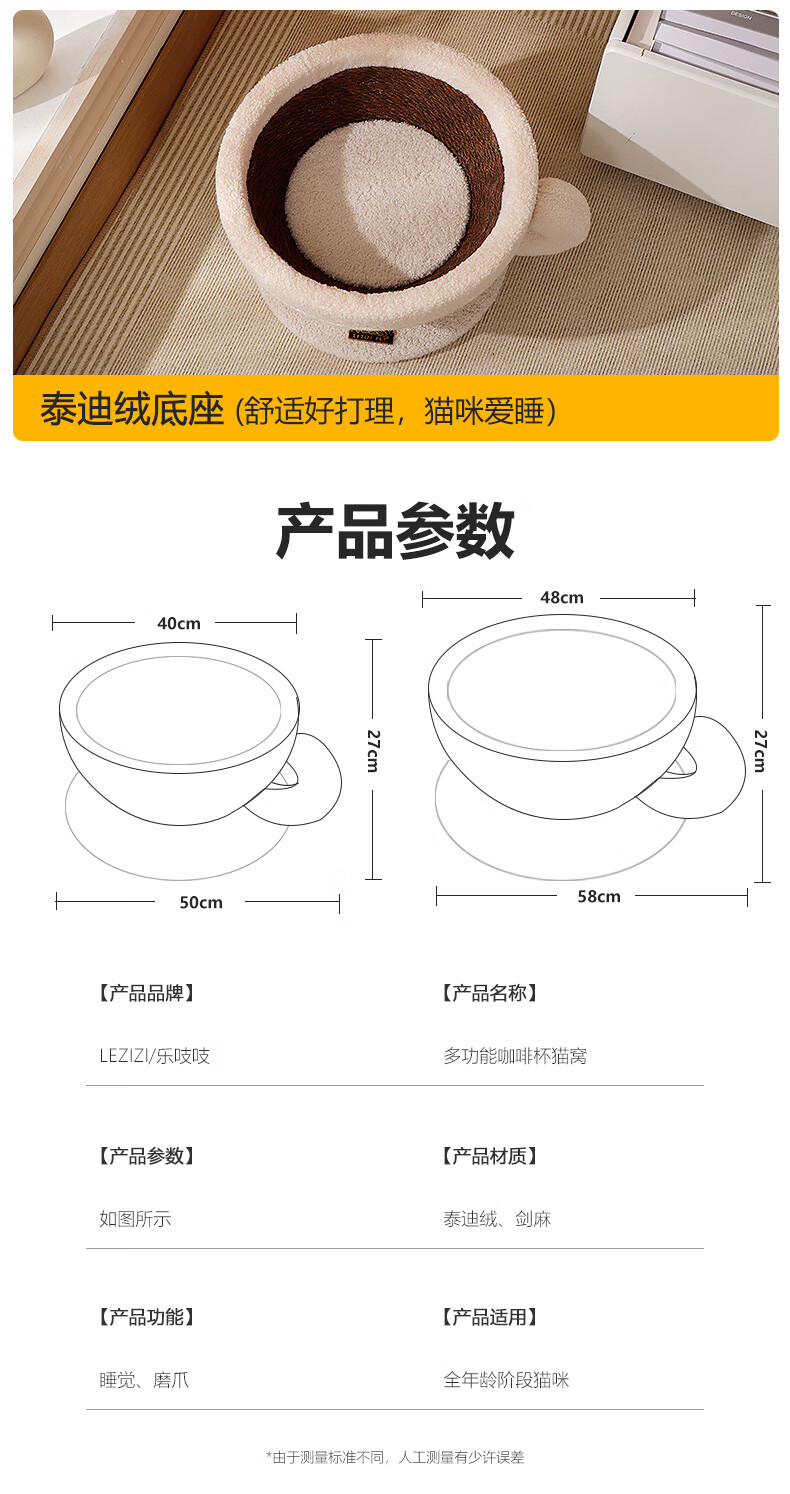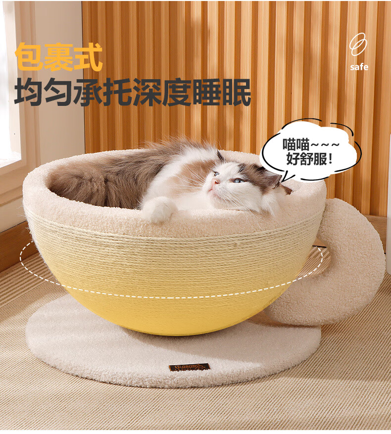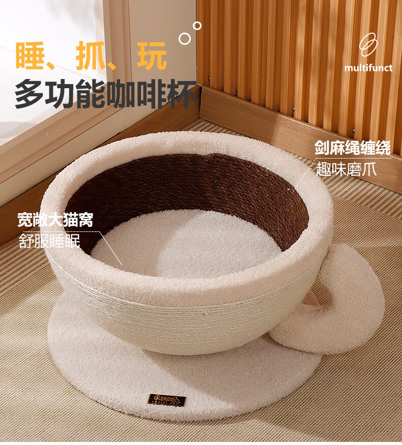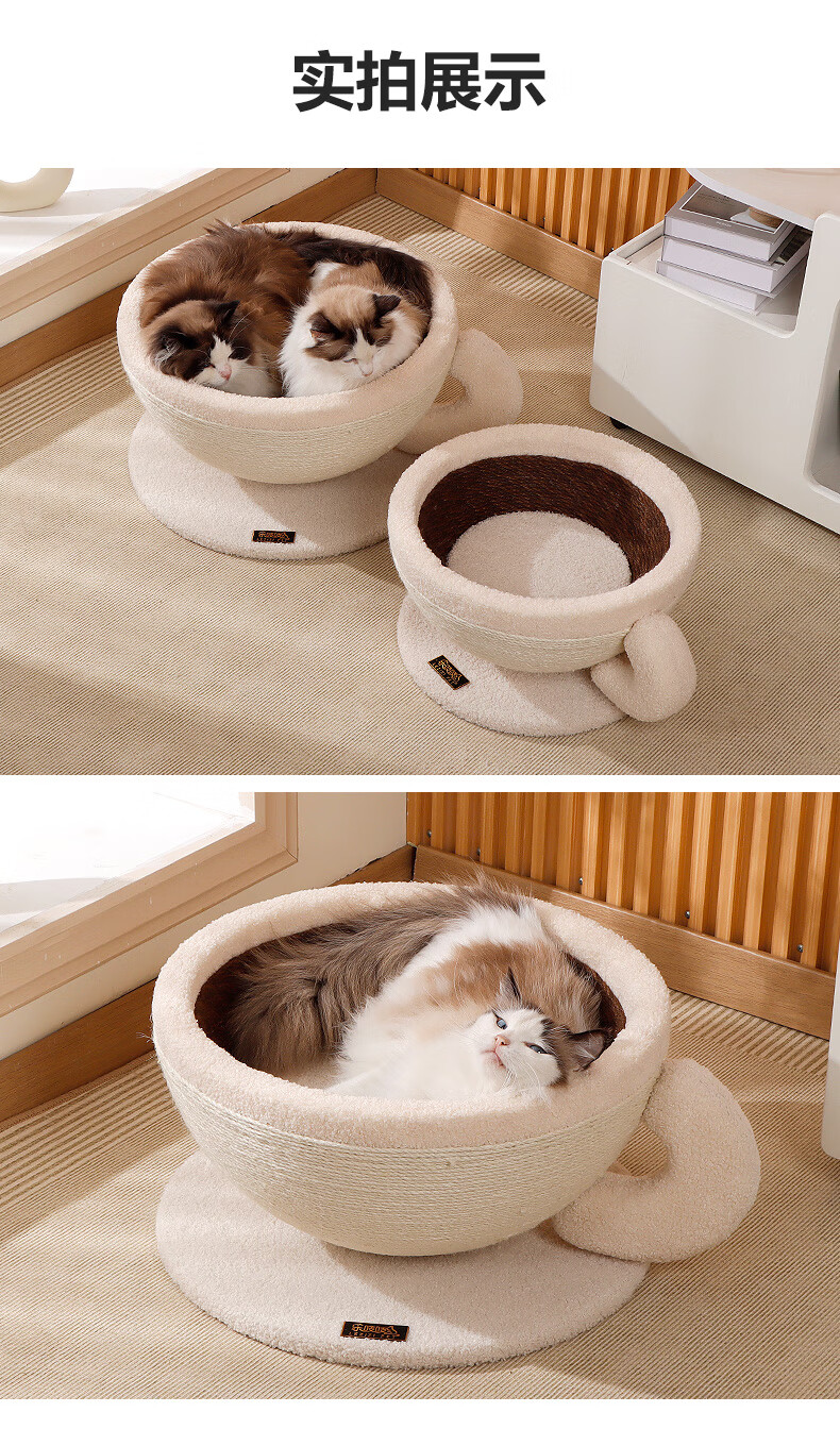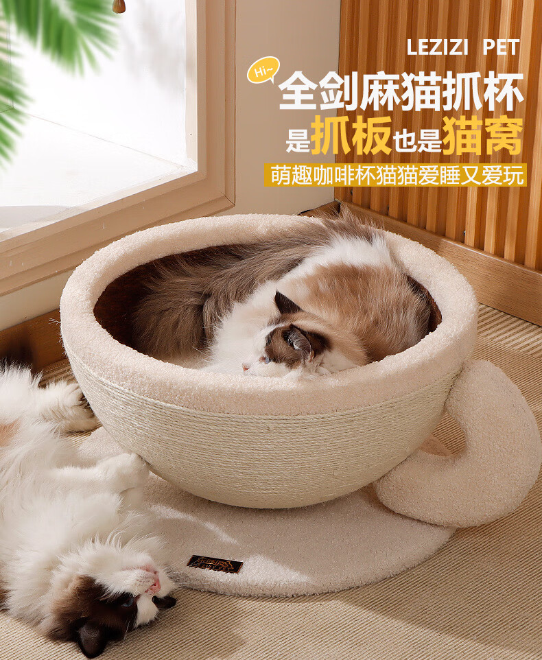 JD Logistics Lezhizhi coffee cup cat nest sisal cat nest one-piece round shape wear-resistant, non-shedding and scratch-resistant coffee cup - large (13cm deepened, 15 catties cat can sleep)