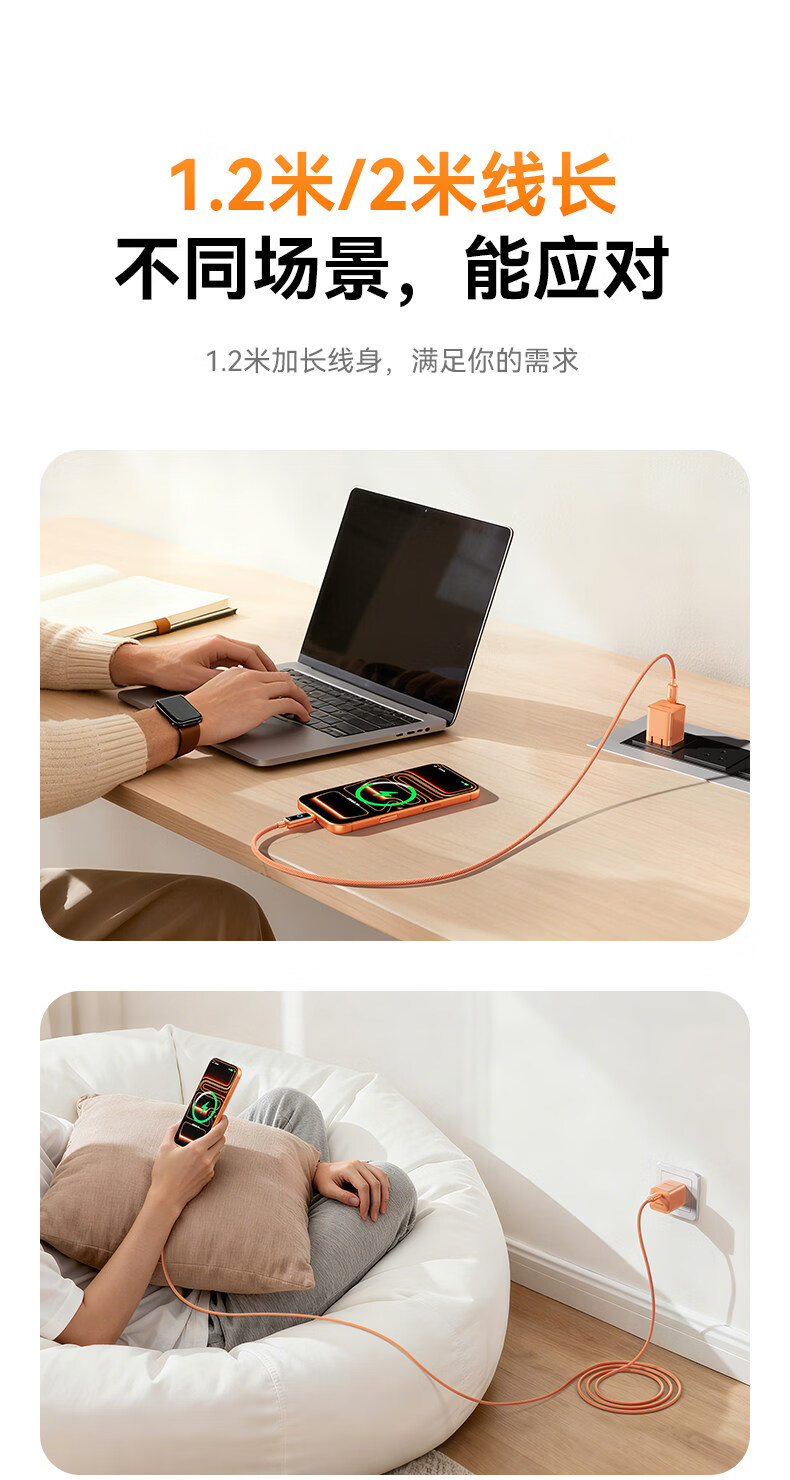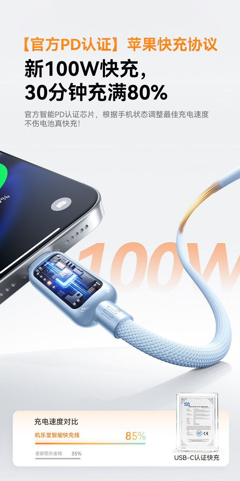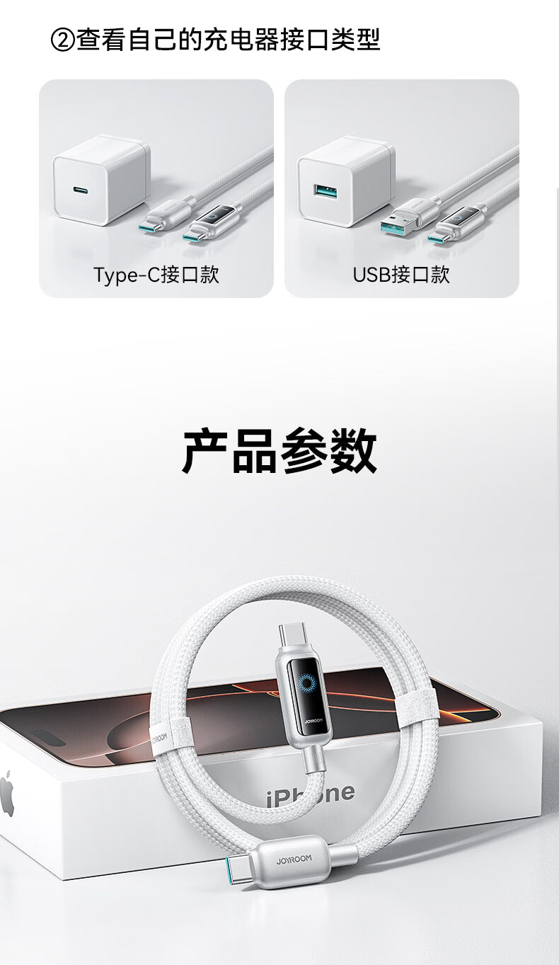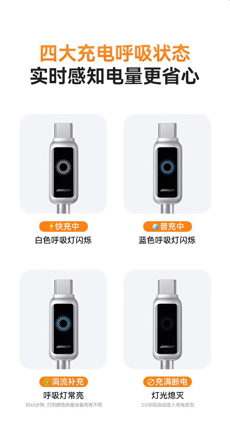 Jiletang Intelligent Breathing Light丨Automatically shut off when full. Data cable 100W fast charging cable. Automatic power off. Charging cable suitable for lightning Apple 17/16/15/Huawei Type-C. Brilliant Silver White 100W safe fast charging dual C line 1.2m. Intelligent Breathing Light Temperature Control丨Automatically power off when full.丨Safe and fast charging