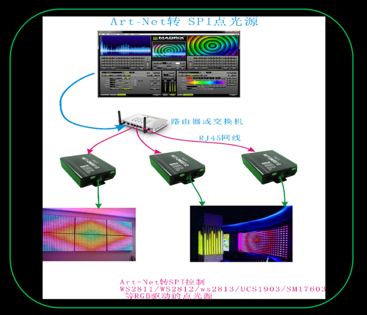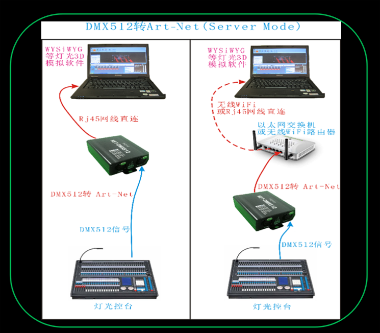 Yue Changsheng ArtNet network to DMX512 controller 512 channel physical console connected to WYSIWYG1024 channel LiD-NET-B512 (512 single network port without screen)