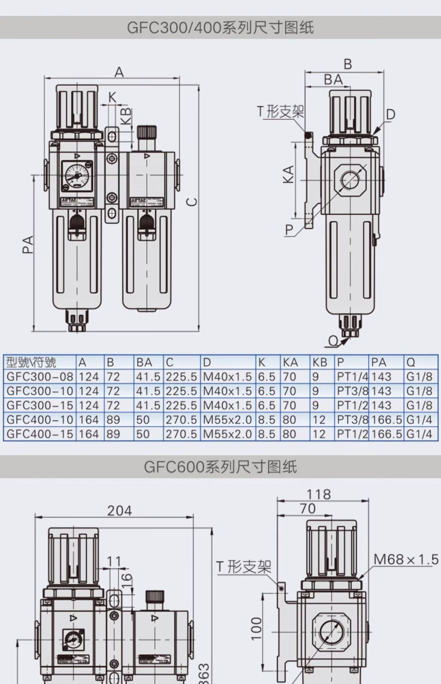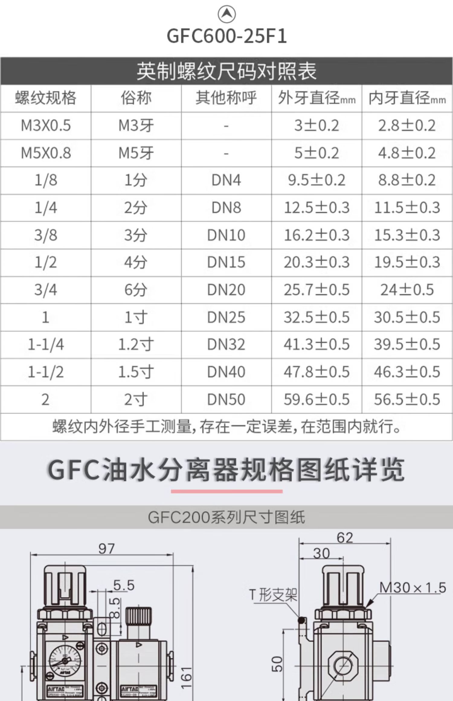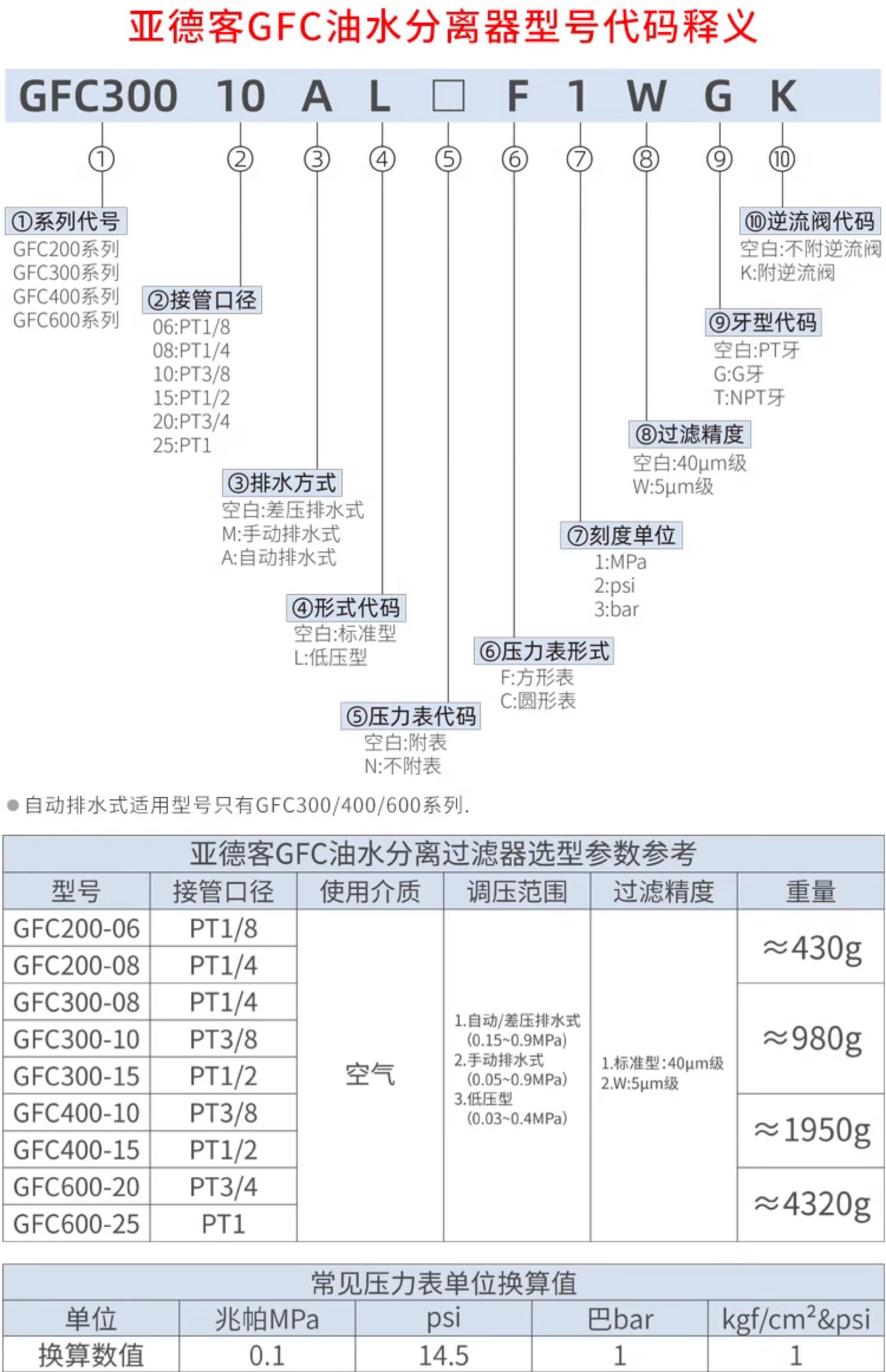 Yue Changsheng Airtac air source processor oil-water separation filter GFC200-08 300-10 400-15 600-25 GFC30015AN automatic drainage type without belt table