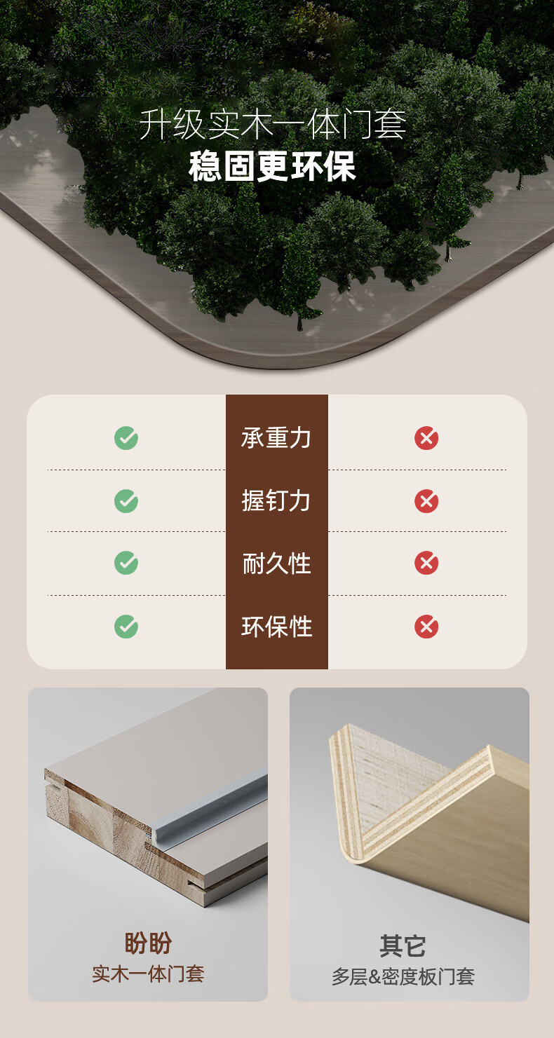 Panpan bedroom door solid wood composite door wooden door bedroom door paint-free wooden door room wooden door indoor wooden door room door PA3-3 paint-free PV1-3+solid wood filling+hardware JD-1