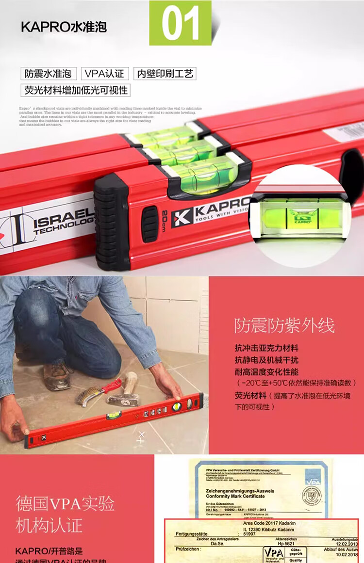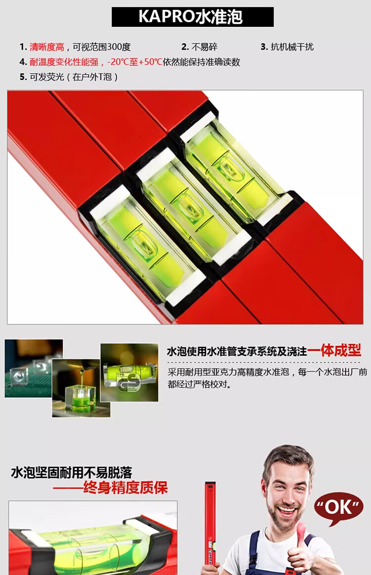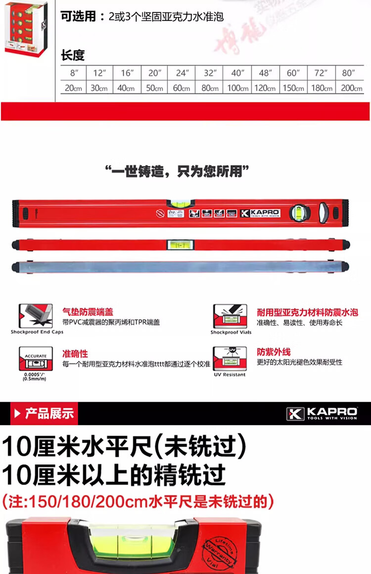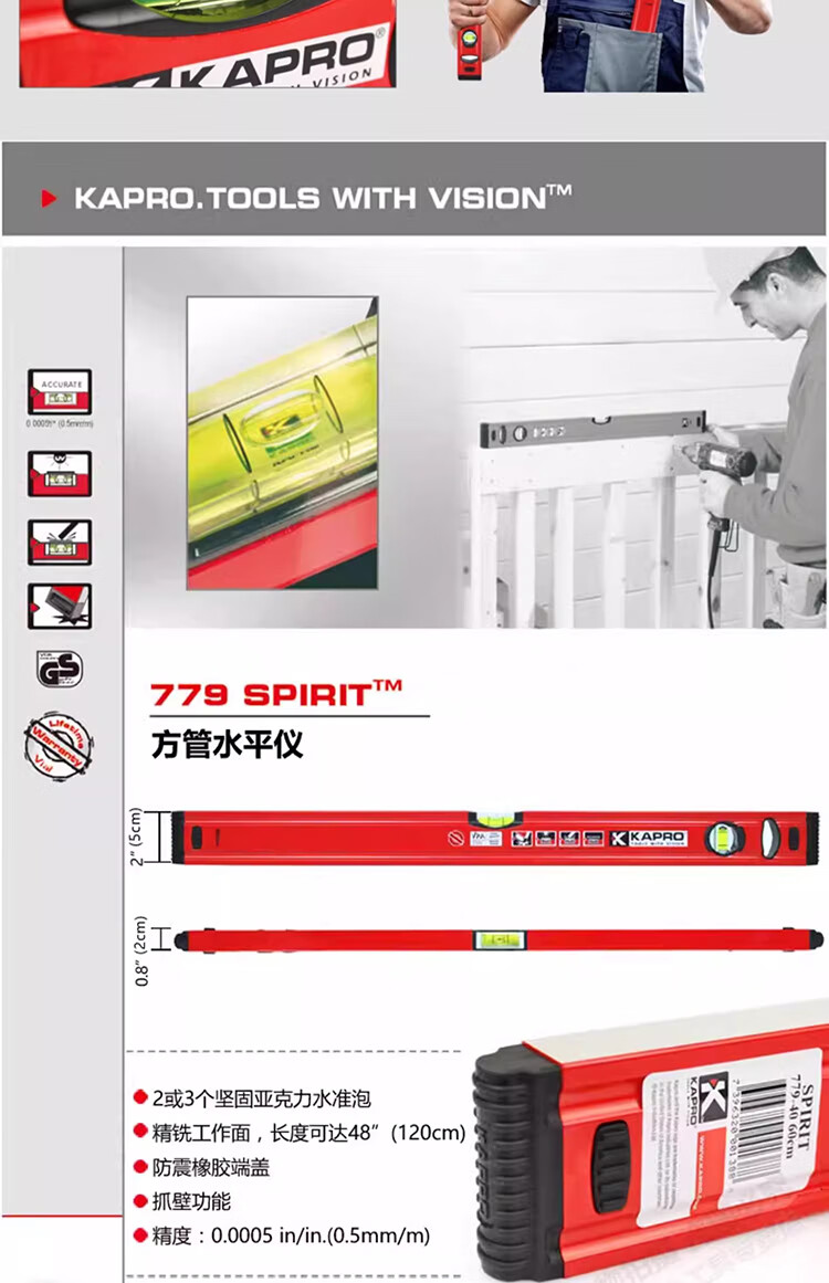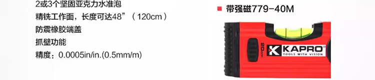 KAPRO Israel KAPRO 779 level aluminum alloy mini level level VPA high precision magnetic small anti-fall 60cm non-magnetic/3 blisters 779-41-60cm