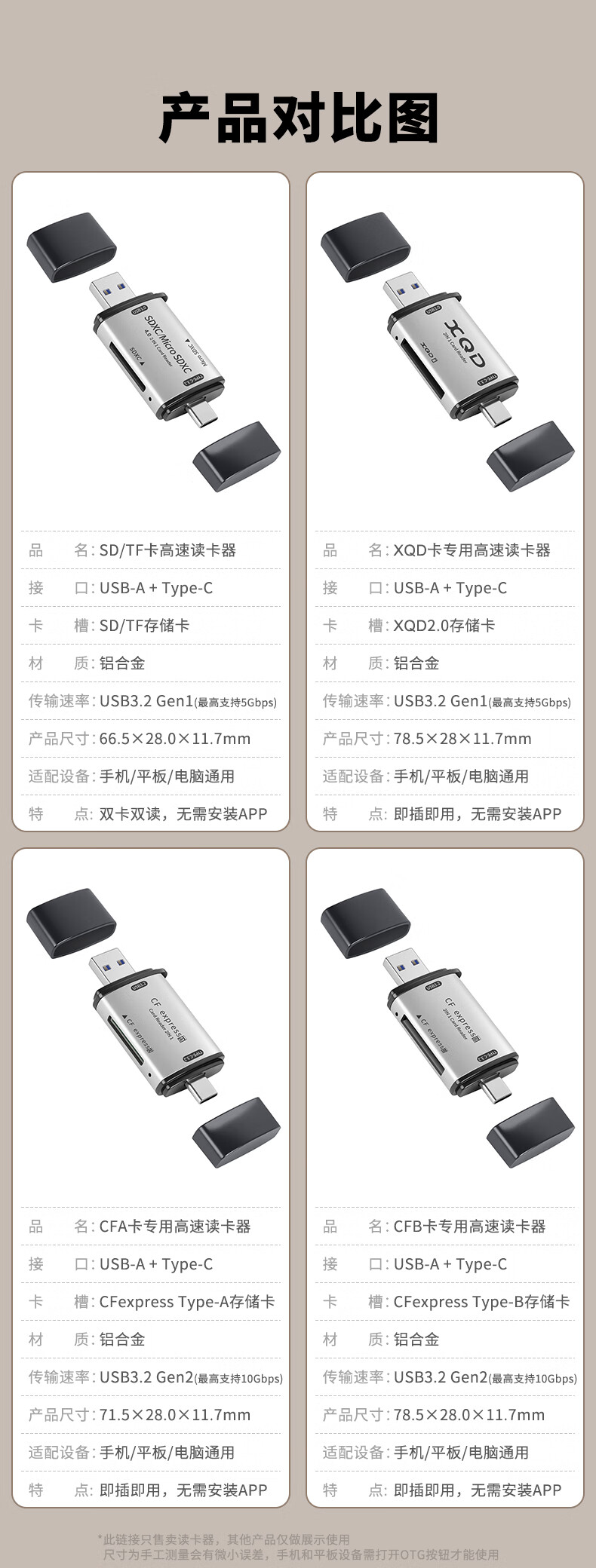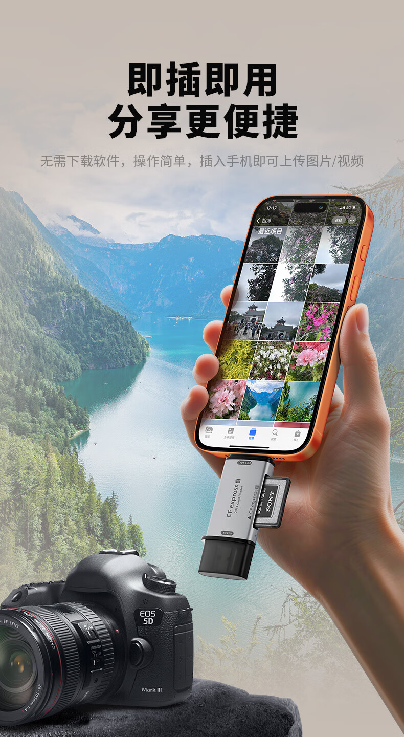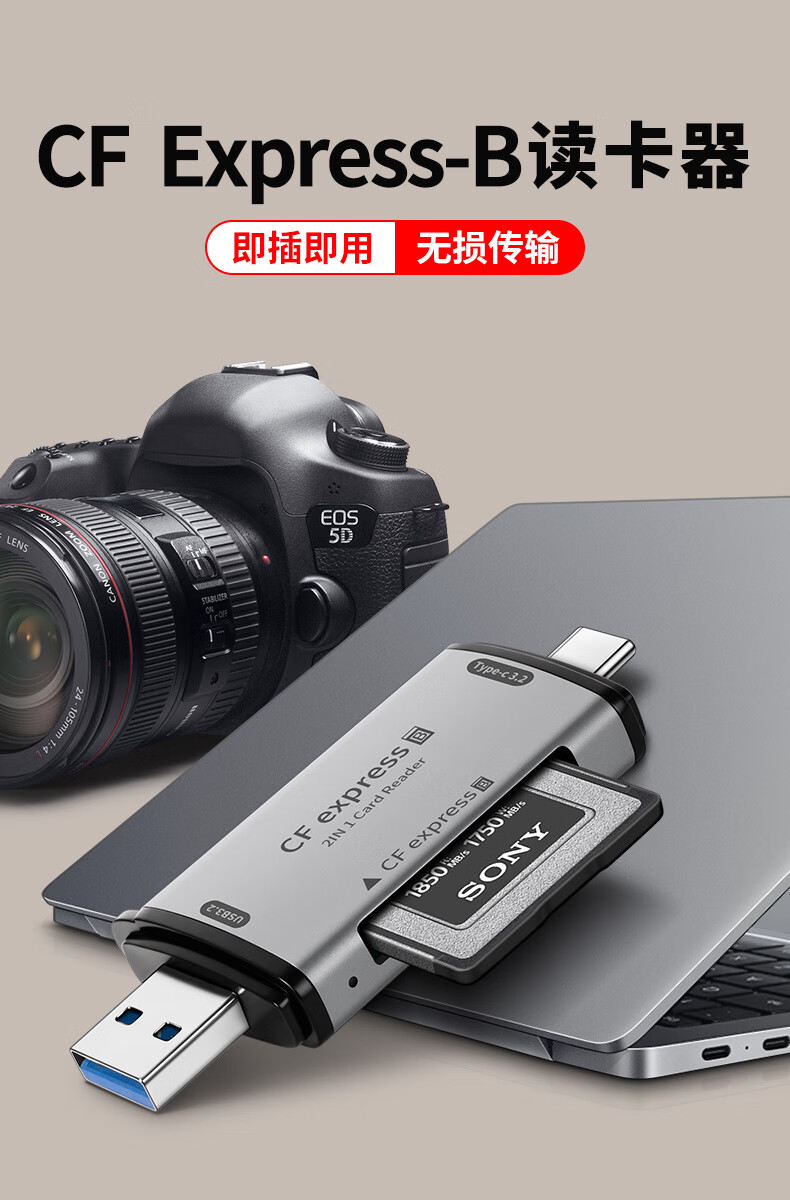 OLYSON mobile phone computer universal CFexpresssB card high-speed card reader Type-c dual interface USB3.2 suitable for iPhone Fuji Panasonic camera whale CFB memory card CFB card USB+Type-c high-speed card reader