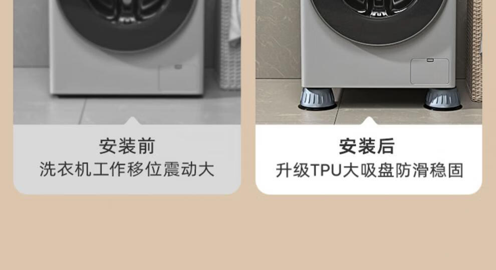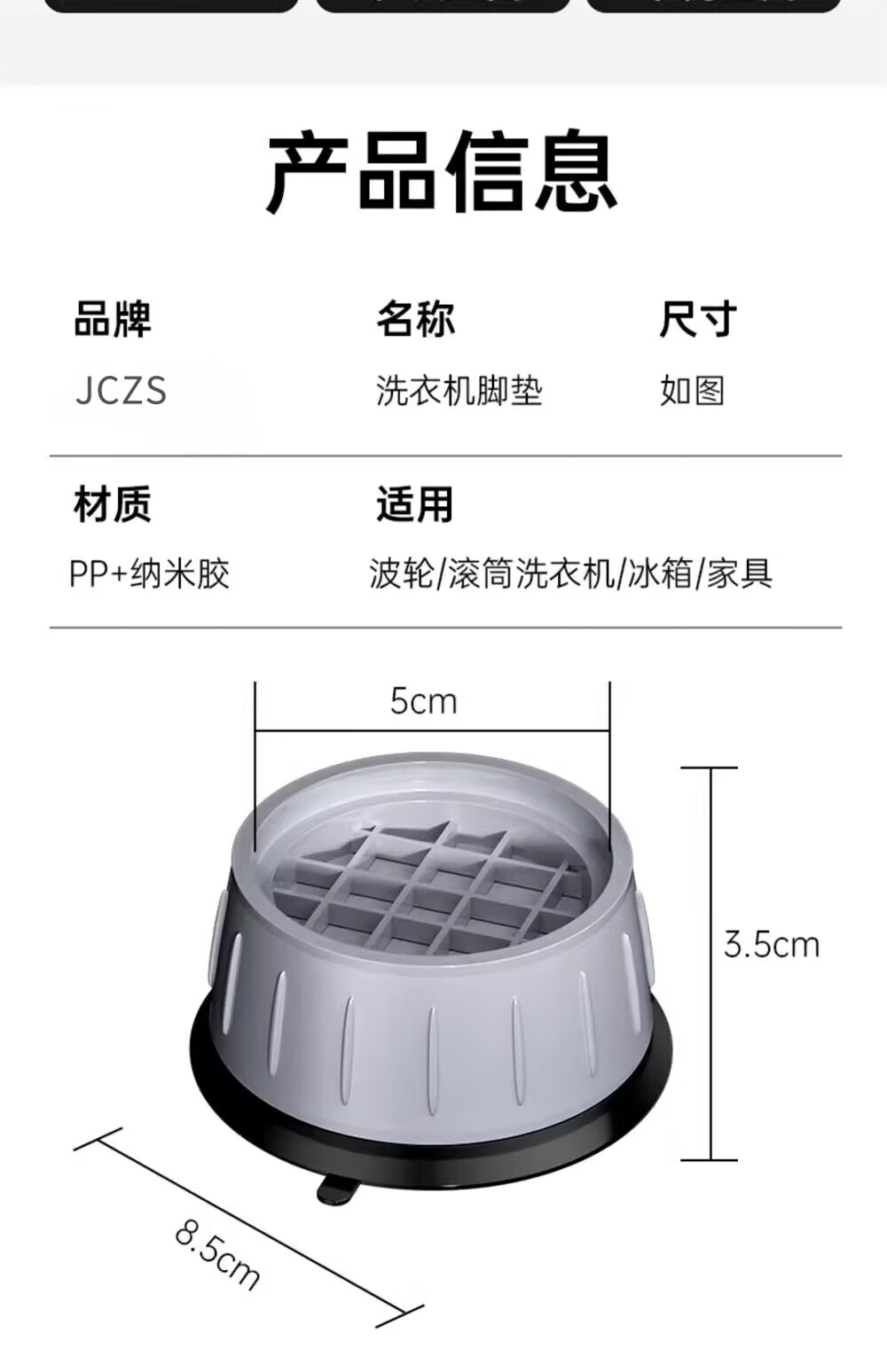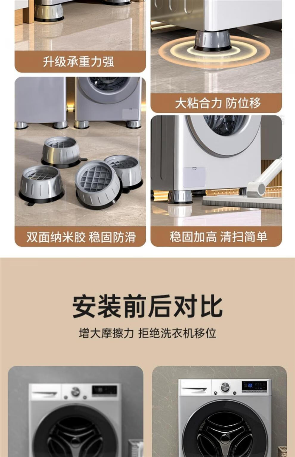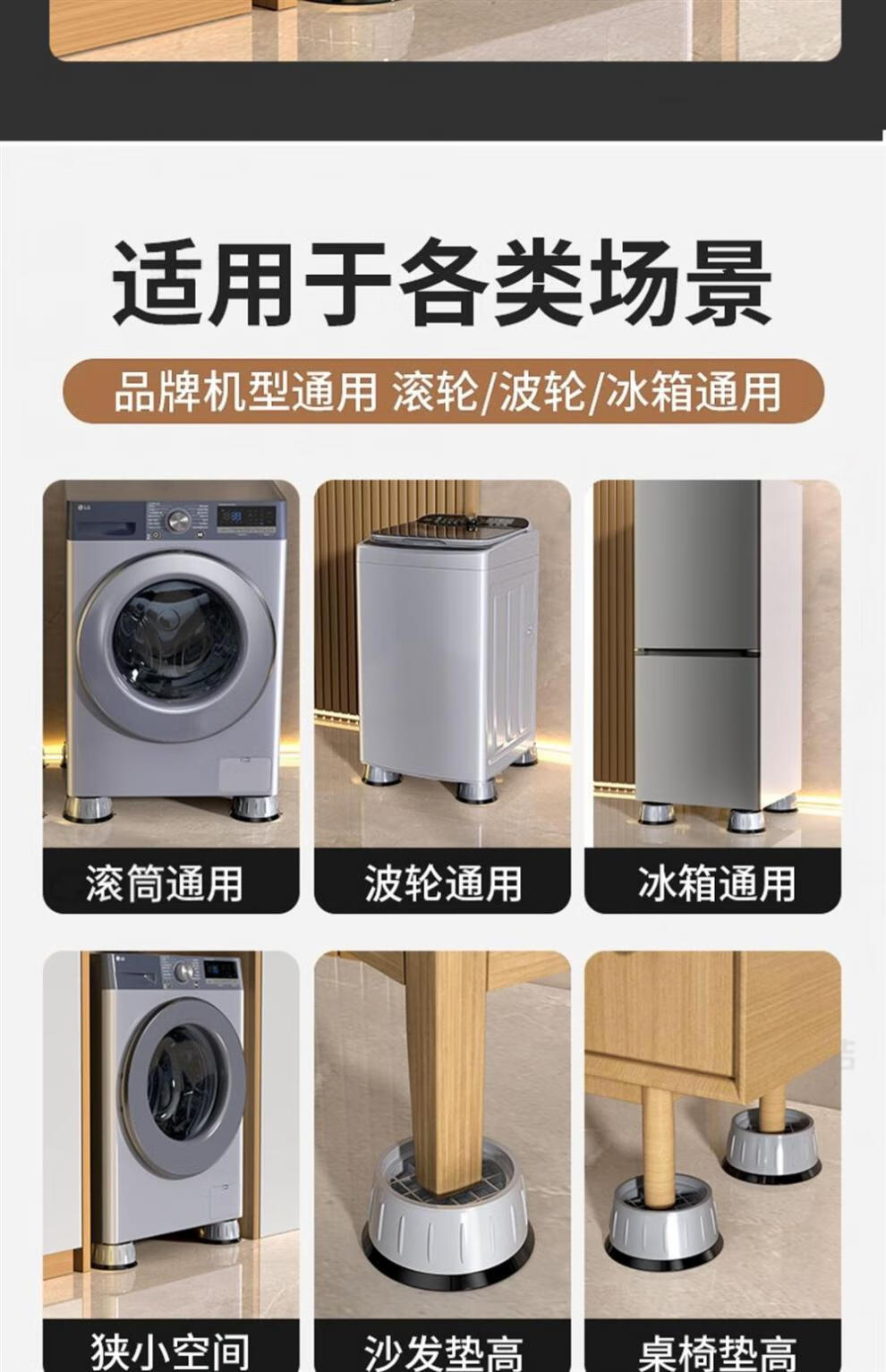 JCZS washing machine base universal fixed tripod bracket anti-slip anti-shock foot pads fully automatic drum heightening bracket increase stable and silent classic universal 8 pack large suction cup anti-slip washing machine