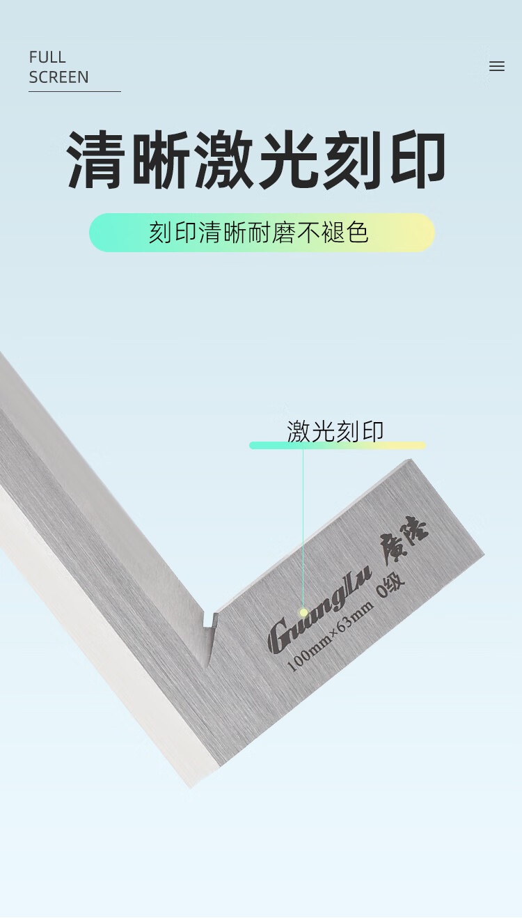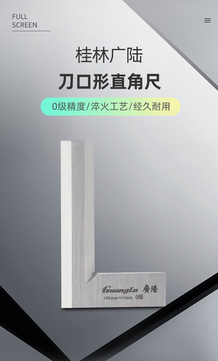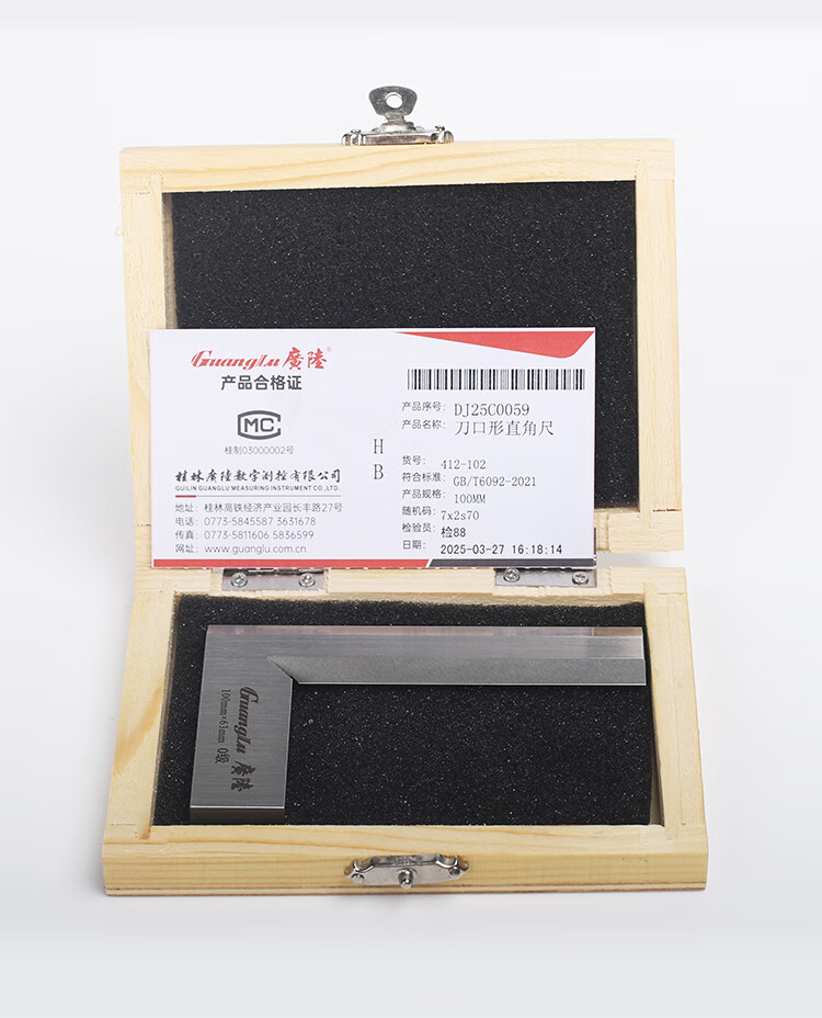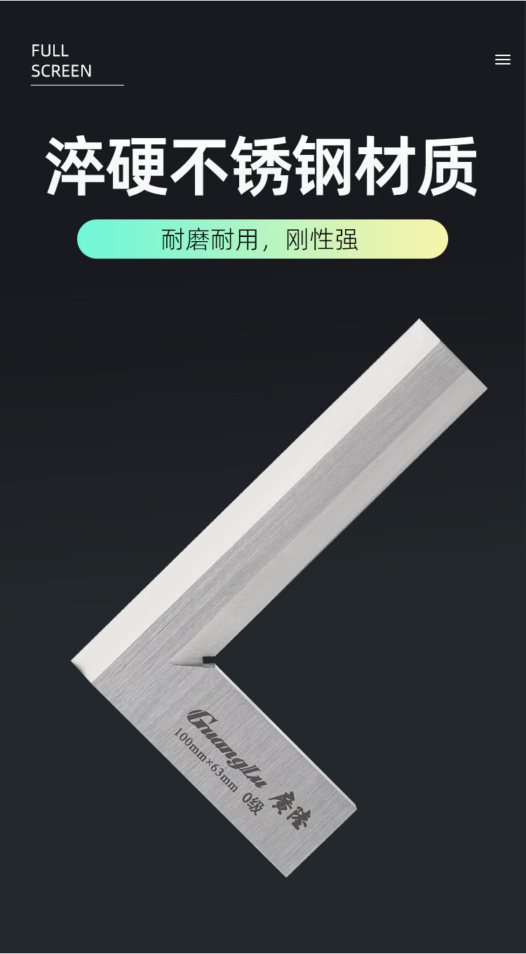 Yue Changsheng Guanglu Blade-shaped Right-Angle Ruler Flat Blade 90 Right-angle Design Stainless Steel Level 0 Precision Wear-Resistant and Durable Guanglu Blade-shaped Right-Angle Ruler 50*32