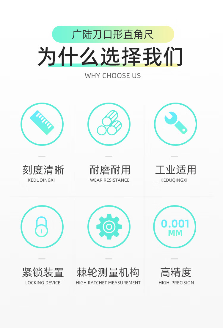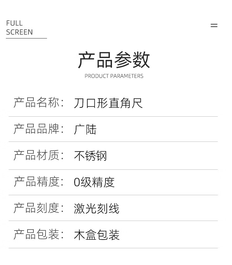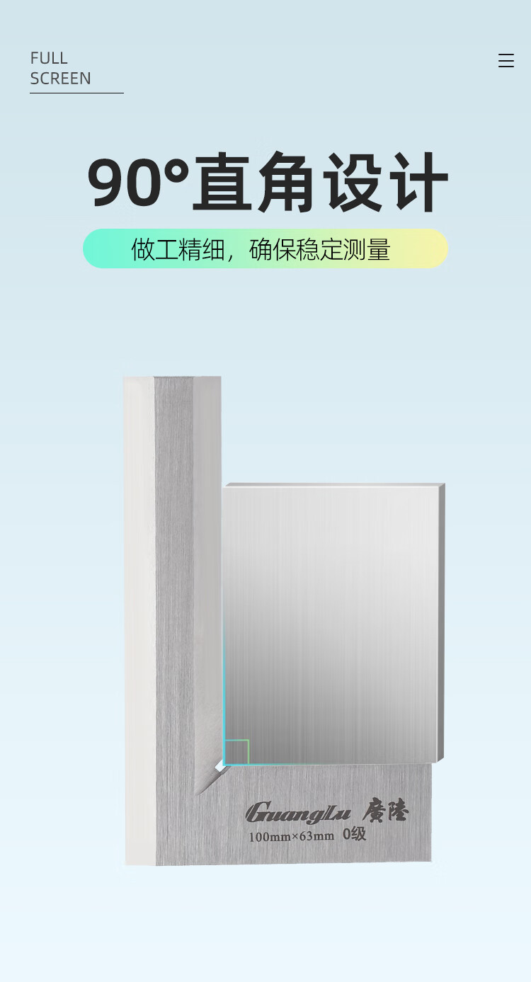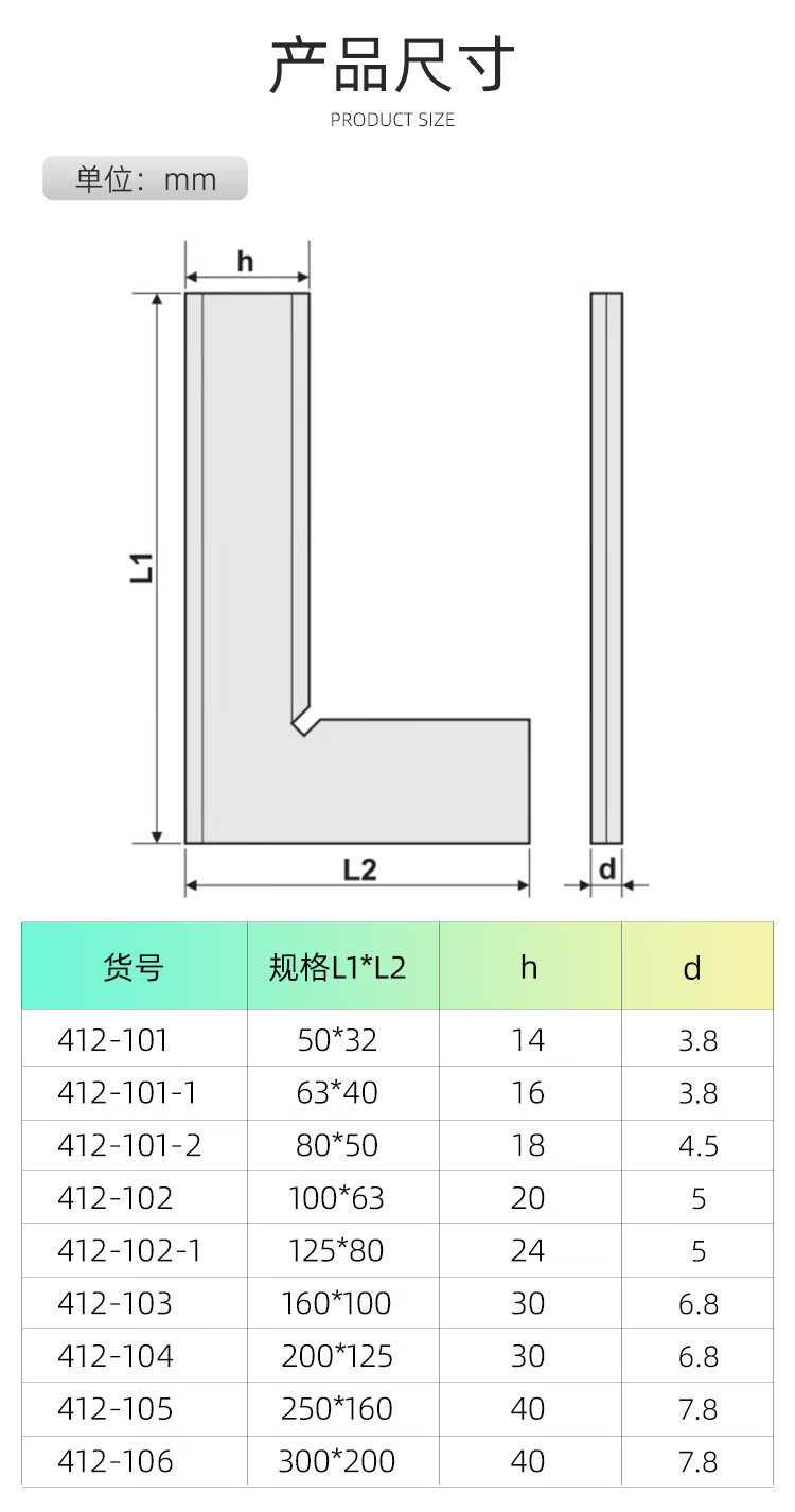 Yue Changsheng Guanglu Blade-shaped Right-Angle Ruler Flat Blade 90 Right-angle Design Stainless Steel Level 0 Precision Wear-Resistant and Durable Guanglu Blade-shaped Right-Angle Ruler 50*32