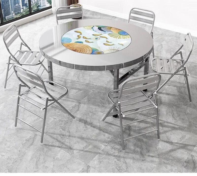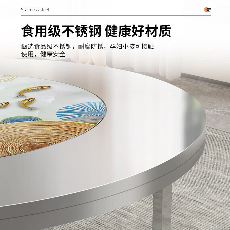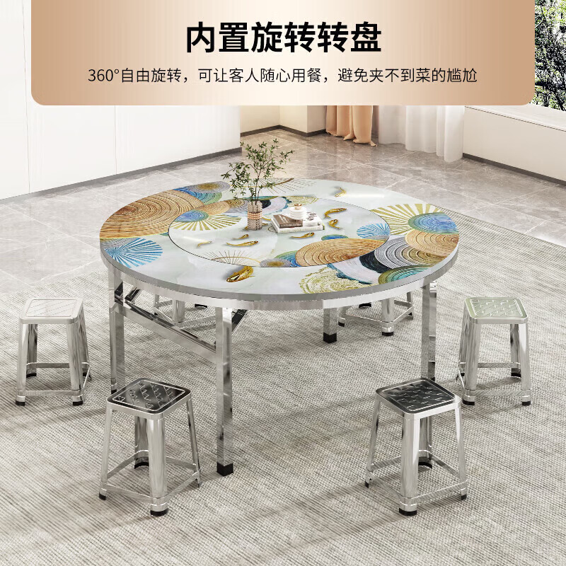 304 stainless steel round dining table folding table round built-in turntable dining table hotel home thickened large round table thickened 304 built-in full color pictures birds singing and flowers fragrant 1.46 meters built-in 1 meter turntable