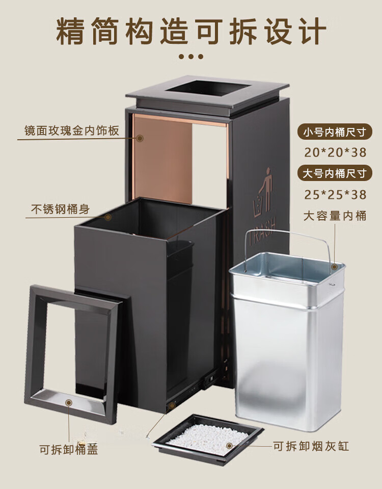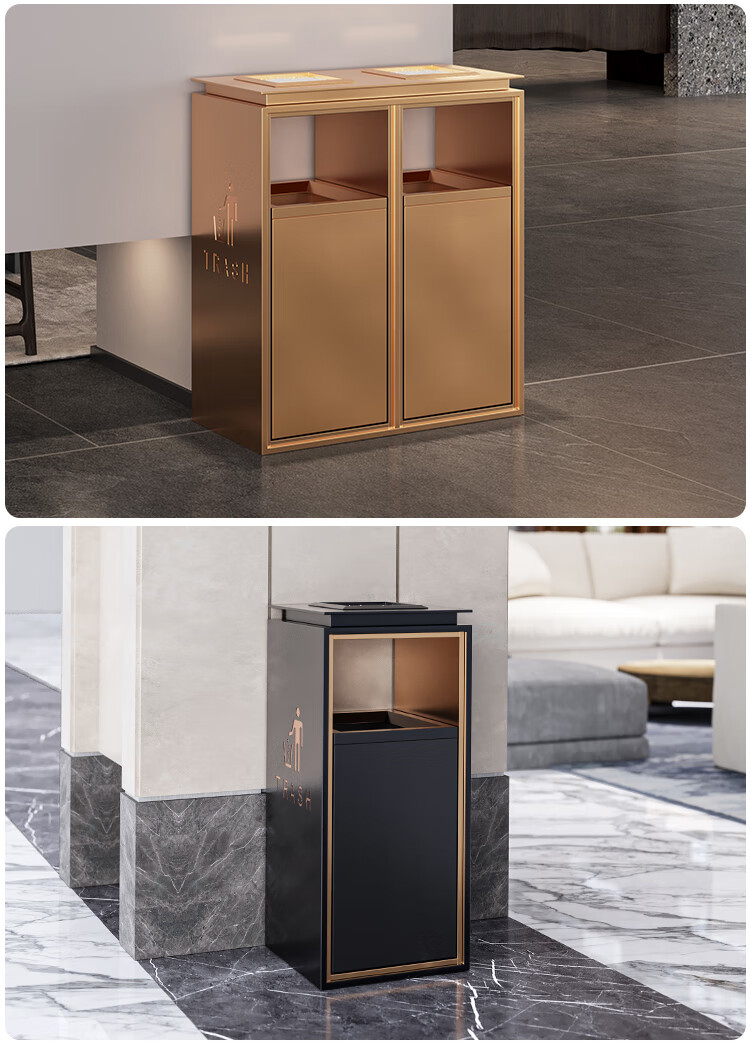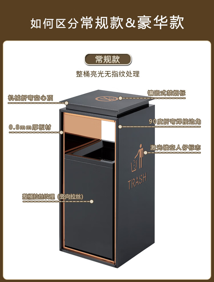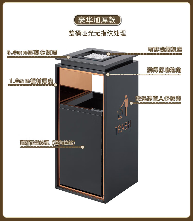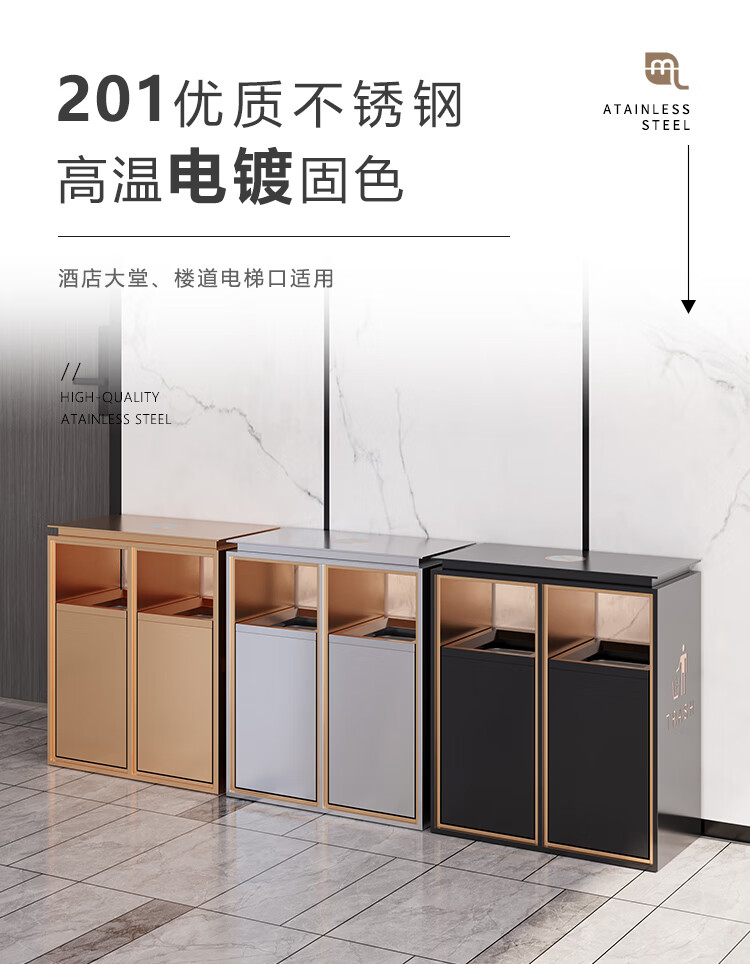 Hotel lobby vertical stainless steel shopping mall elevator entrance special property commercial fruit peel box with ashtray small single barrel no smoking sign sand steel color no fingerprints