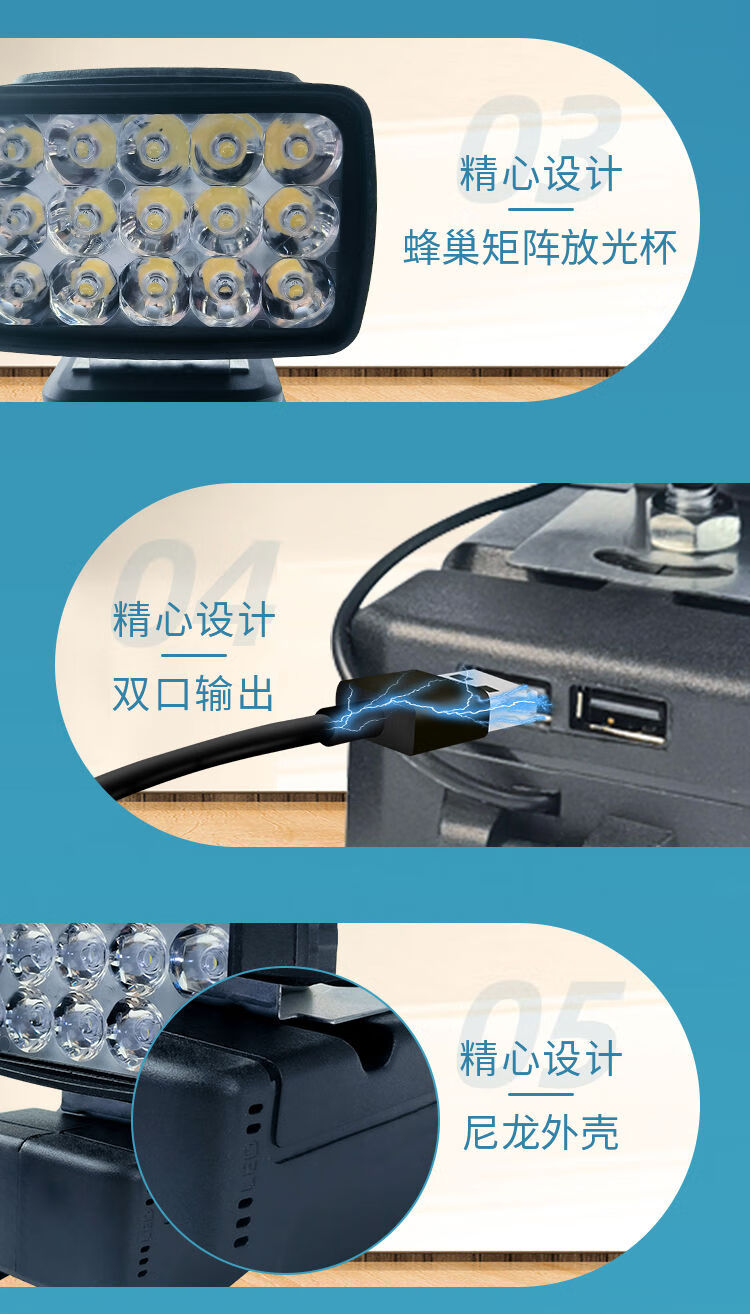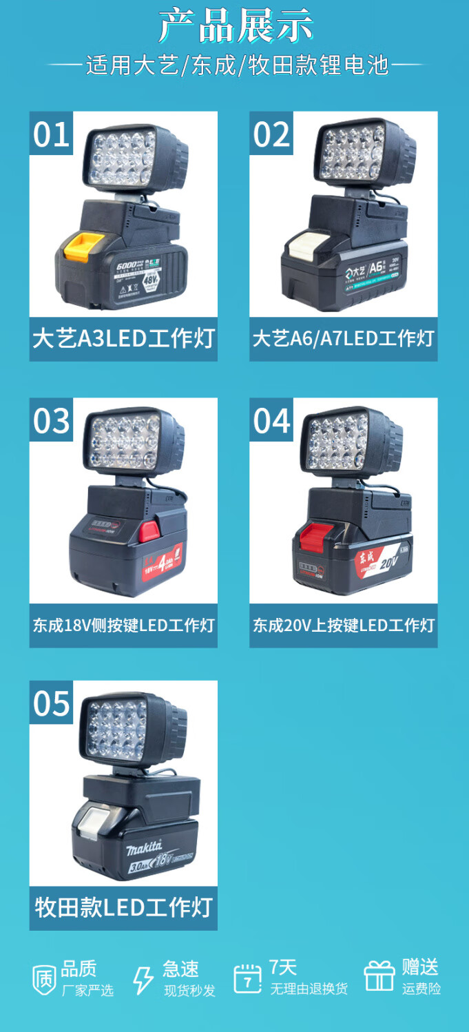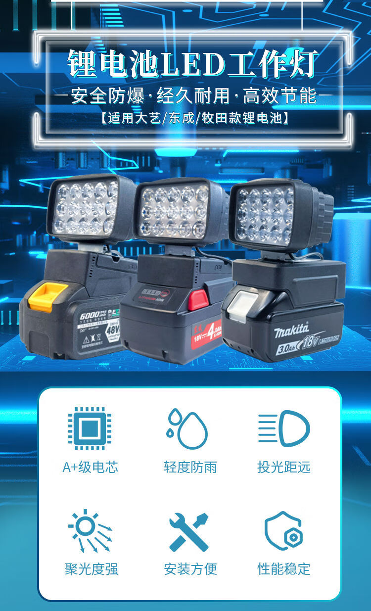 Dongcheng battery work light power tool lithium battery lighting emergency light spotlight mobile phone charging converter Dongcheng button battery LED light 1 with USB
