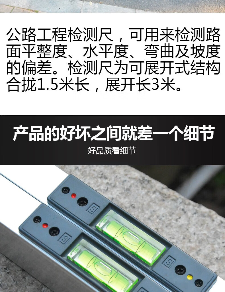 Yingtang highway ruler three-meter ruler aluminum alloy ruler folding horizontal ruler plug engineering highway flatness detection ruler 3 meters 3 meters