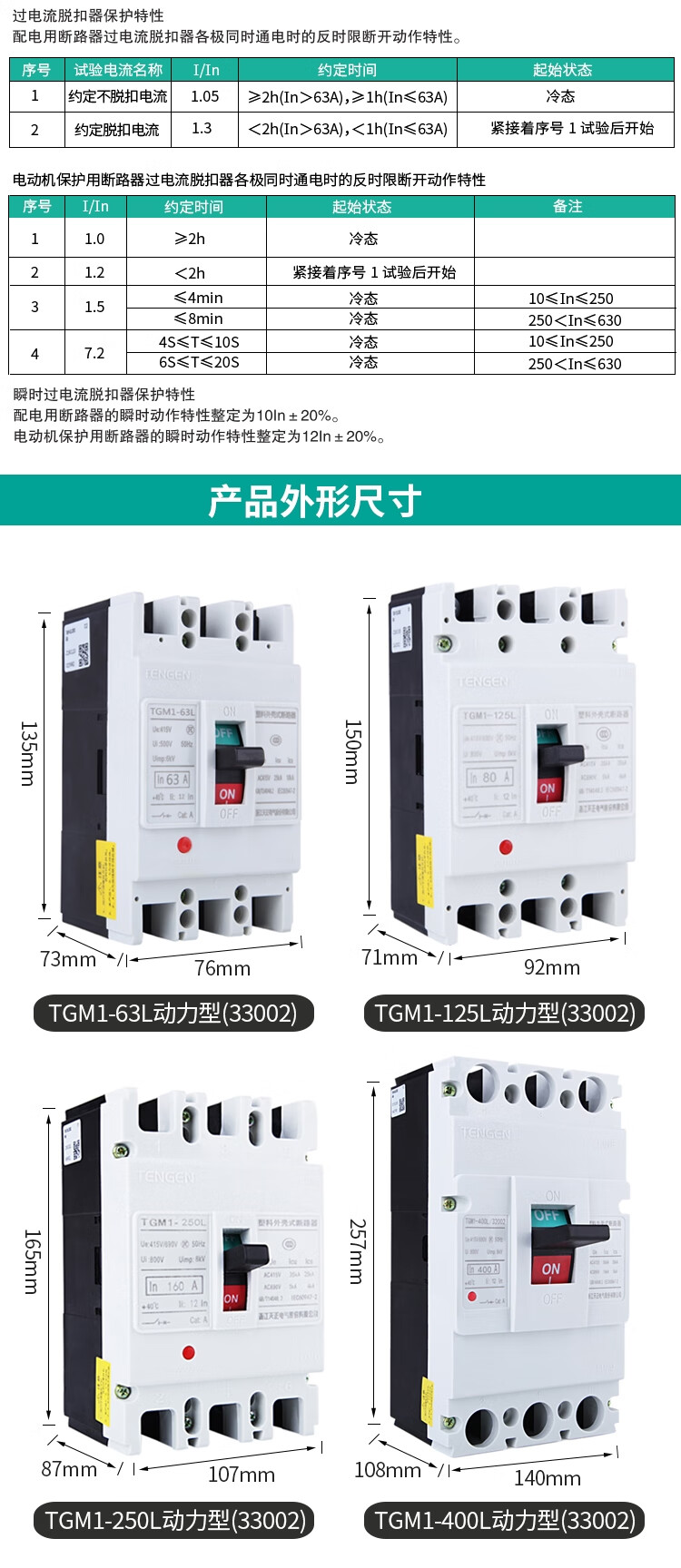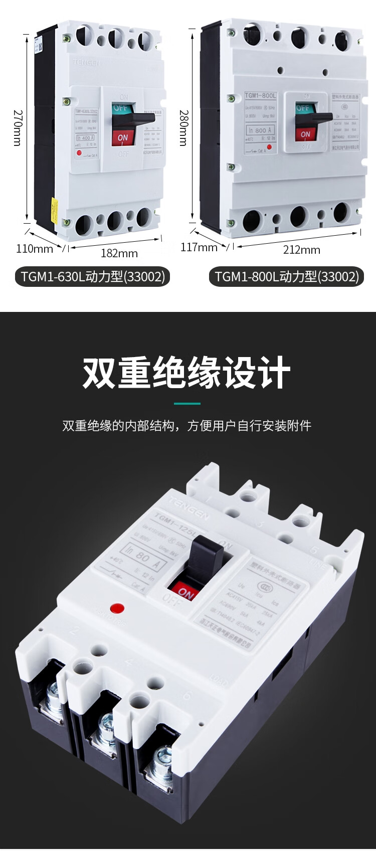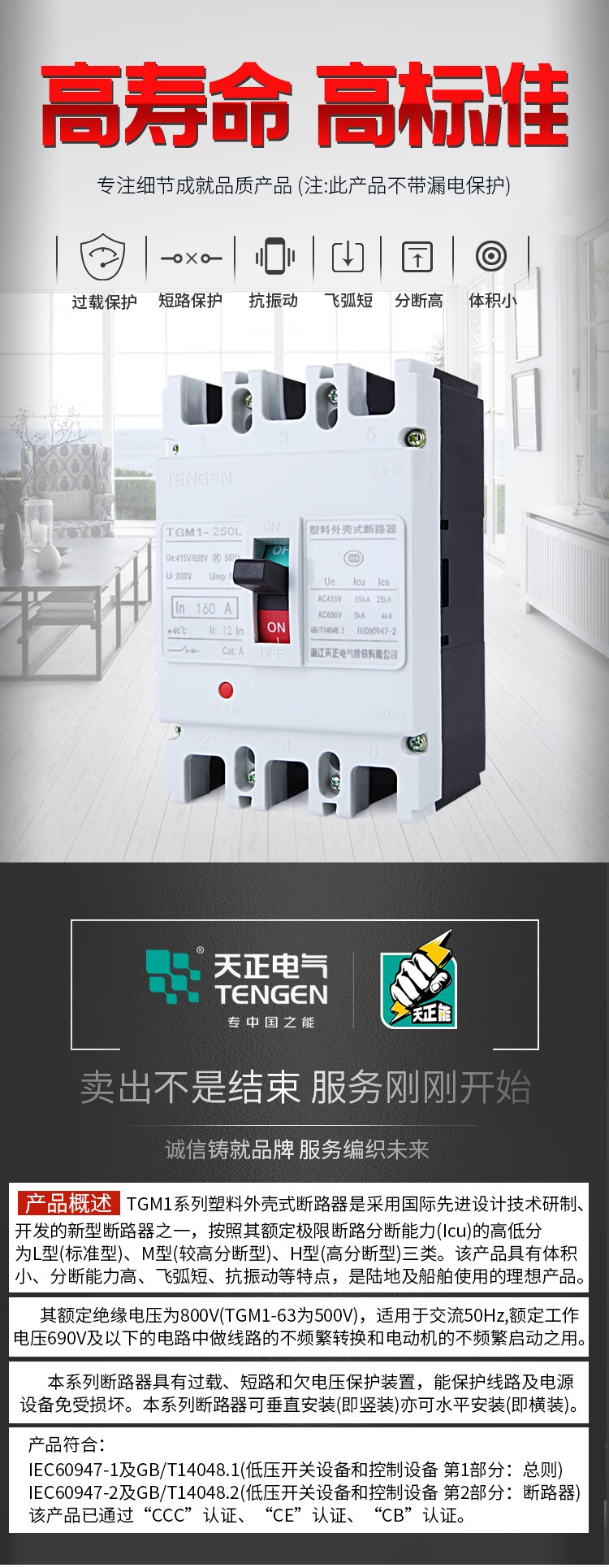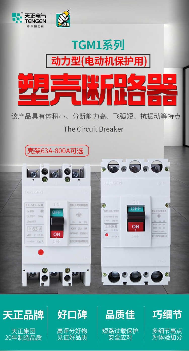 Yue Changsheng TENGEN Tianzheng TGM1 plastic case circuit breaker 33002 motor protection circuit breaker air switch power type 315A 3P