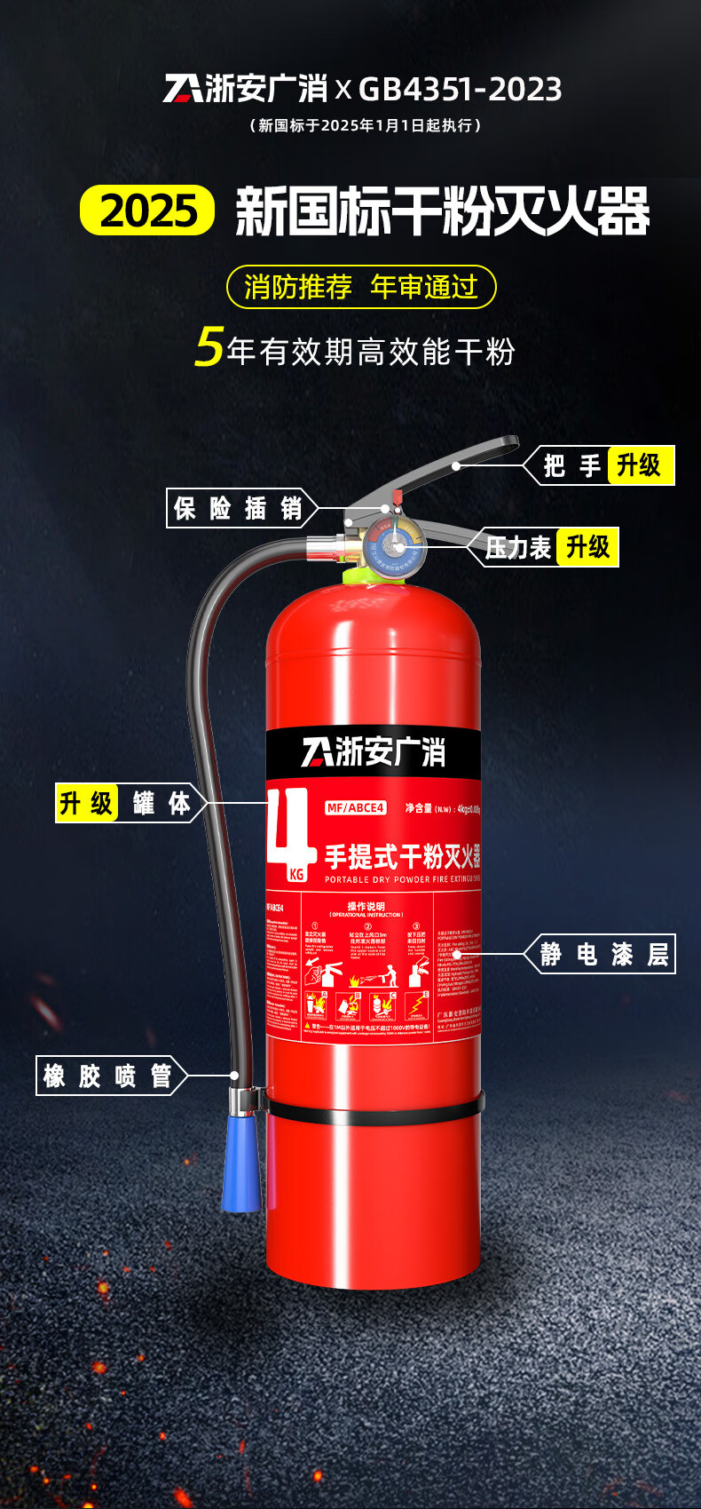 Zhe'an Guangxiao Portable Dry Powder Fire Extinguisher 4KG Vehicle Home Shop Gas Station 1kg 2kg 3kg 5kg 8kg 5kg Dry Powder Portable Fire Extinguisher