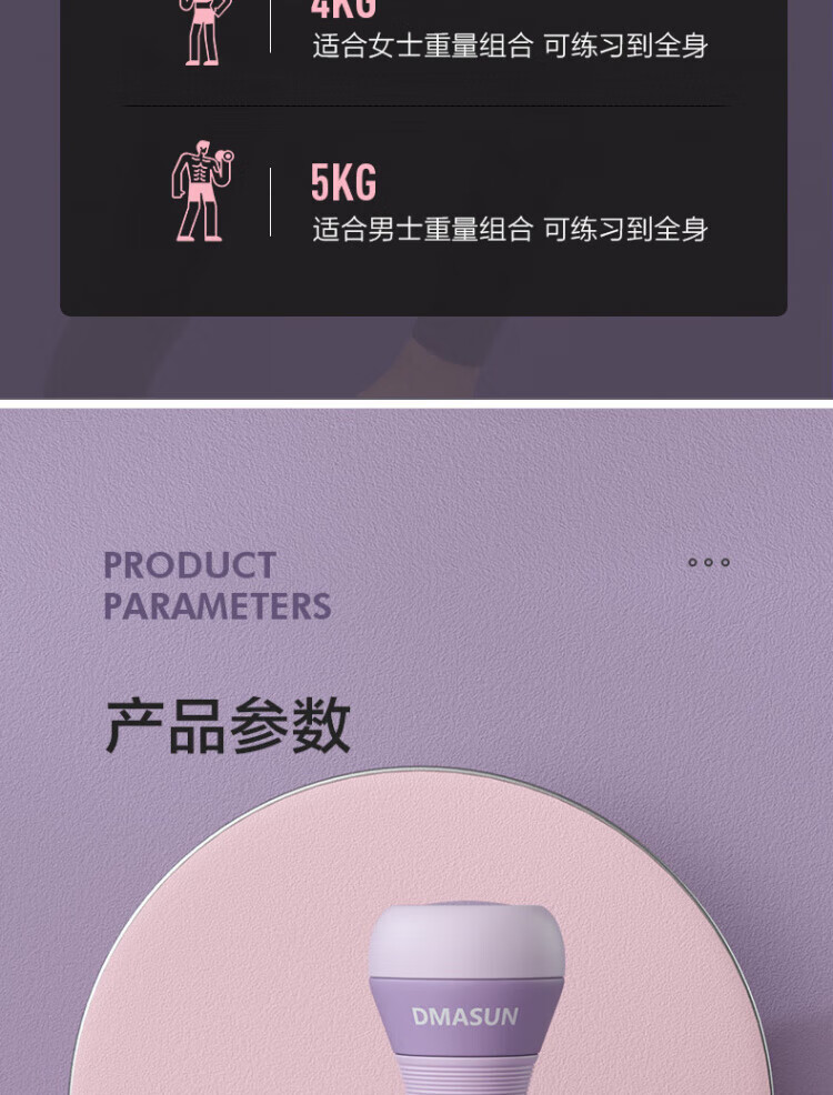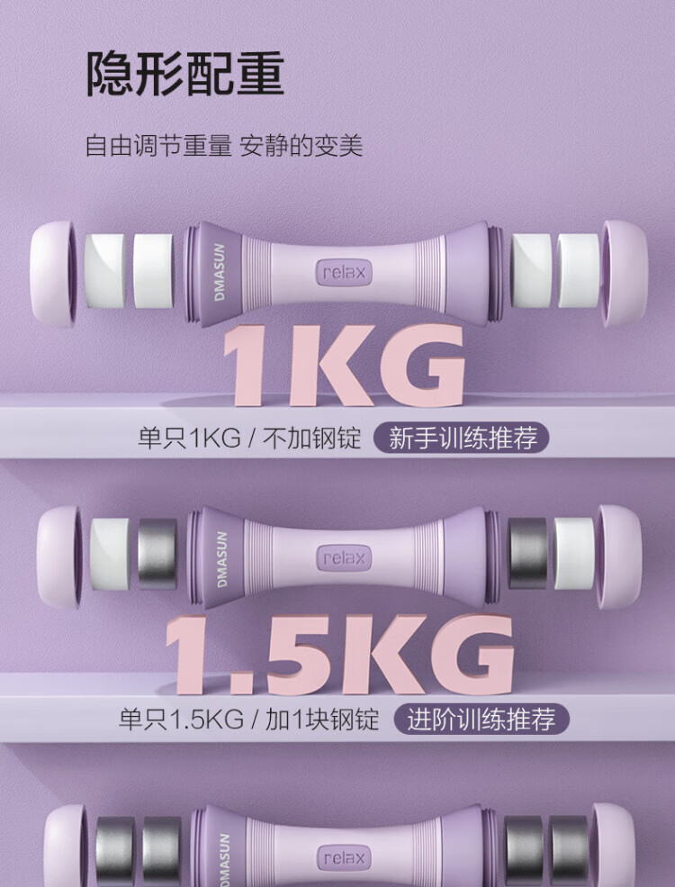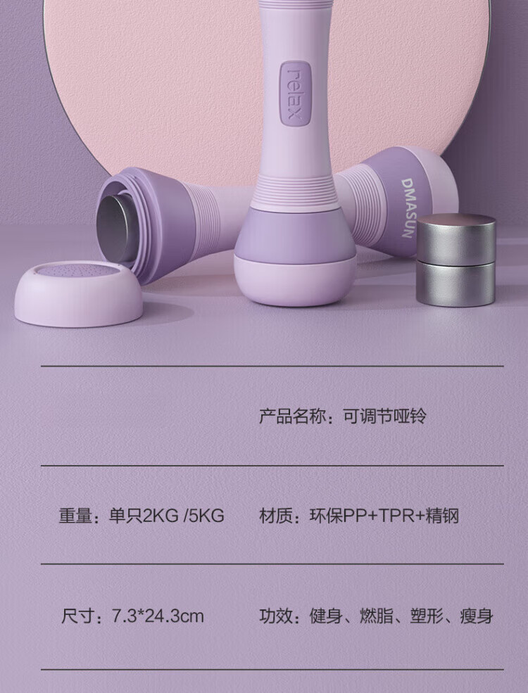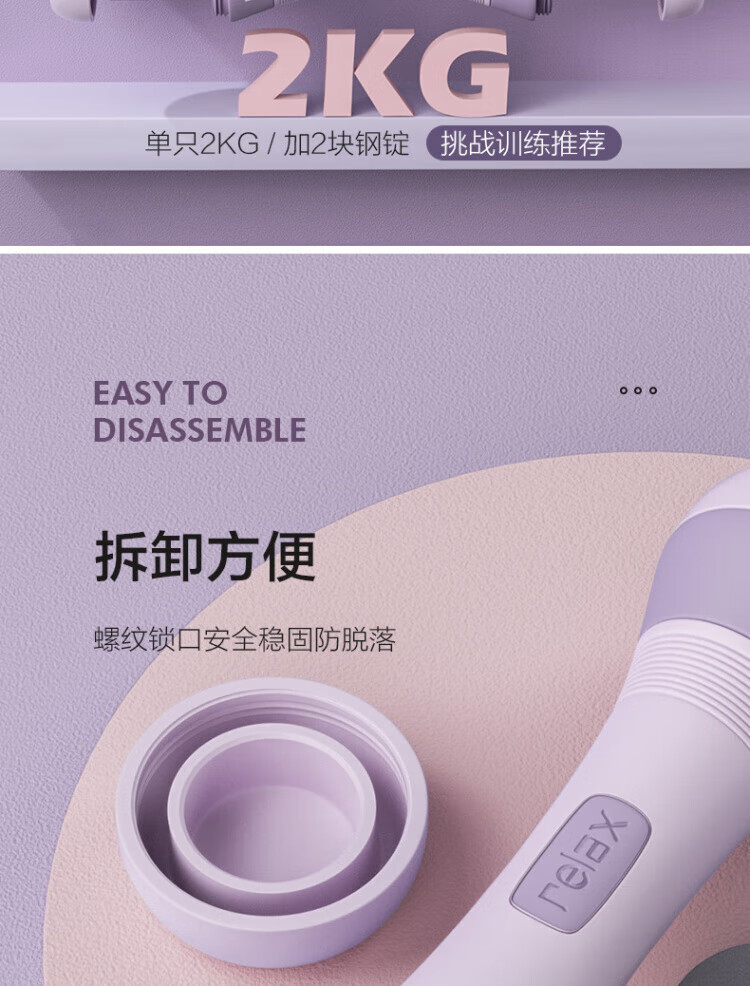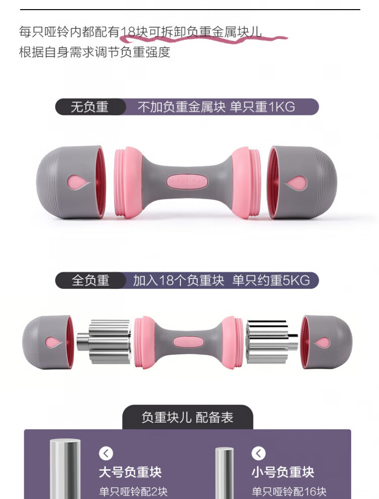JCZS German brand dumbbell women's fitness home adjustable weight small dumbbell sports equipment thin arm muscle equipment adjustable 1-4 kg - pink 2 pieces 4KG