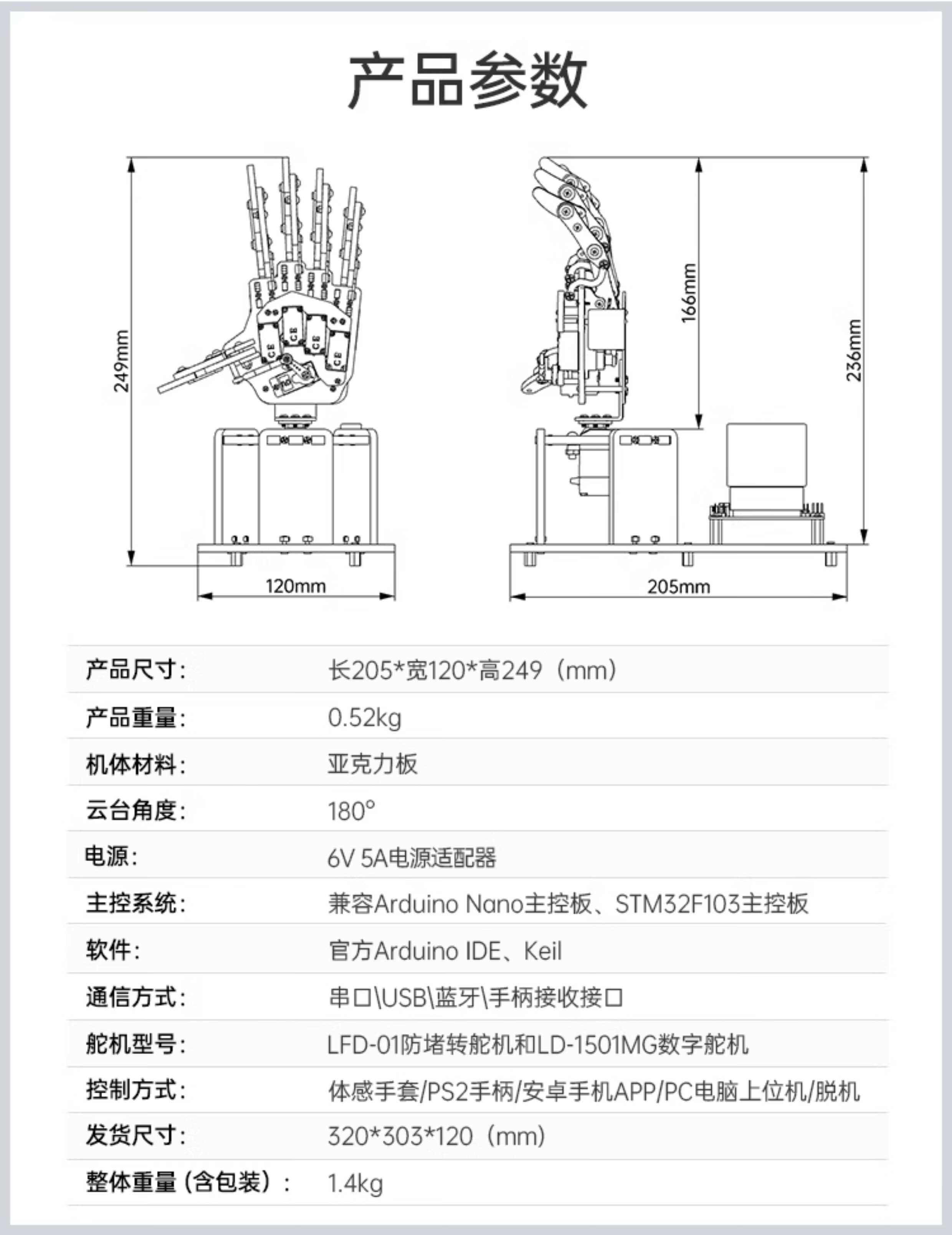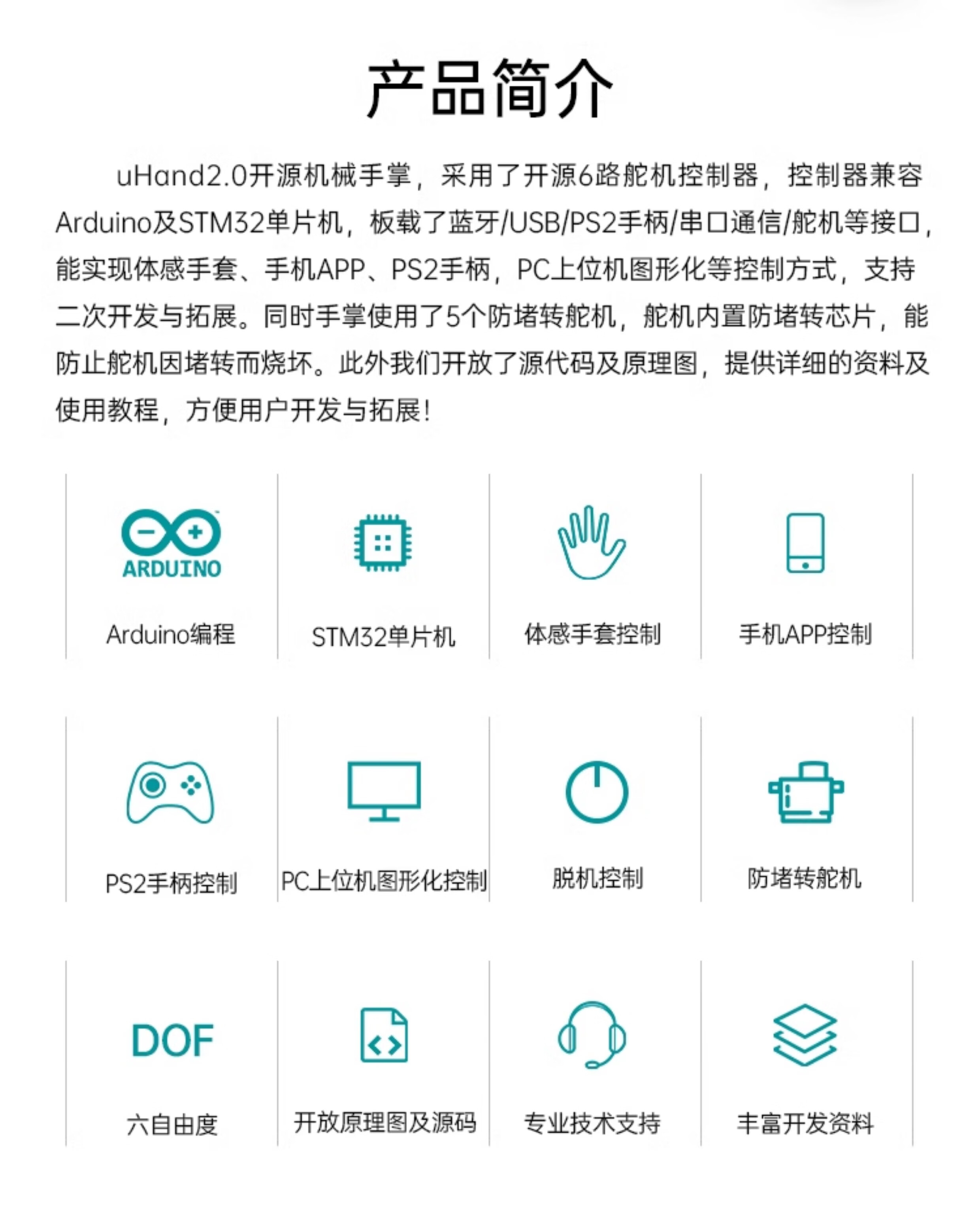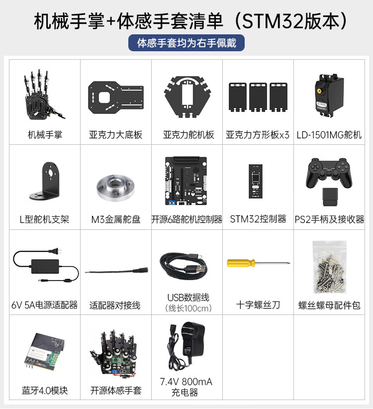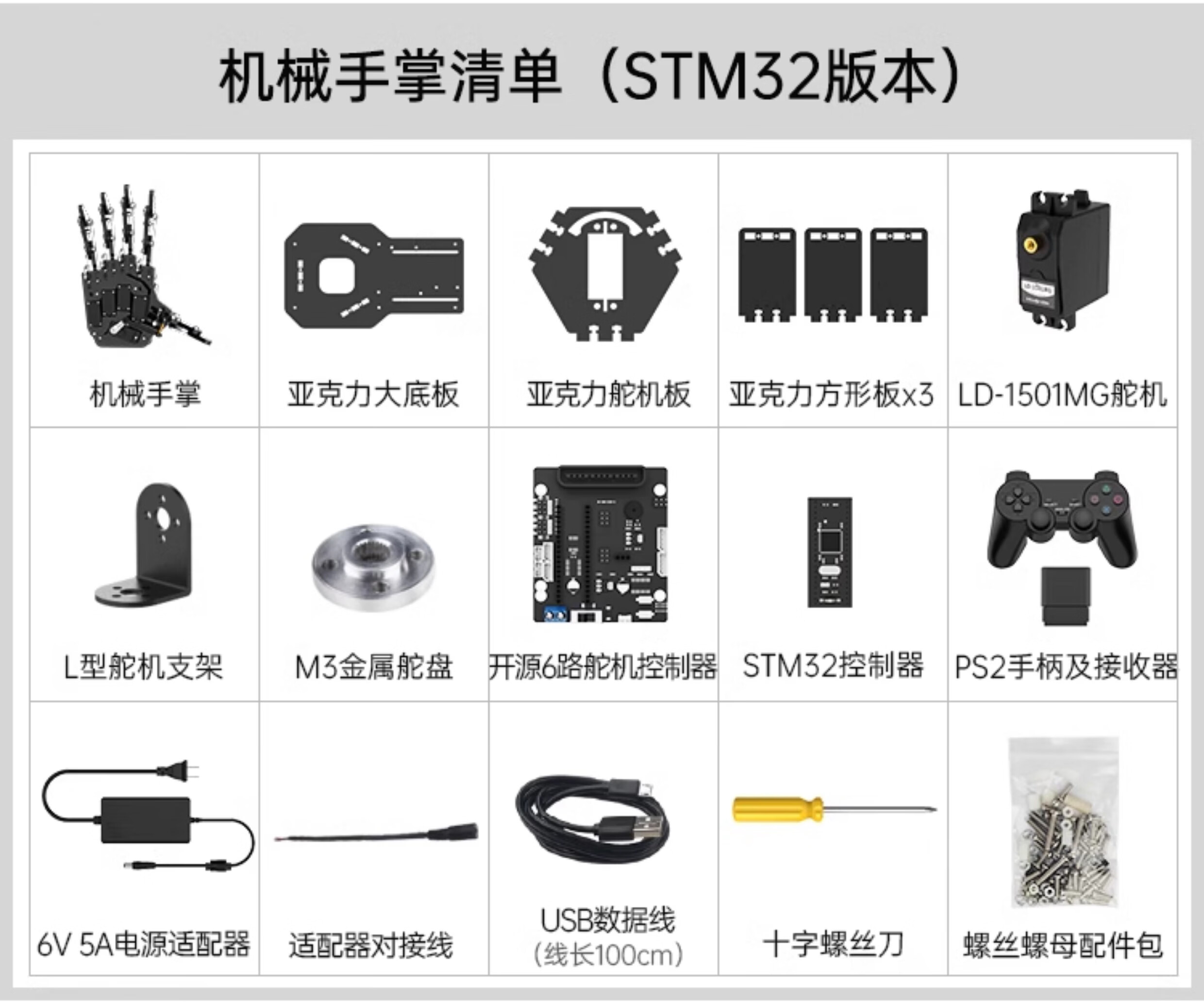 Yue Changsheng Huan'er programming robot open source bionic mechanical hand uHand2.0 somatosensory control STM32 maker education STM32 version (left hand)