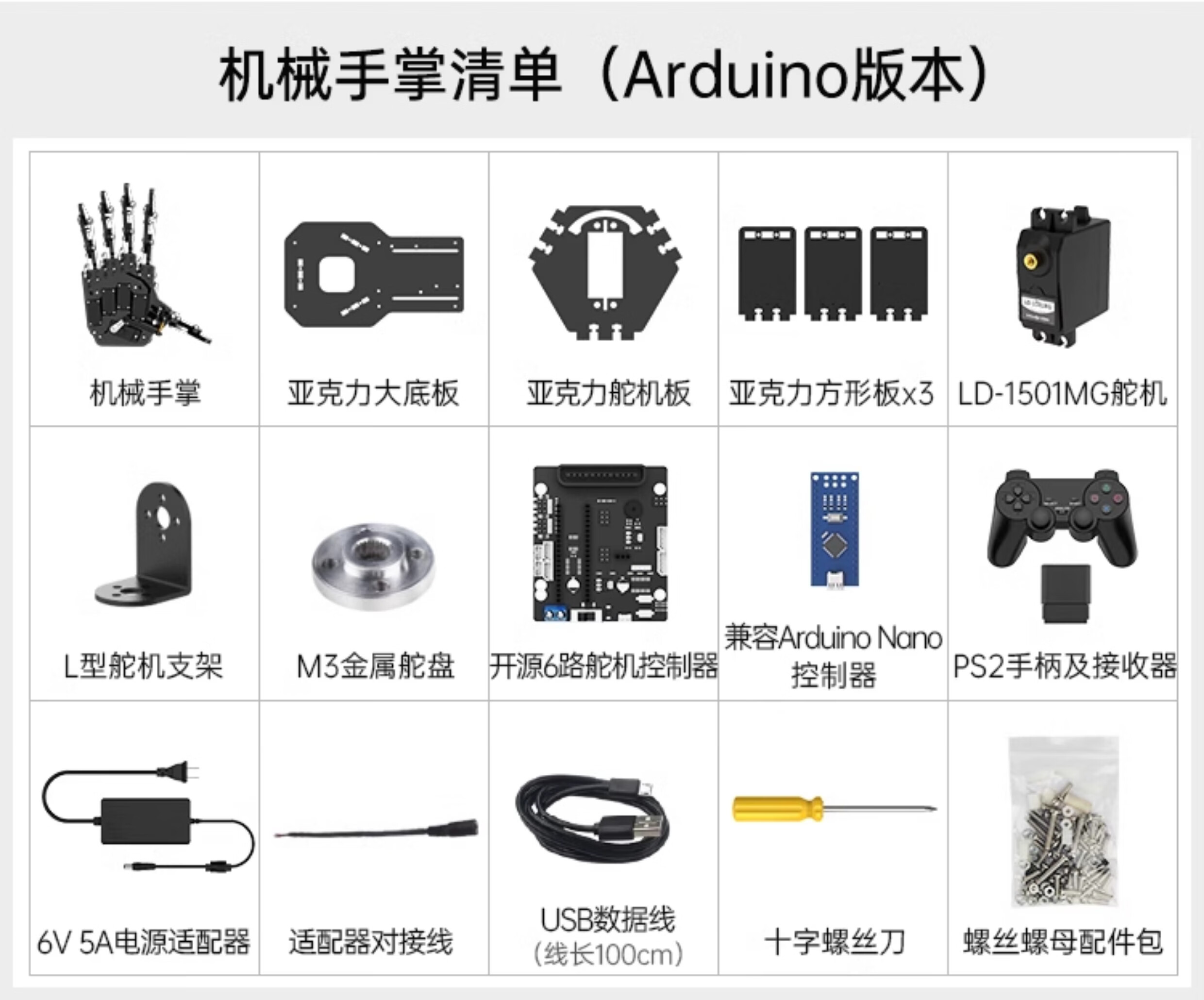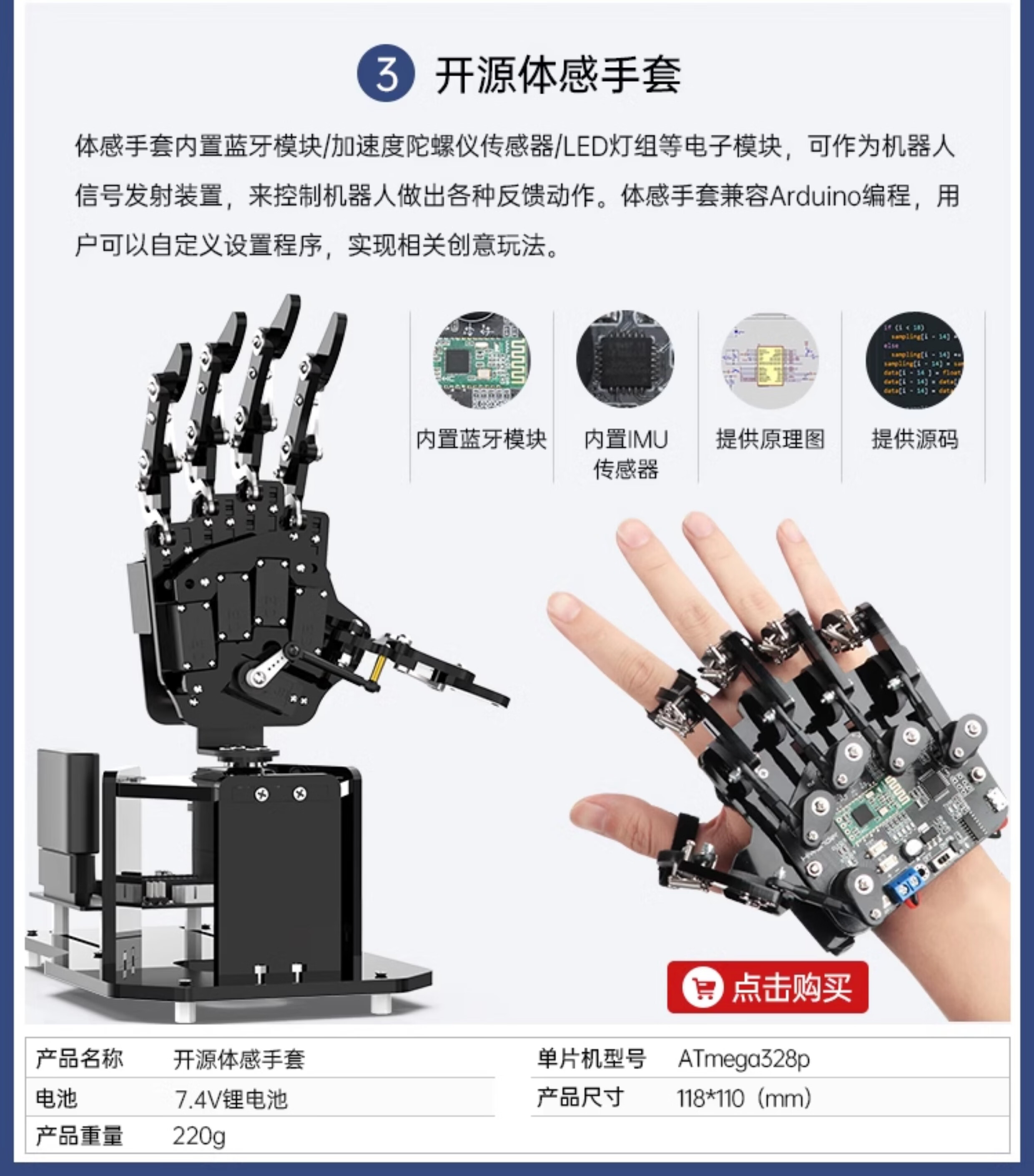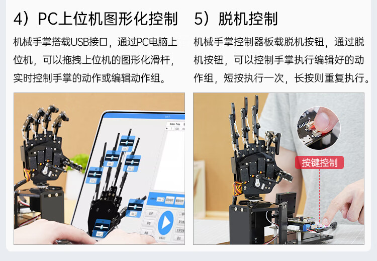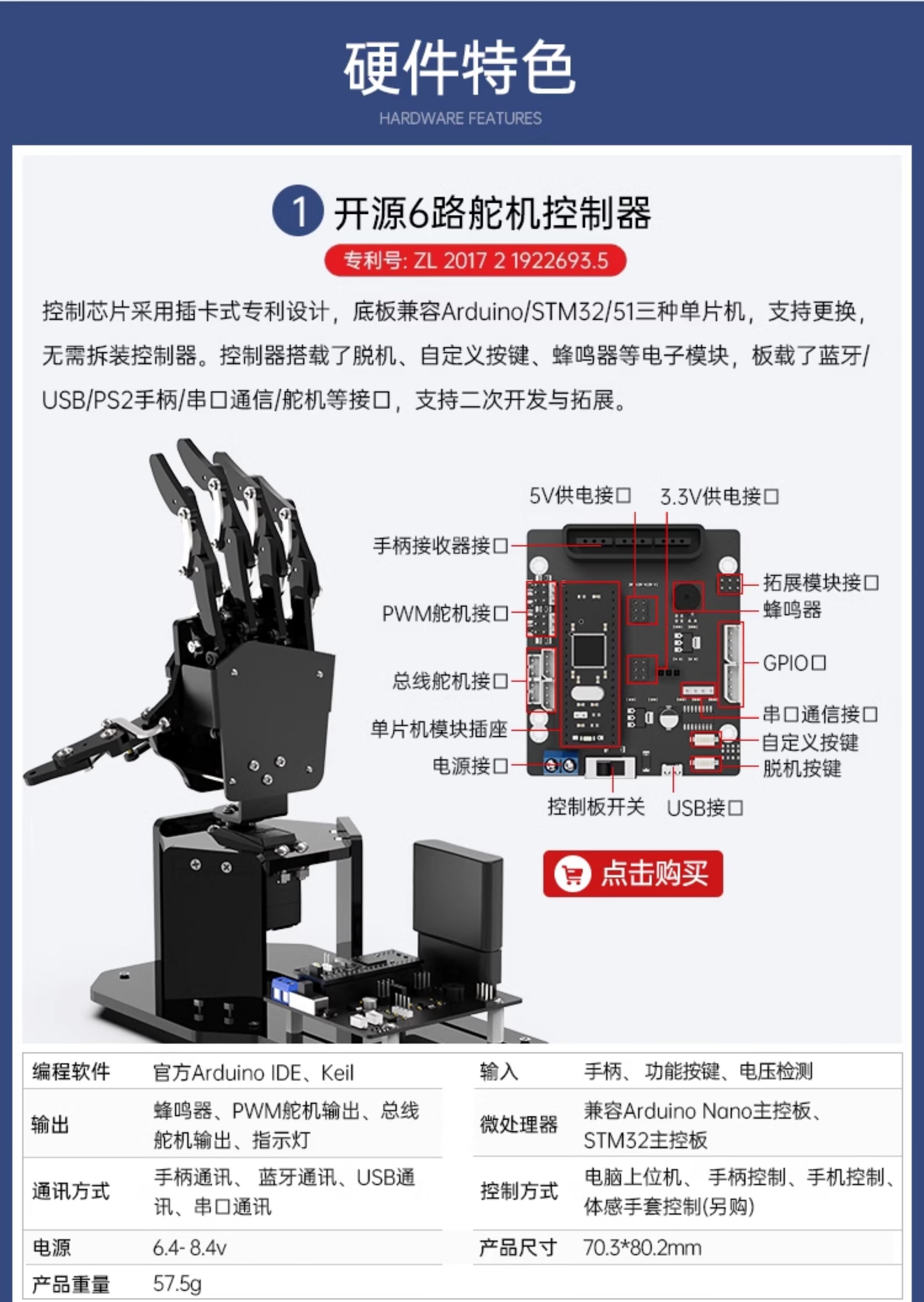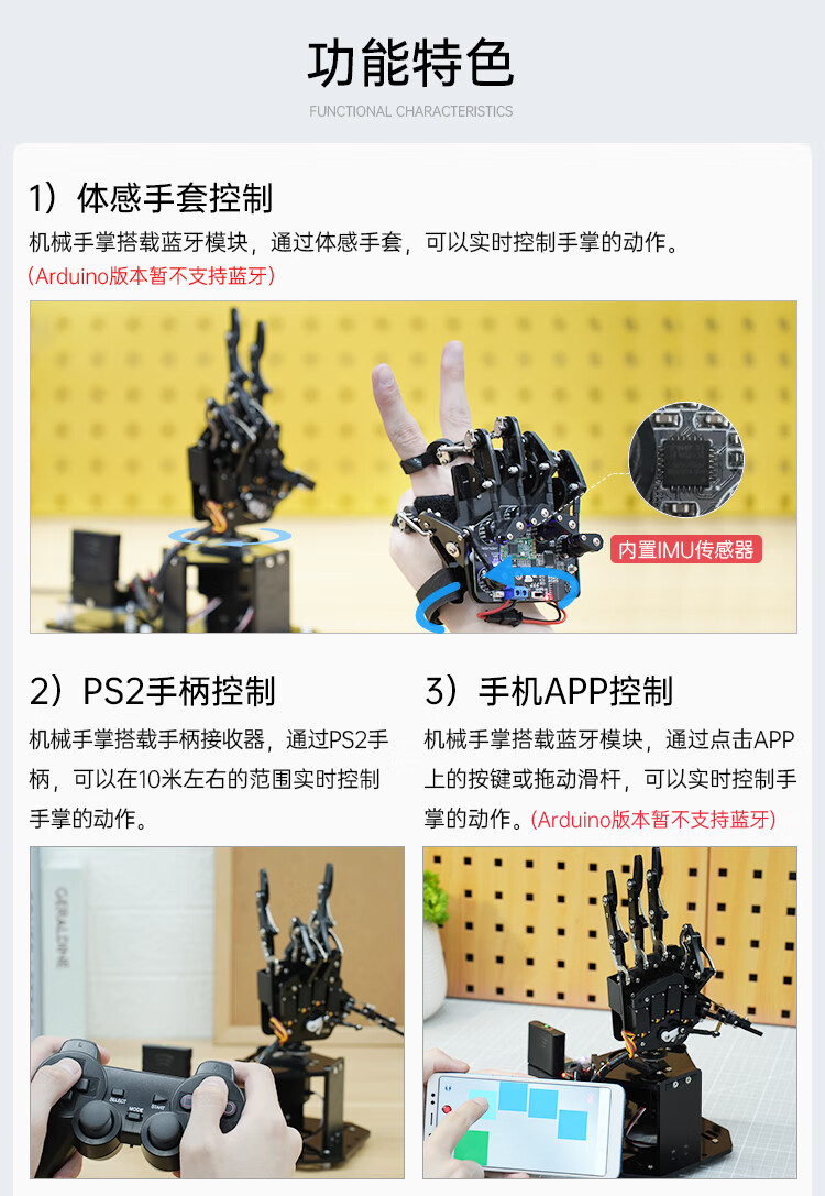 Yue Changsheng Huan'er programming robot open source bionic mechanical hand uHand2.0 somatosensory control STM32 maker education STM32 version (left hand)