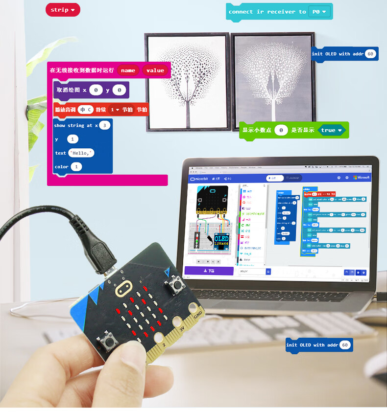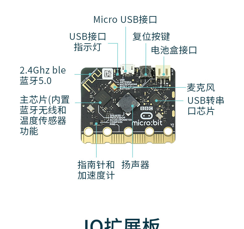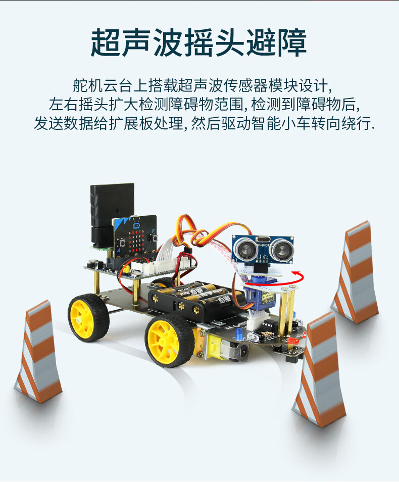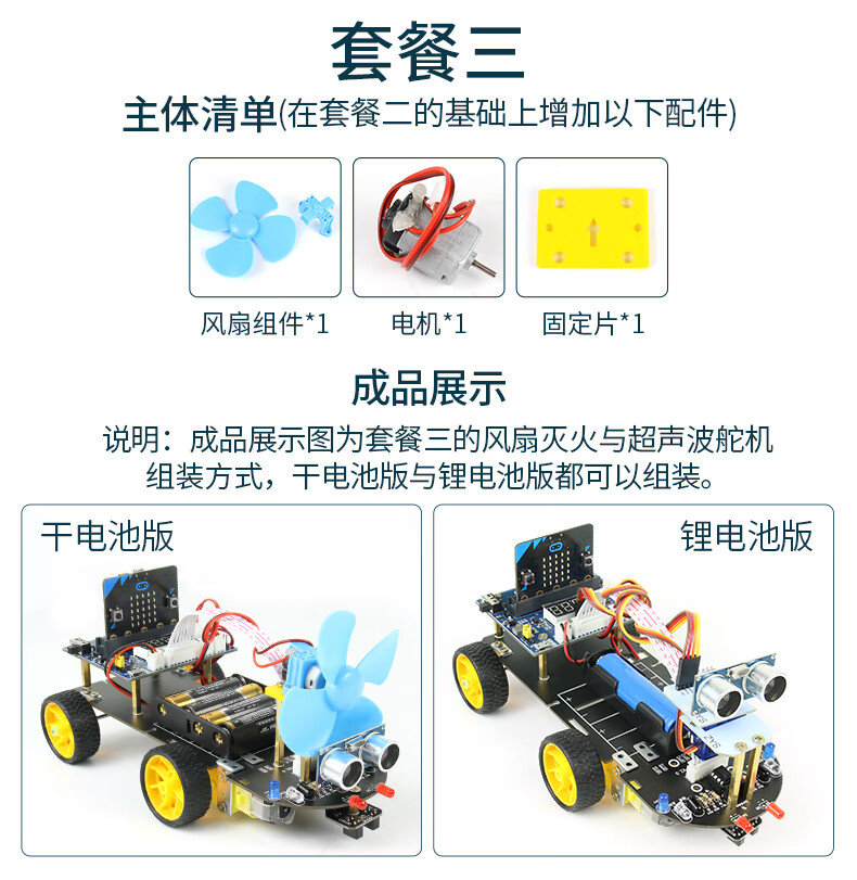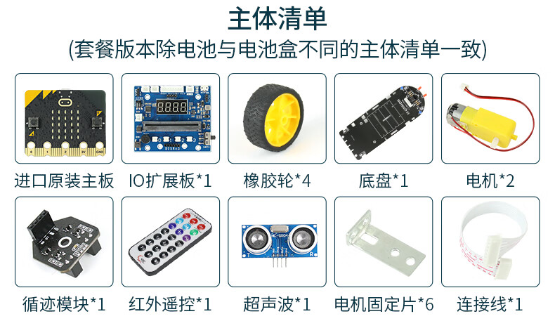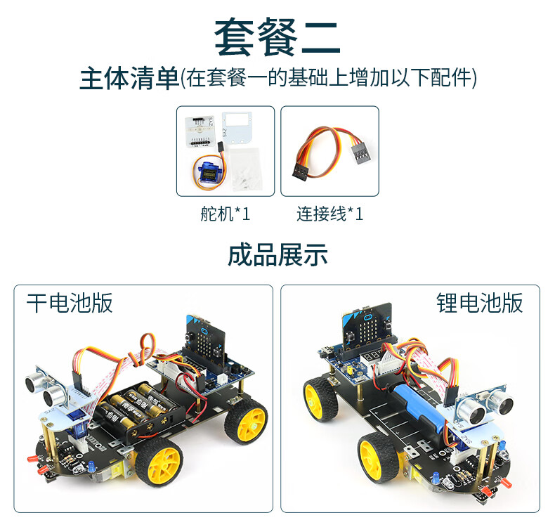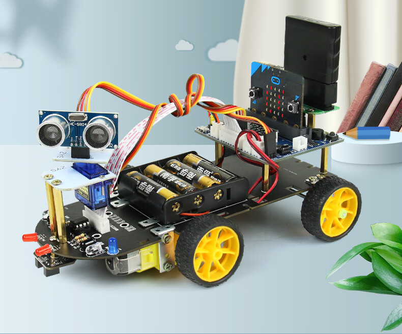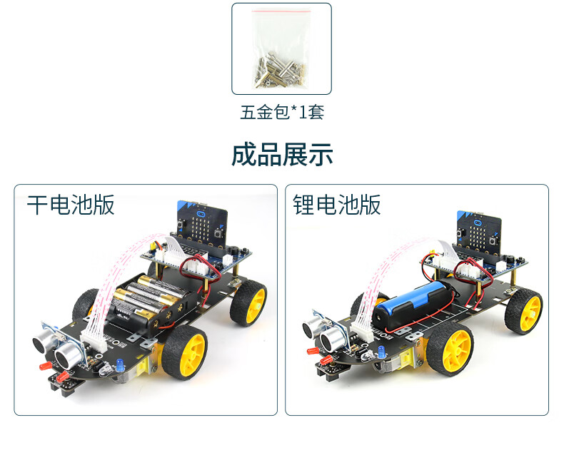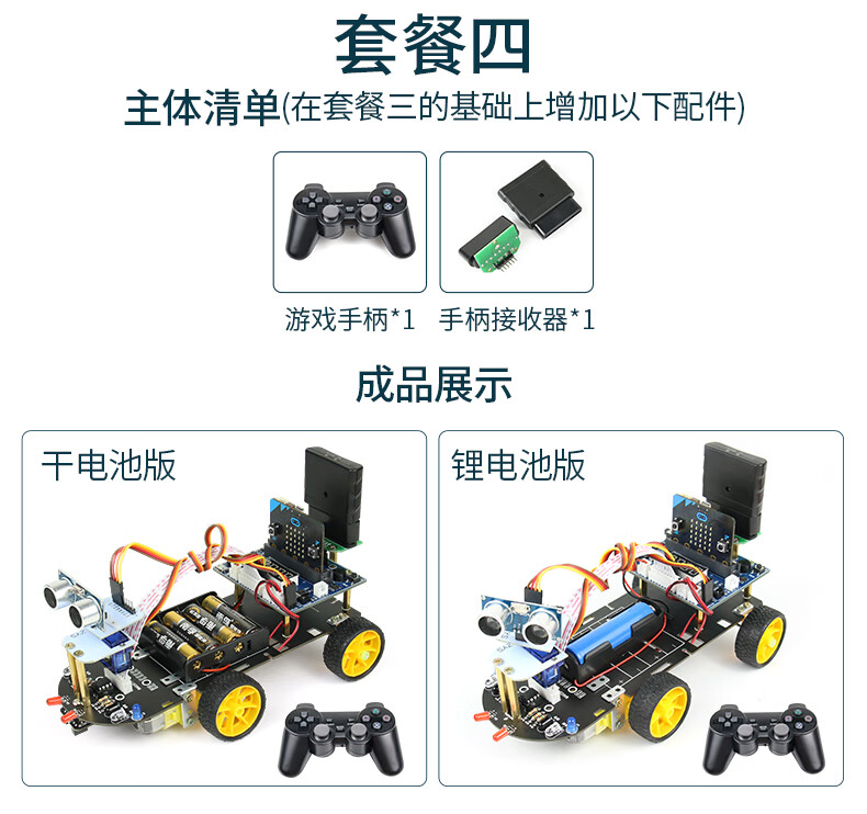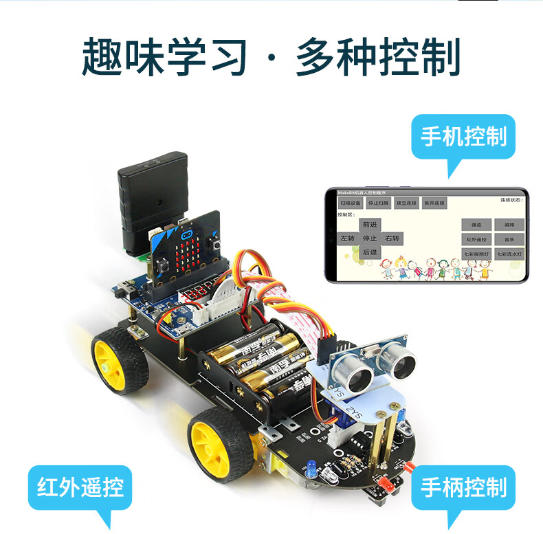 Yue Changsheng microbit programming smart car kit graphical Python programming maker education handle control package one dry battery version (including motherboard)