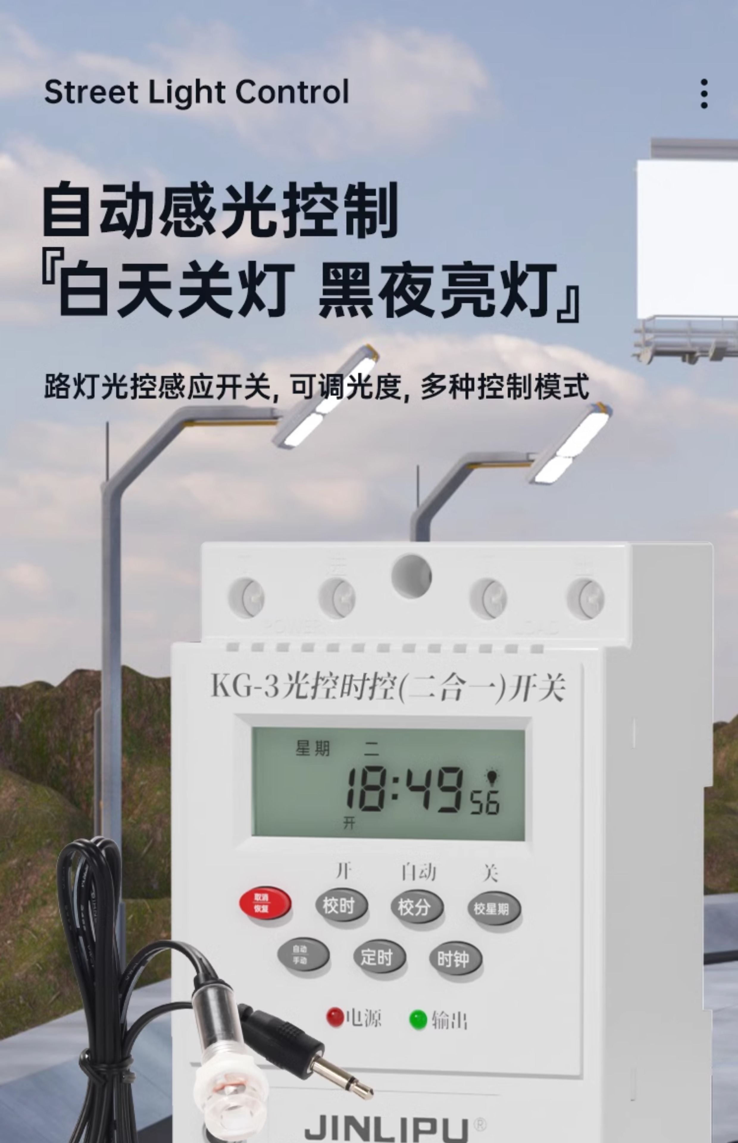 Yue Changsheng light control switch intelligent time control 220v adjustable dark and bright fully automatic light sensor switch street light timing controller street light control
