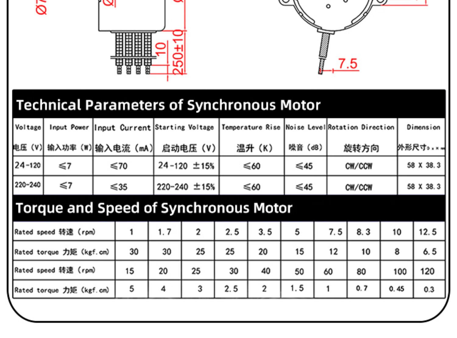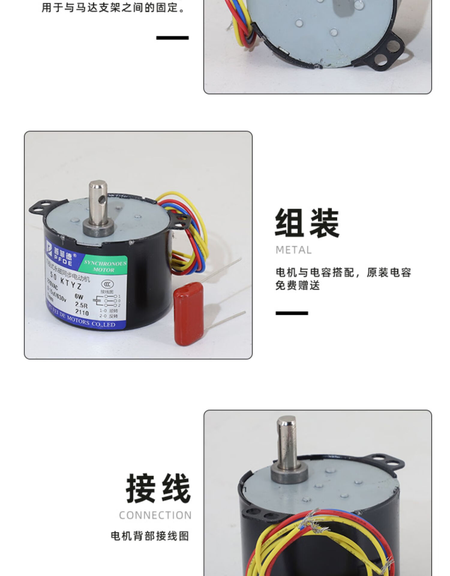 Yue Changsheng 50KTYZ permanent magnet synchronous motor 220V AC motor forward and reverse controllable low-speed micro motor in stock 1 revolution per minute (with capacitor) motor + terminal block + bracket