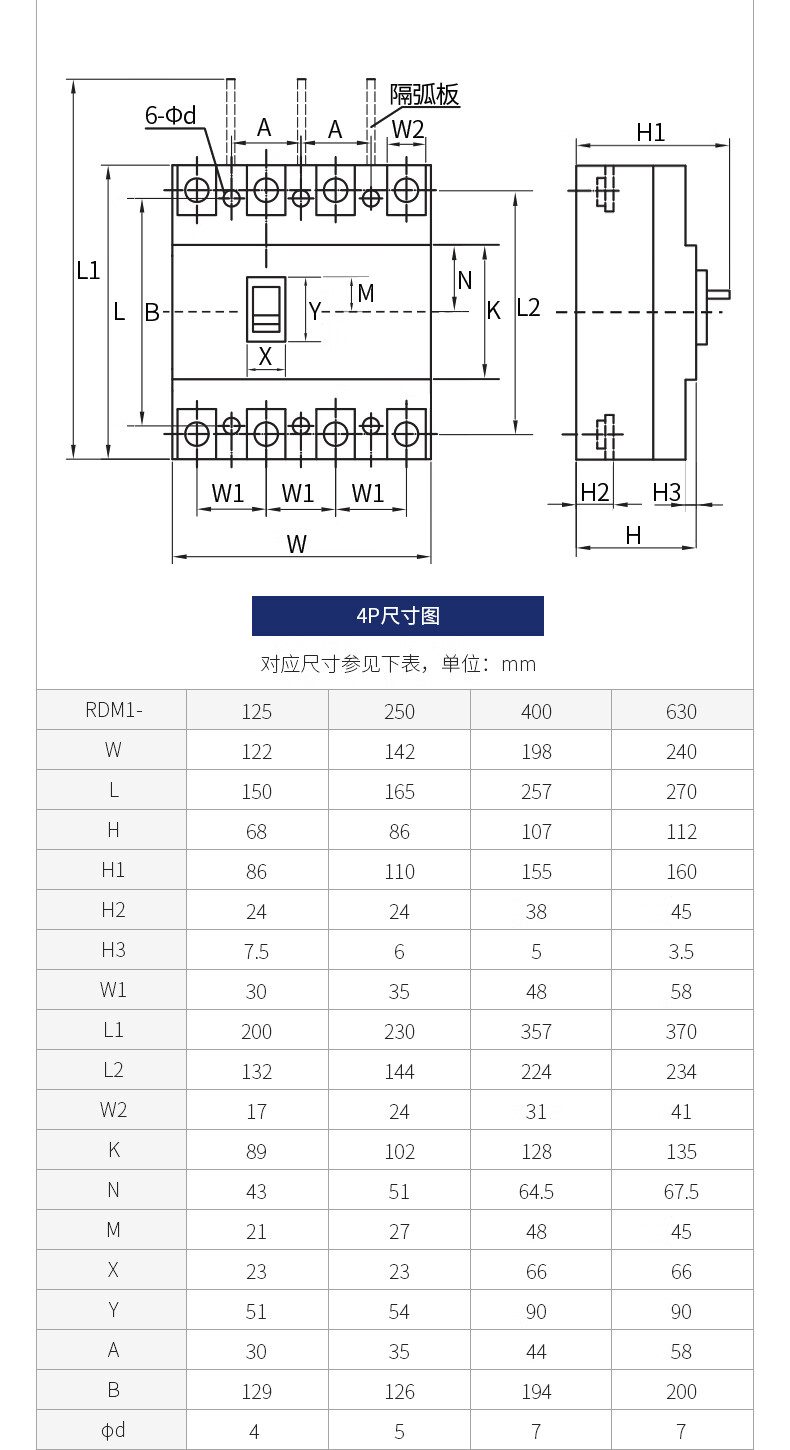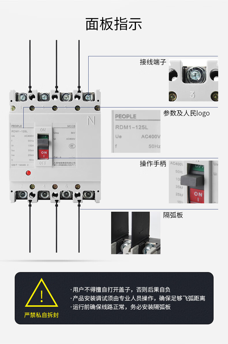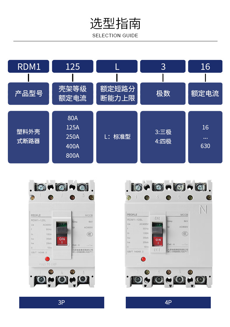 People's molded case circuit breaker RDM1 air switch 100A160A250A400A three-phase 3P four-wire 4P380v empty 1250A 3P