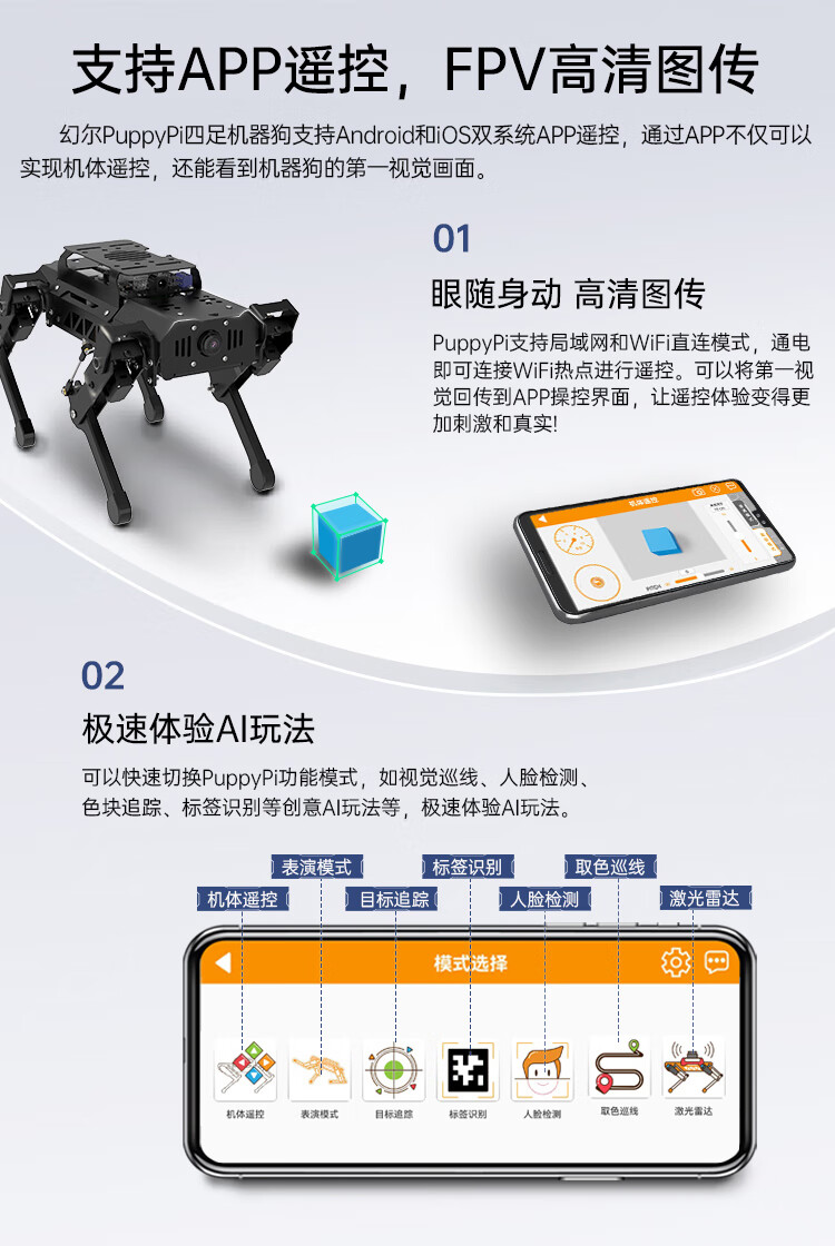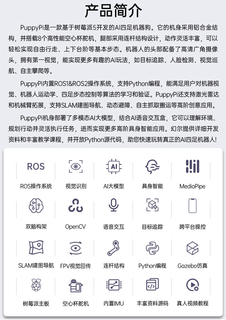 Yue Changsheng Huan'er ROS robot Raspberry Pi four-legged mechanical dog AI vision large model bionic programmable slam mapping standard version Raspberry Pi 4B/4G