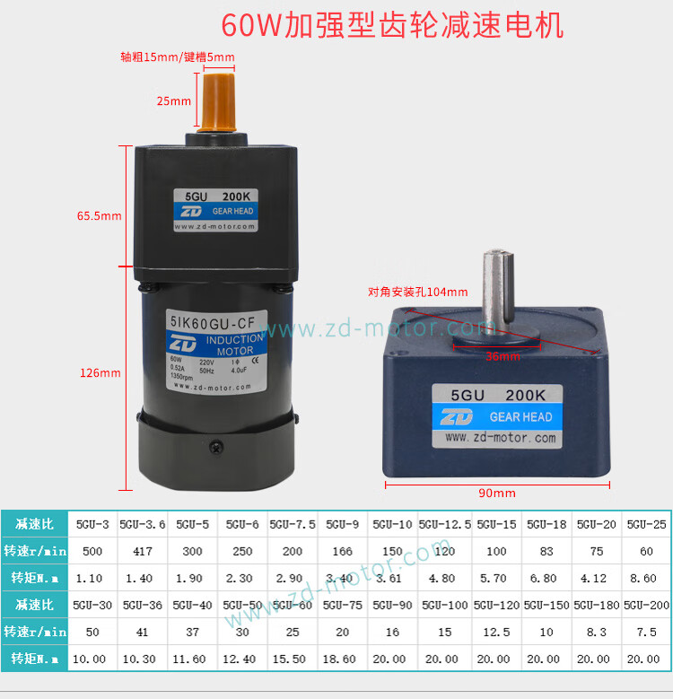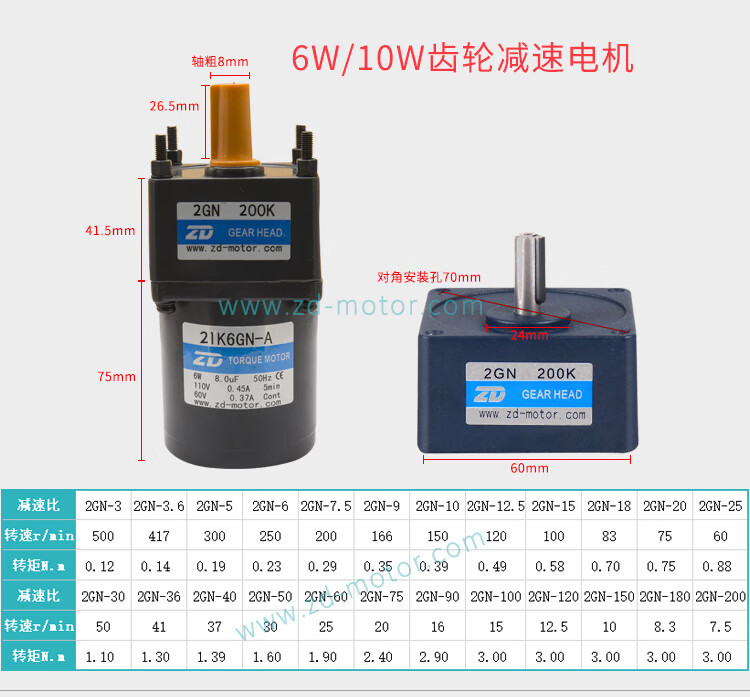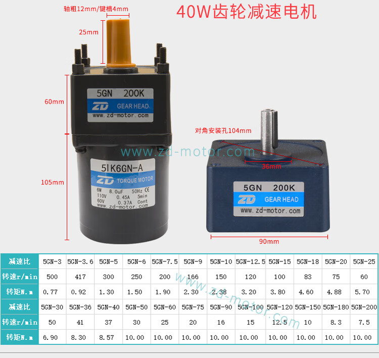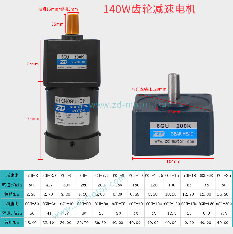 Yue Changsheng Zhongda AC motor 6W-250W110V/220V speed regulating motor gear reducer speed ratio 3-750 optional 6IK250RGU-CF 110V ordinary speed regulator