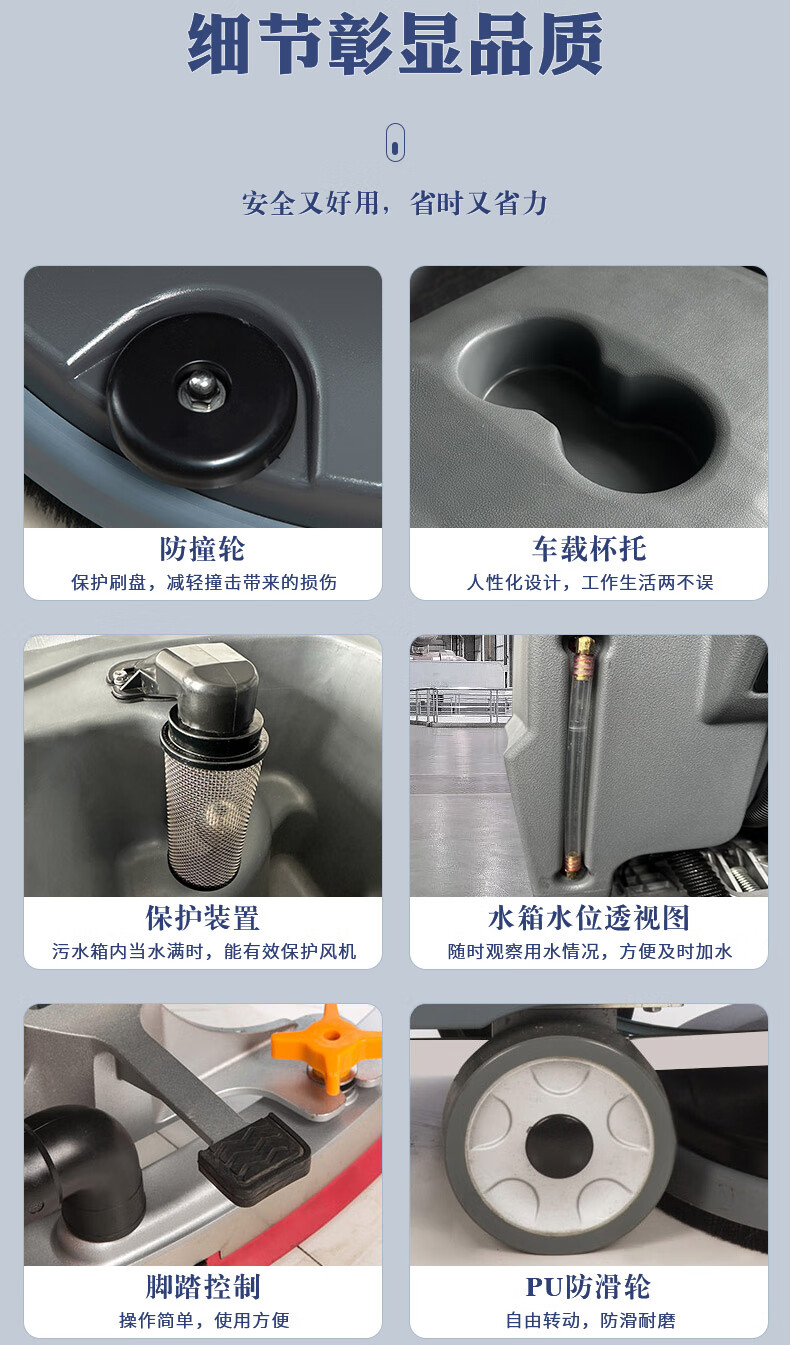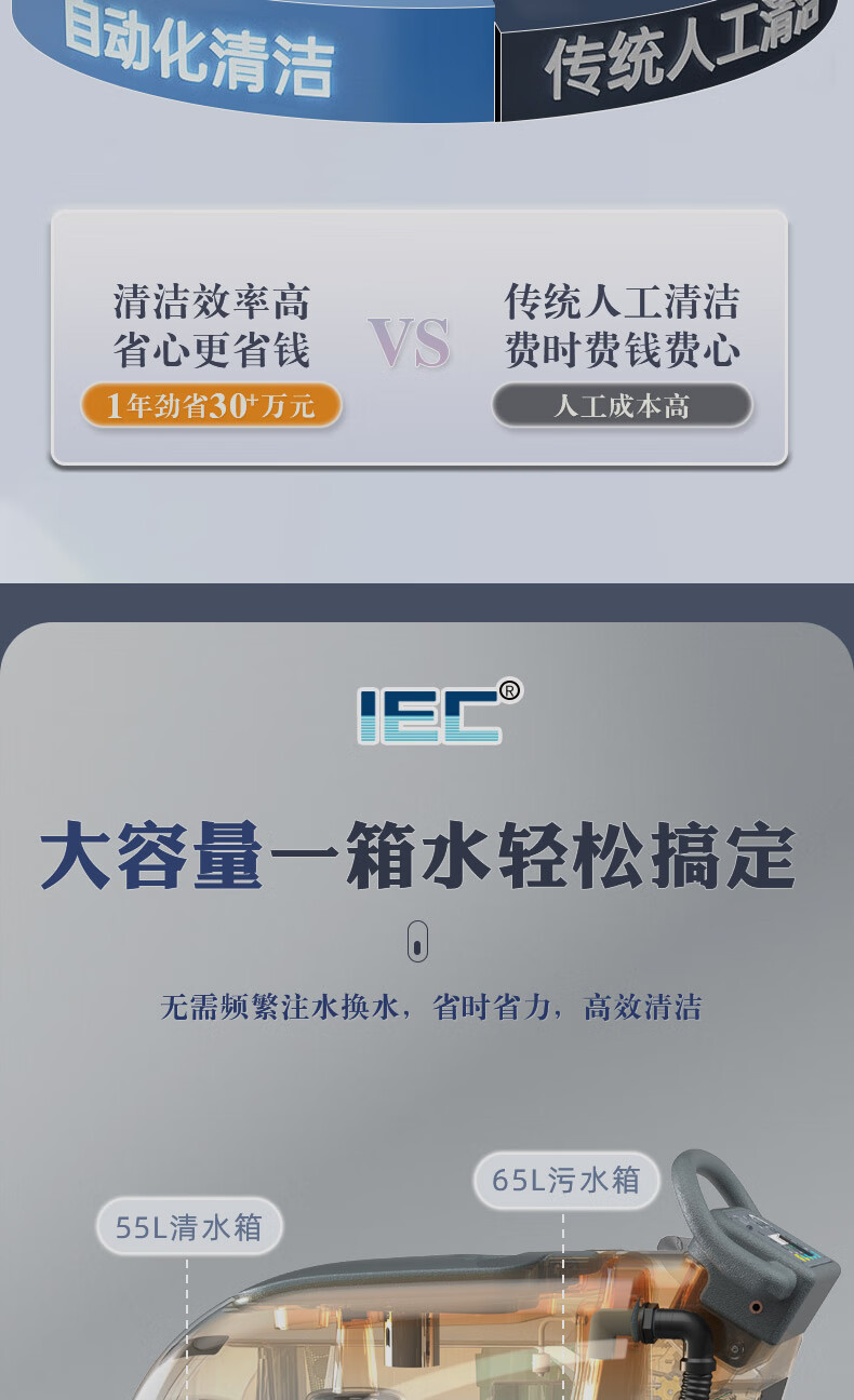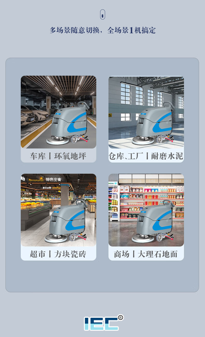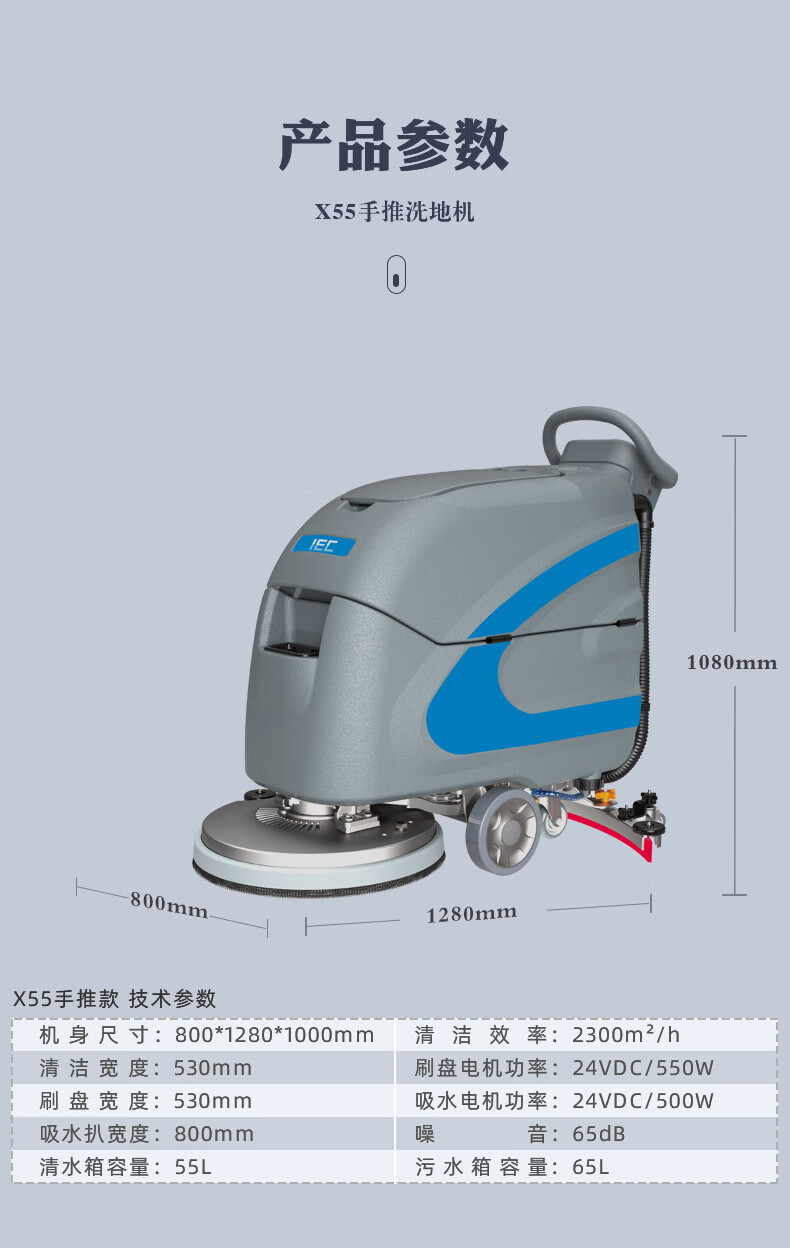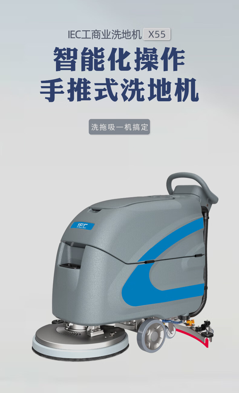 IEC Industrial Floor Scrubber Hand Push Factory Workshop Commercial Suction and Mopping Integrated Supermarket Property Floor Cleaner X40 Hand Push Lithium Battery-Standard Version