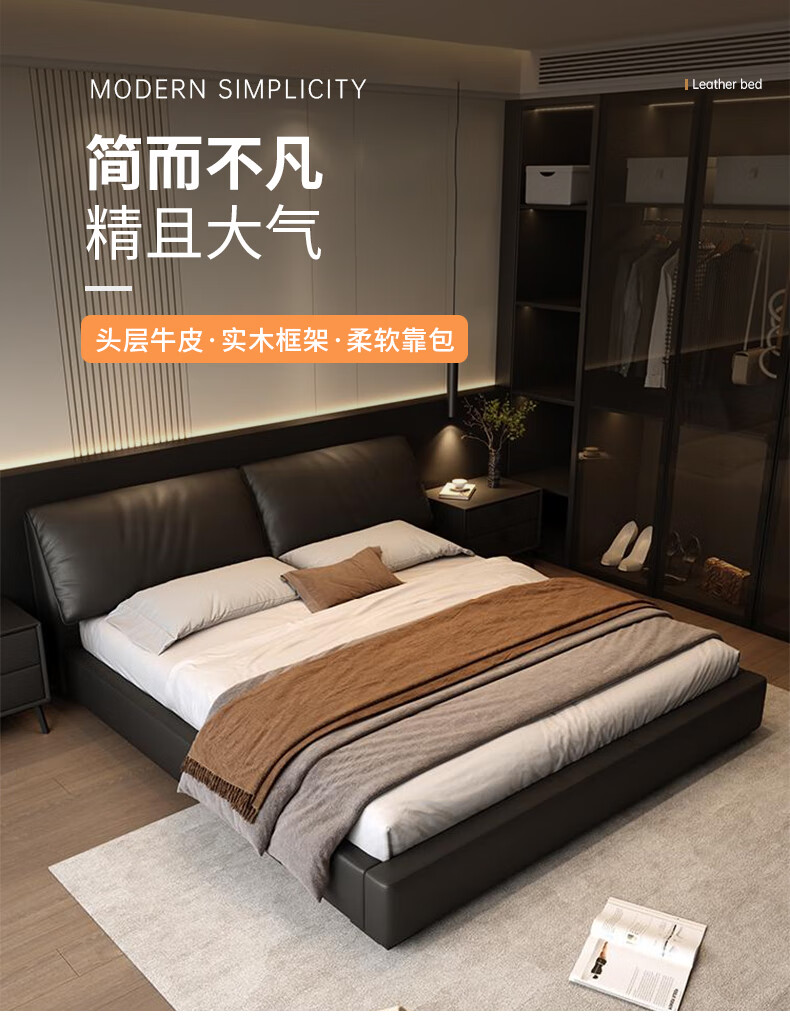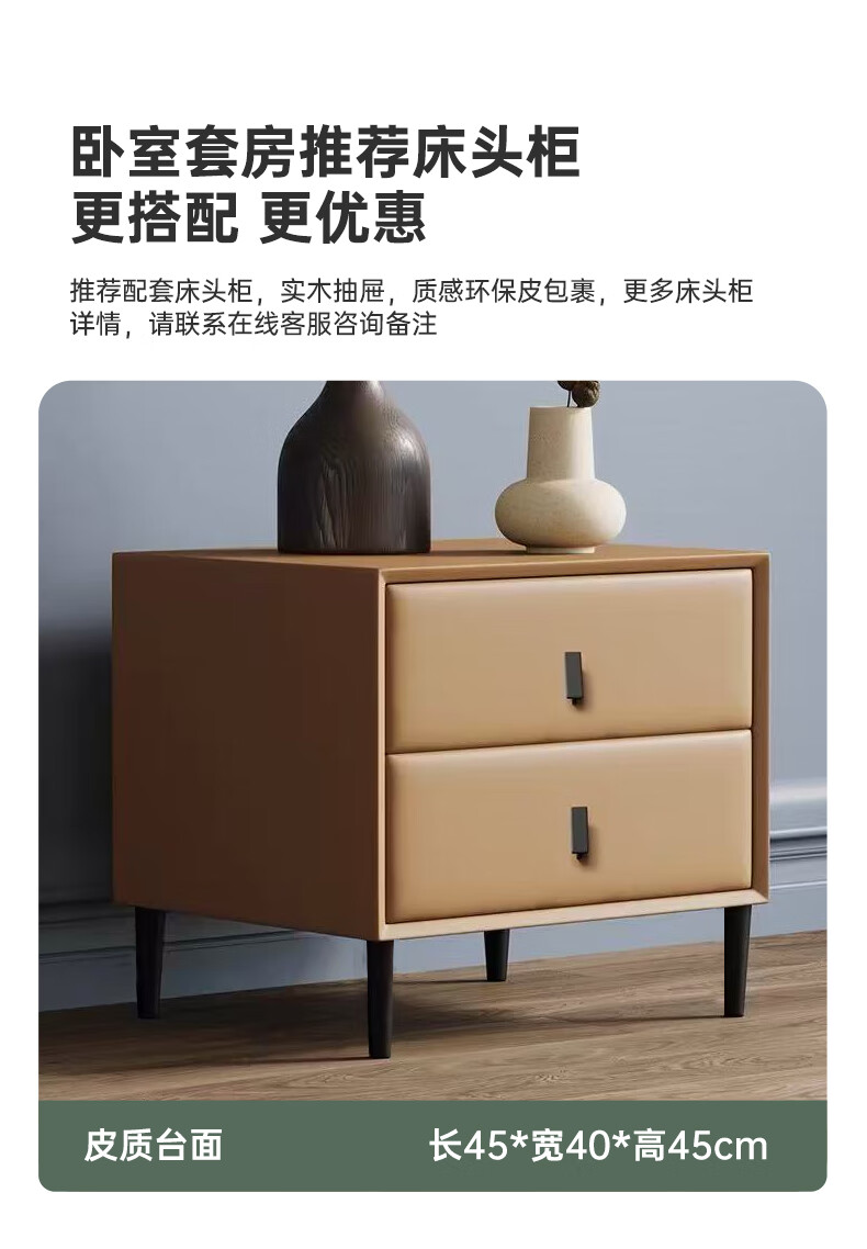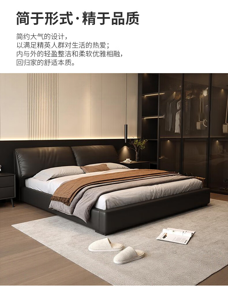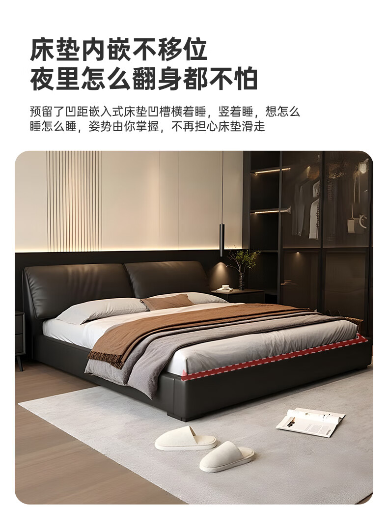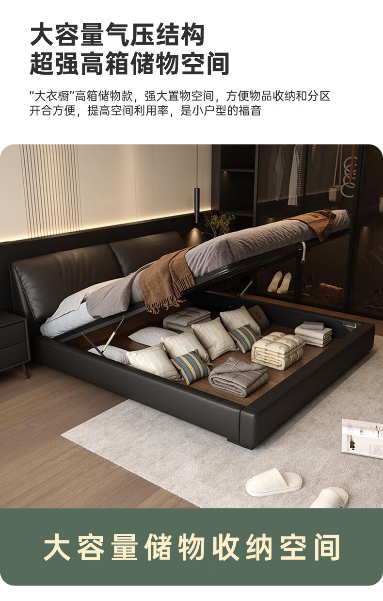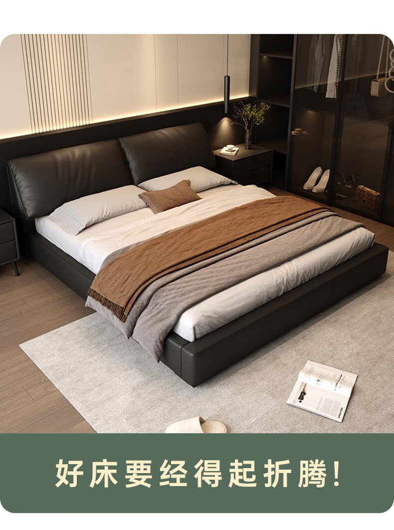 Duofei Kingdom Leather Bed Light Luxurious Minimalist Elephant Ear Bed 1.8m 2m Double Bed with Built-in Storage Master Bedroom King Bed F2506 Frame Leather Bed + 2 Cabinets + 5D Lavender Mattress 1.8*2m S Grade First Layer Cowhide 9D Full Bed