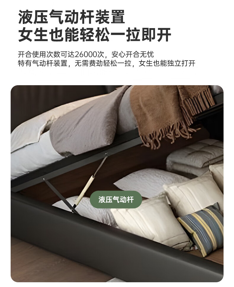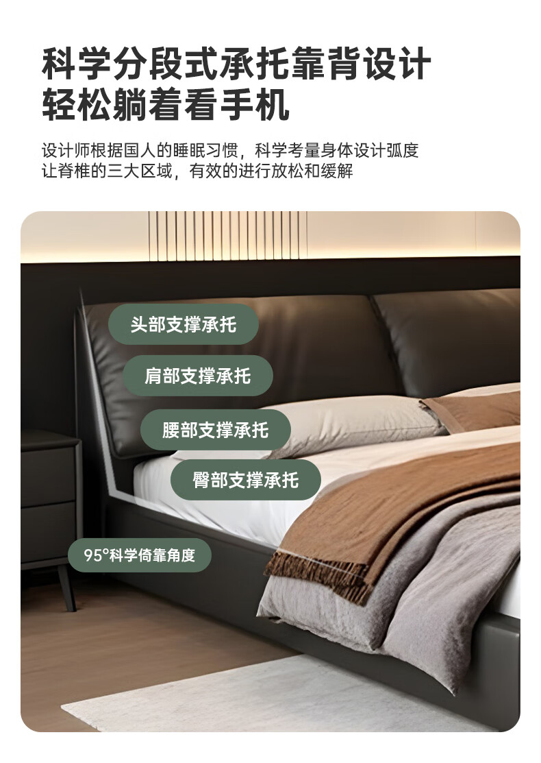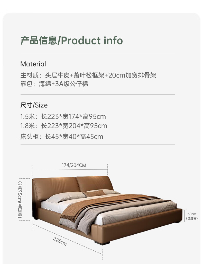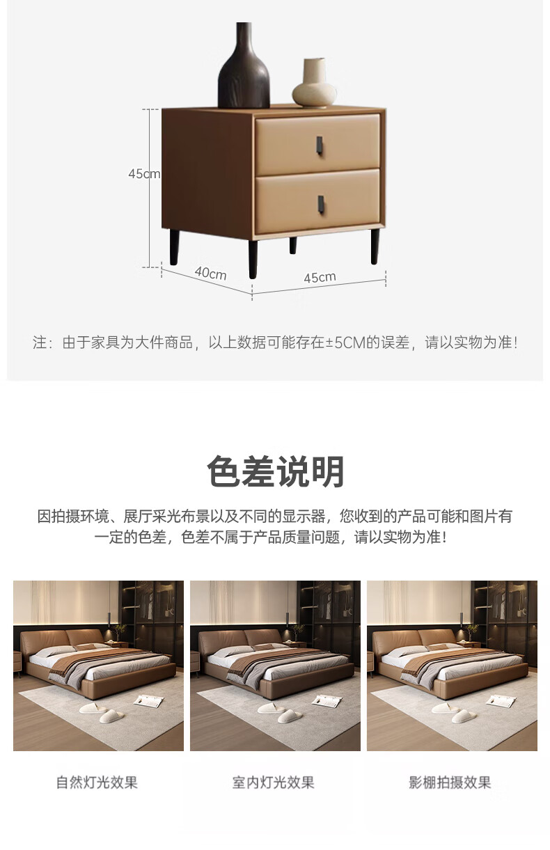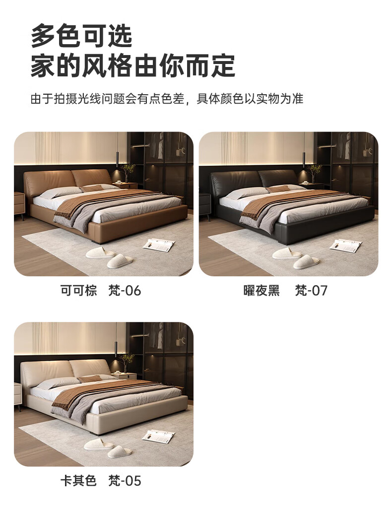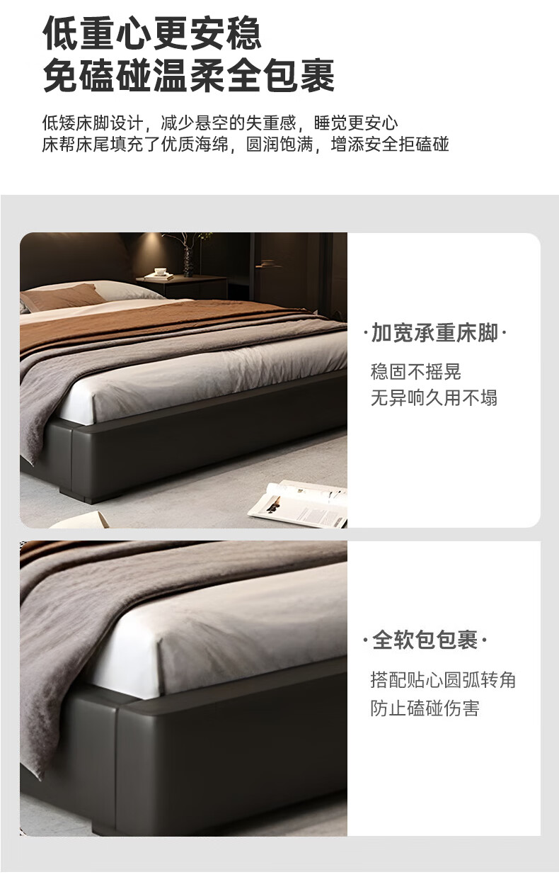 Duofei Kingdom Leather Bed Light Luxurious Minimalist Elephant Ear Bed 1.8m 2m Double Bed with Built-in Storage Master Bedroom King Bed F2506 Frame Leather Bed + 2 Cabinets + 5D Lavender Mattress 1.8*2m S Grade First Layer Cowhide 9D Full Bed