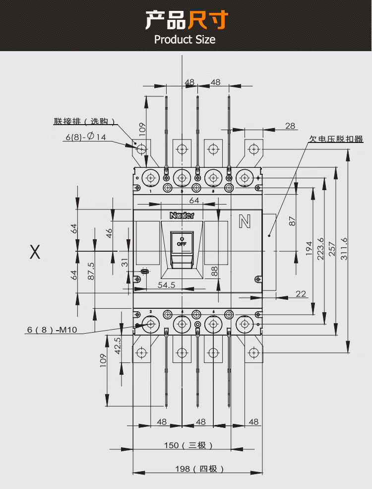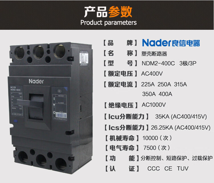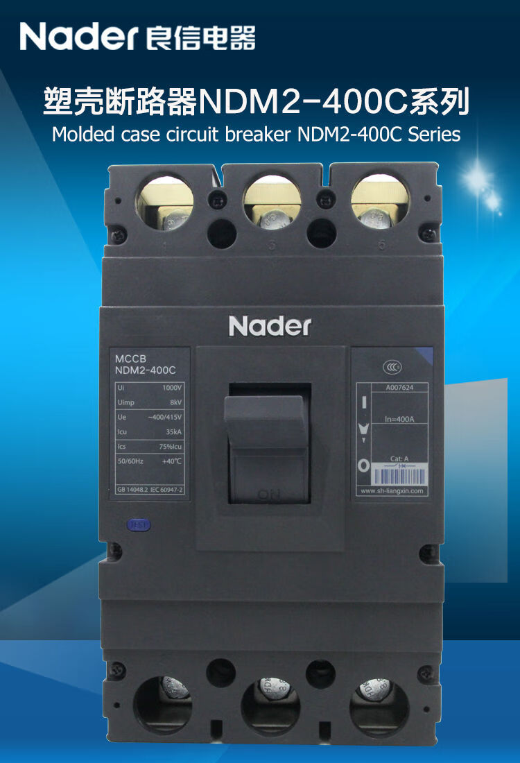 NDM2-400C/3300 series molded case circuit breaker Nader Shanghai Liangxin air switch molded case circuit breaker 350A 3P