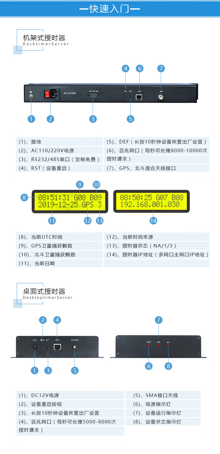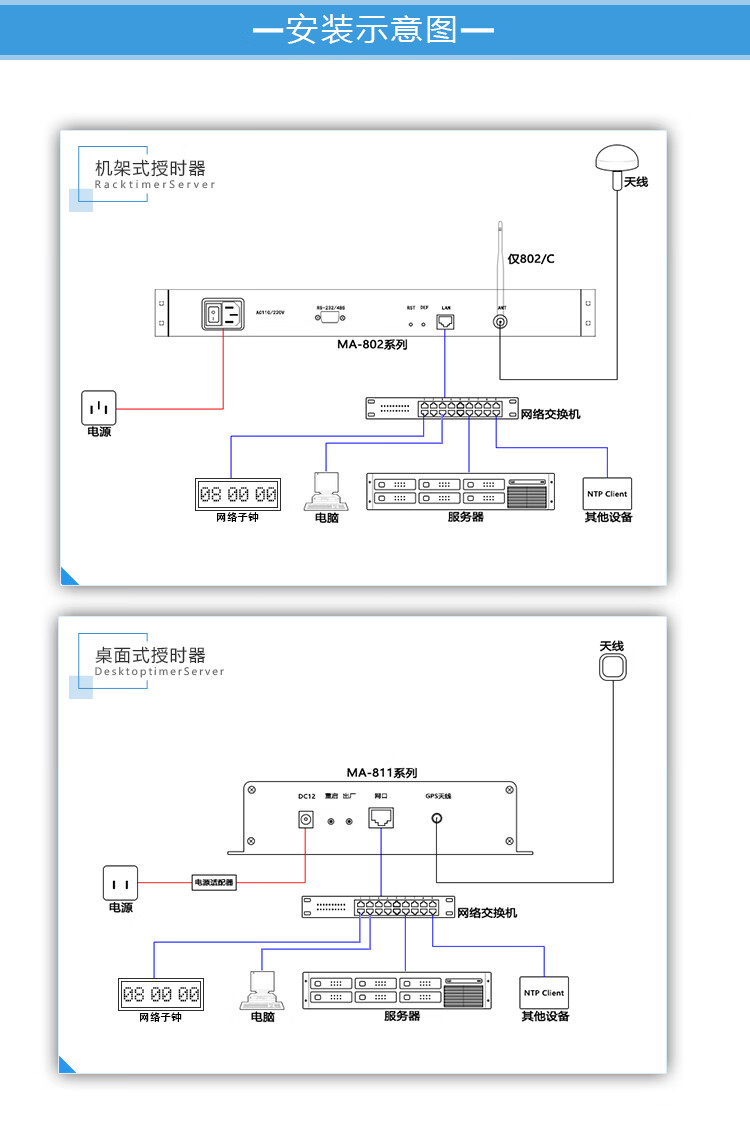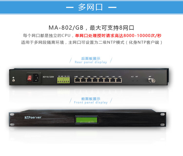 Yue Changsheng NTP server GPS Beidou timer 1U rack-mounted standard time network clock multi-network port MA-802/GB dual-mode rack-mounted 6 network ports