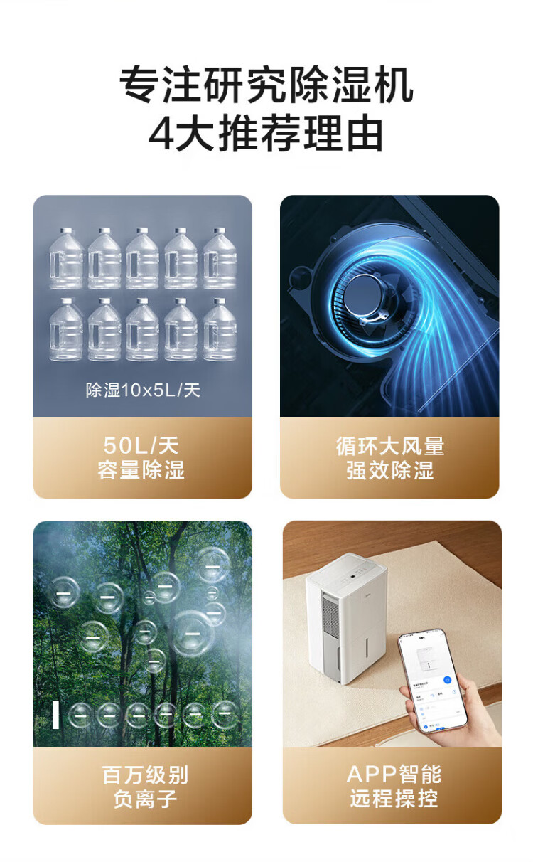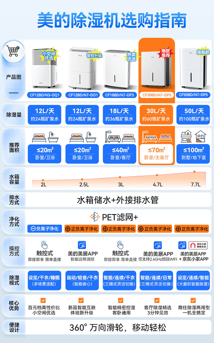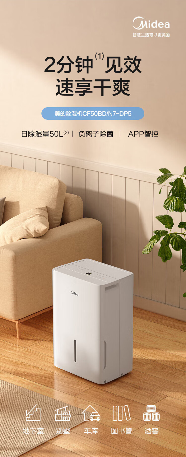 Midea Dehumidifier Household Dehumidifier Dehumidifier Dehumidifier Indoor Moisture-proof Special App Intelligent Control Basement Villa Industrial Dehumidification 50L/day CF50BD/N7-DP5 18L/day 20-40 Smart and cost-effective Factory direct consultation for more discounts 50L/day 70-120