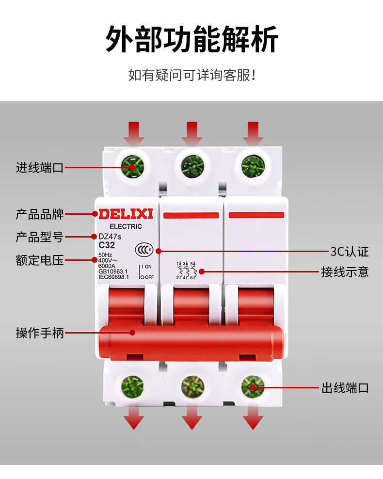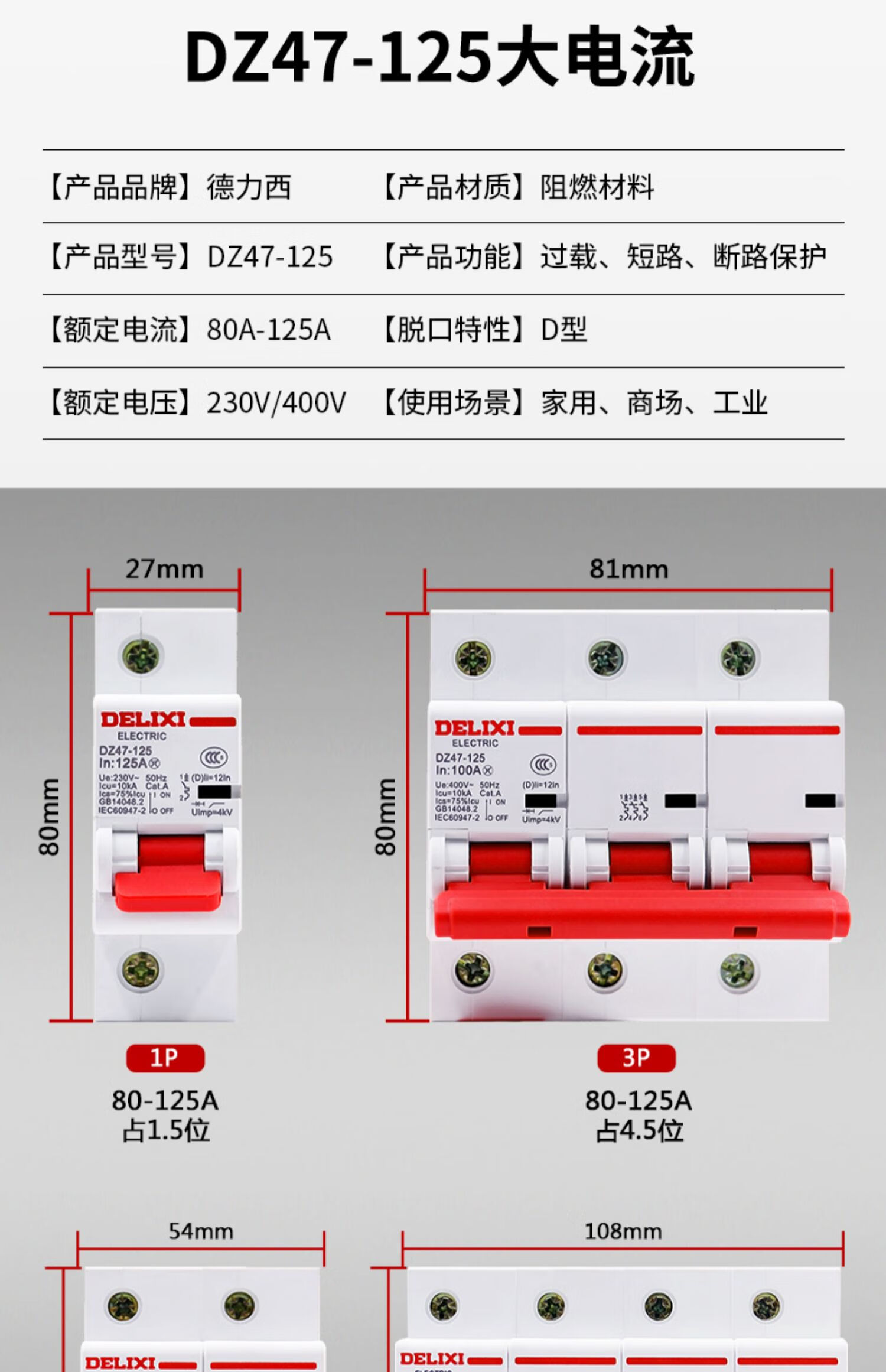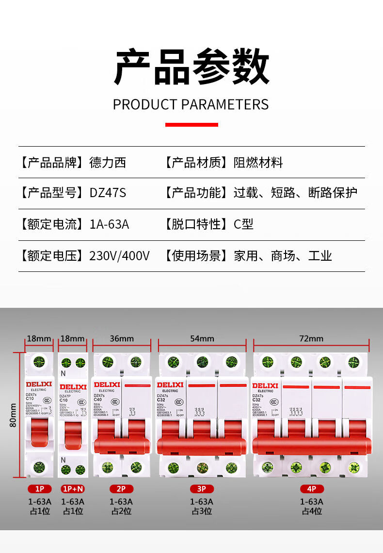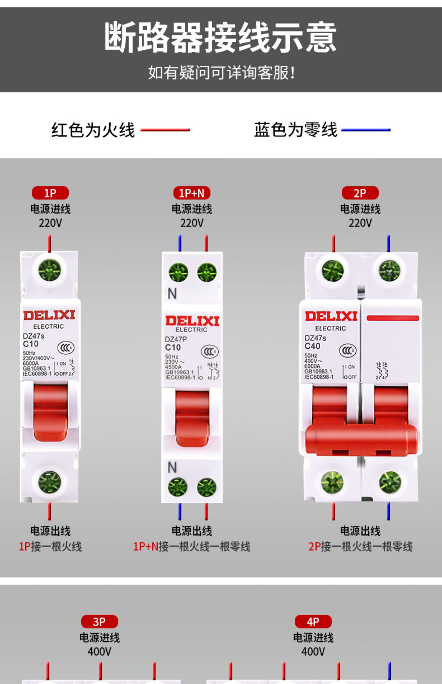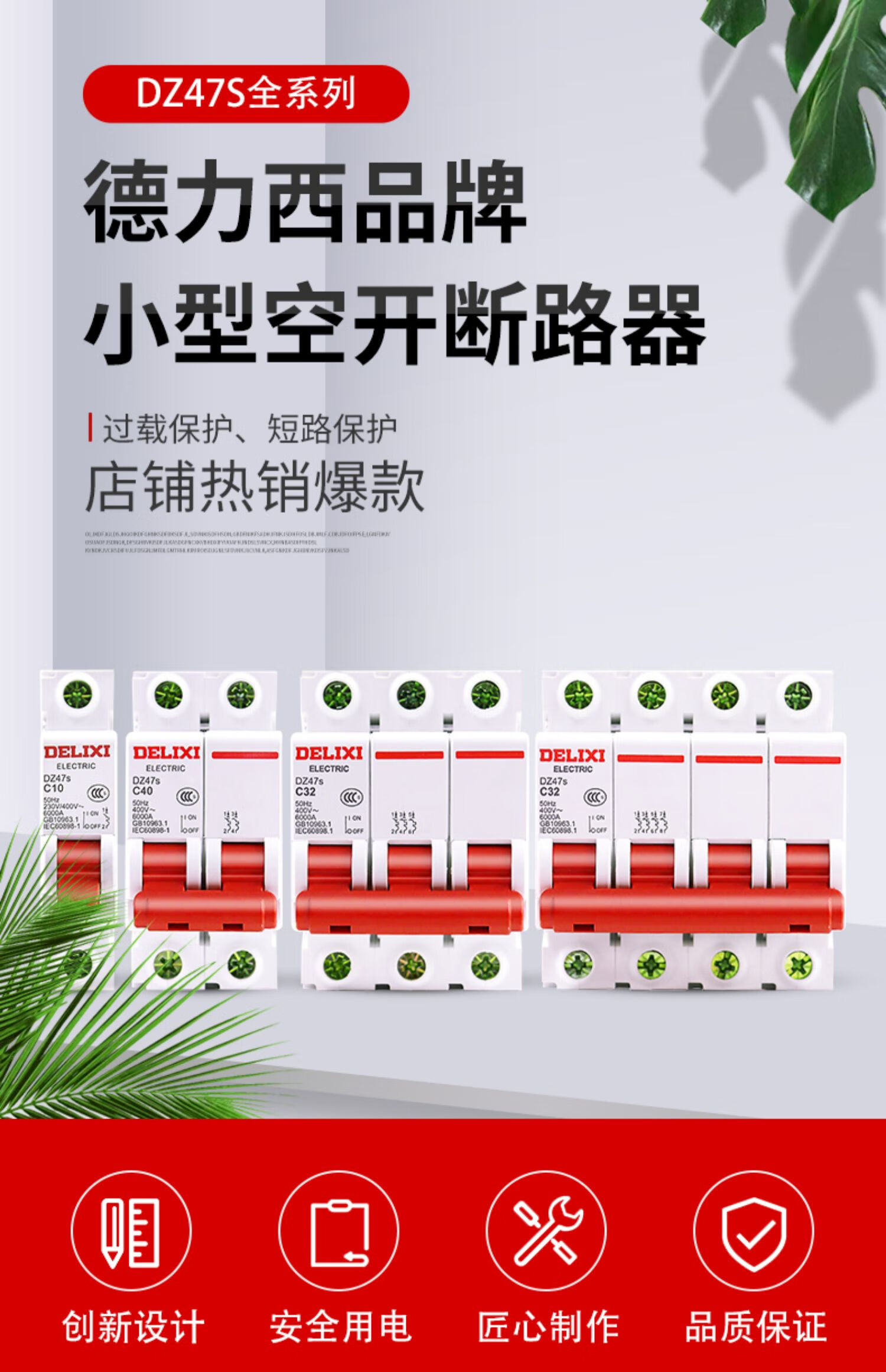 Delixi dz47s air switch 1p air switch 2p household 3p small circuit breaker 40a32a63a main switch 10A 4p