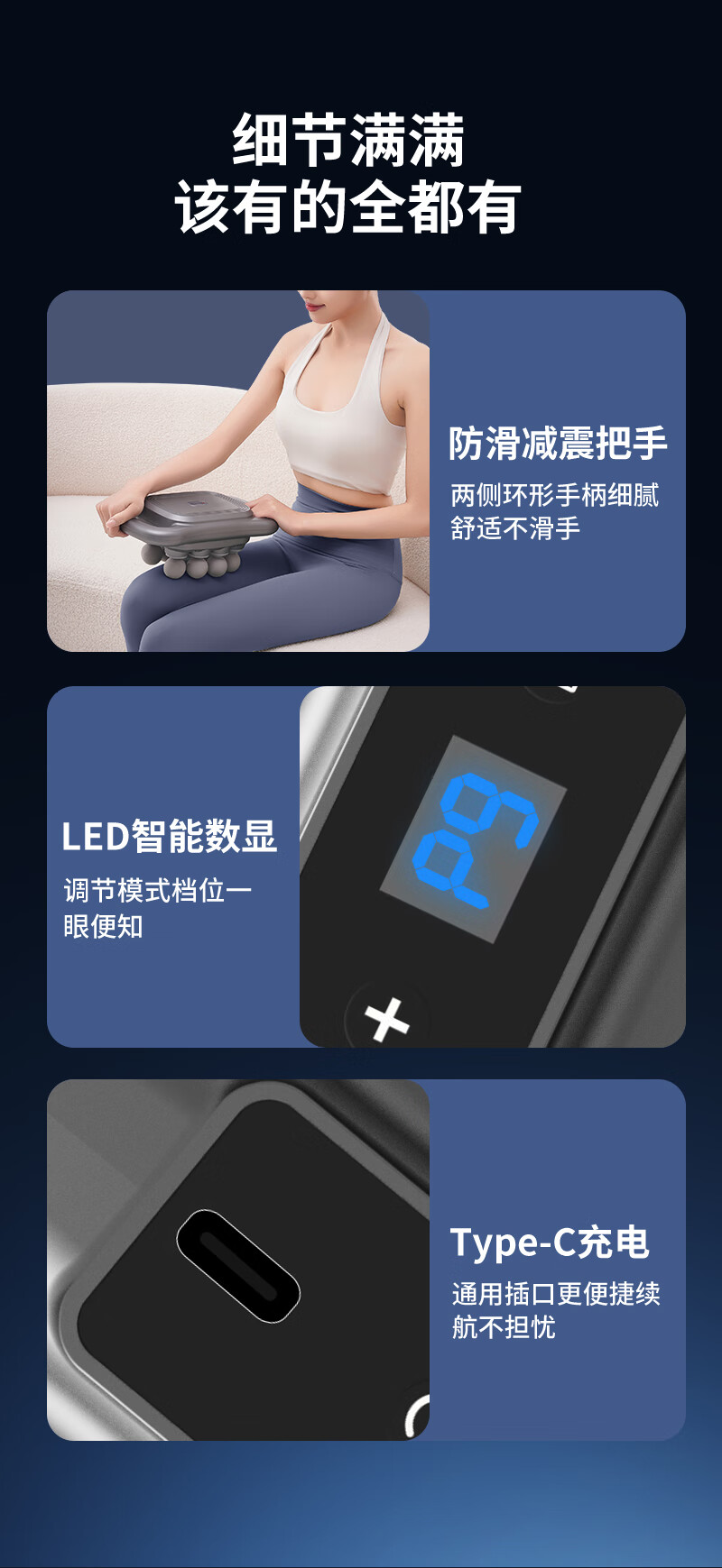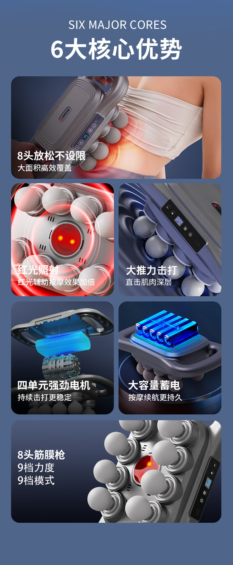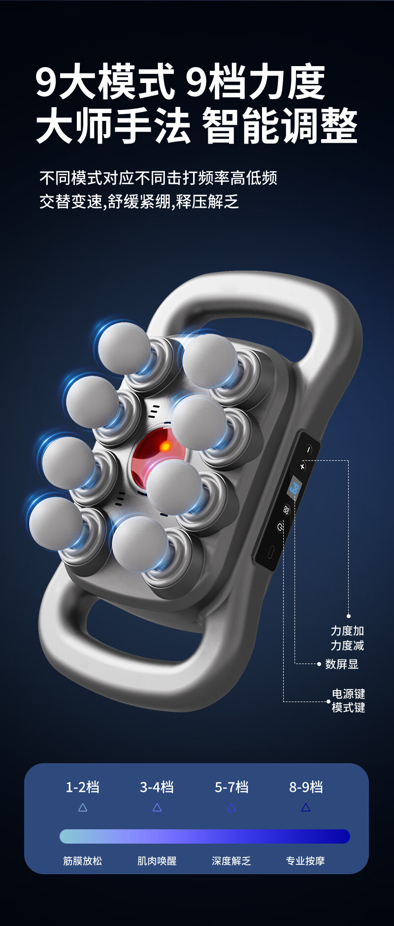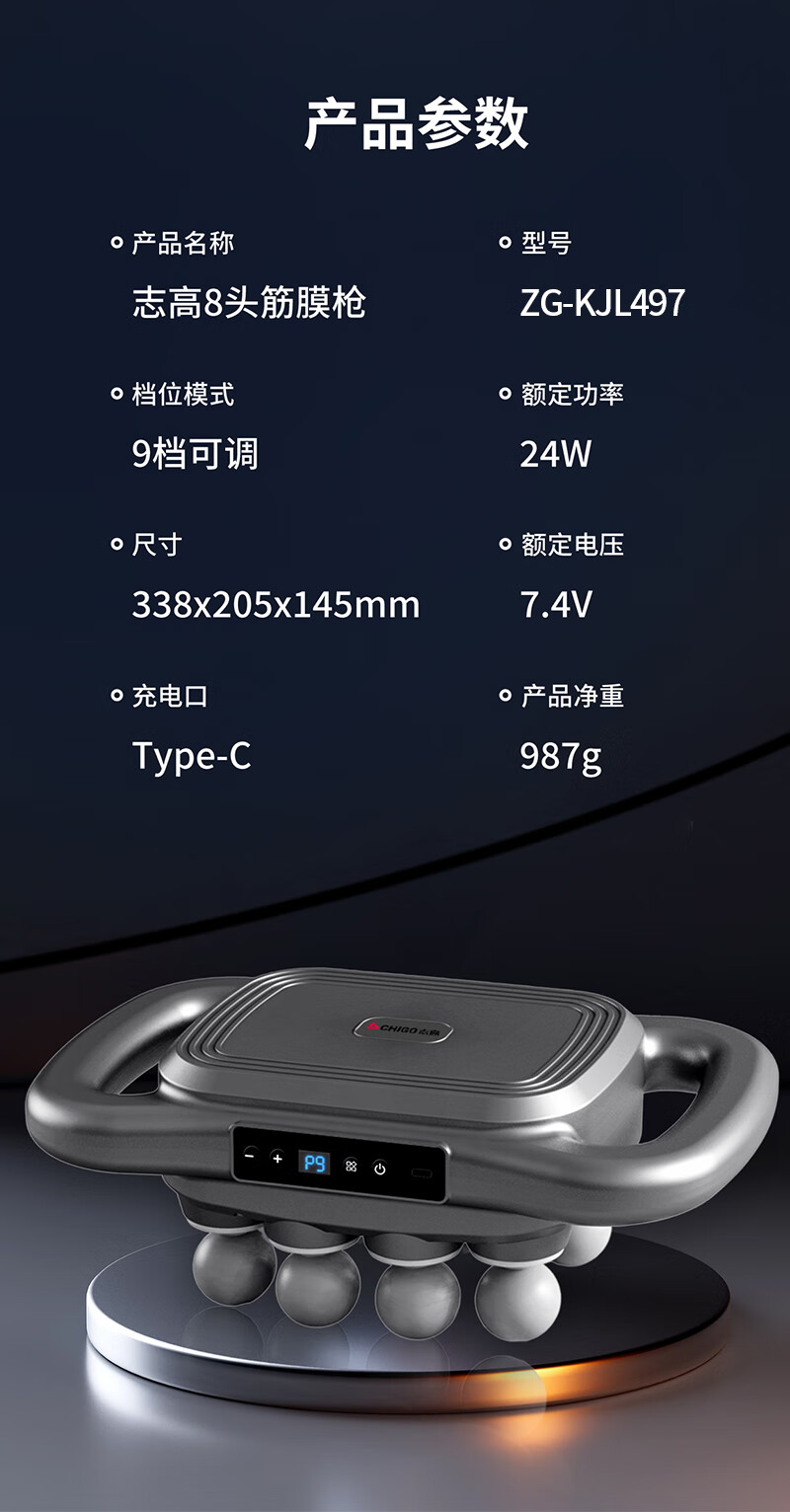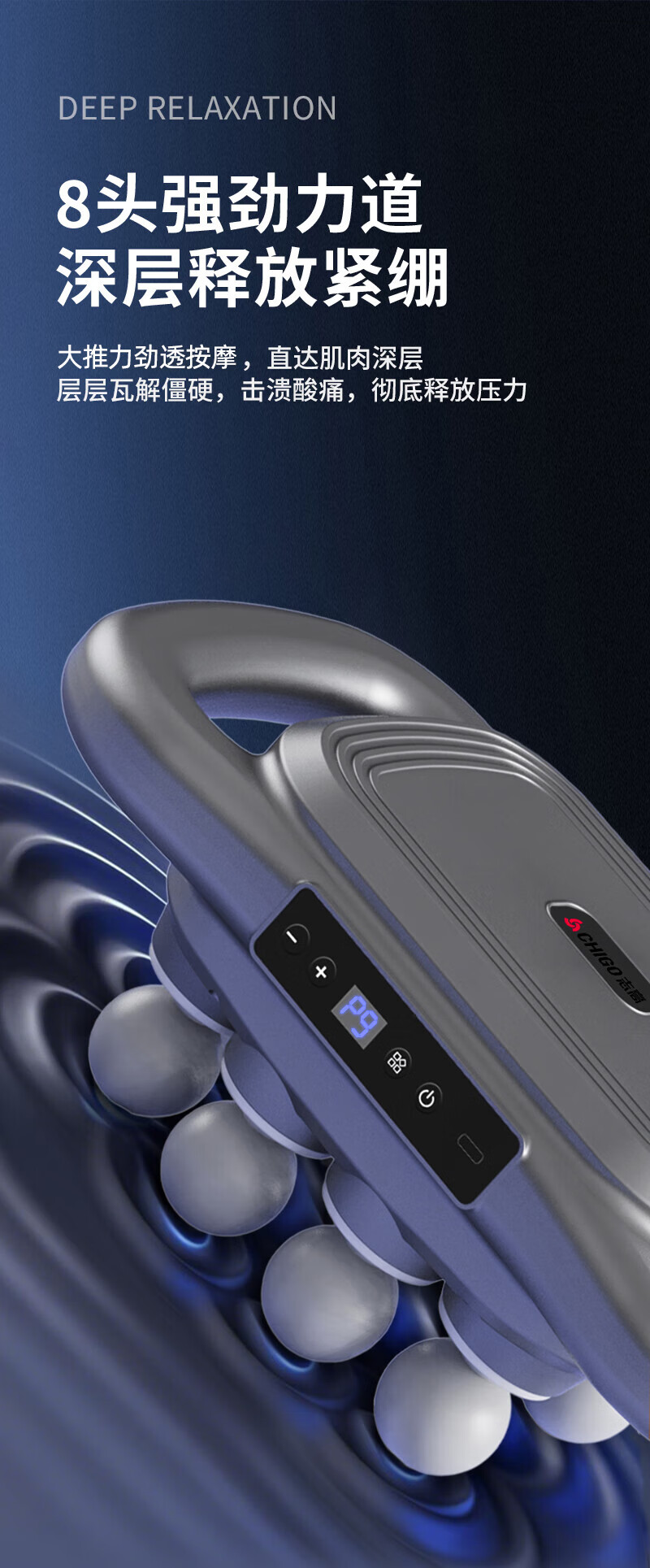 Chigo eight-head fascia gun leg fully automatic kneading multi-functional full body deep muscle relaxation massager waist electric neck mask gun calf massager practical Christmas gift Chen Xiaoshuo twelve-head linkage 9 gears + LCD digital display + power lithium battery gray