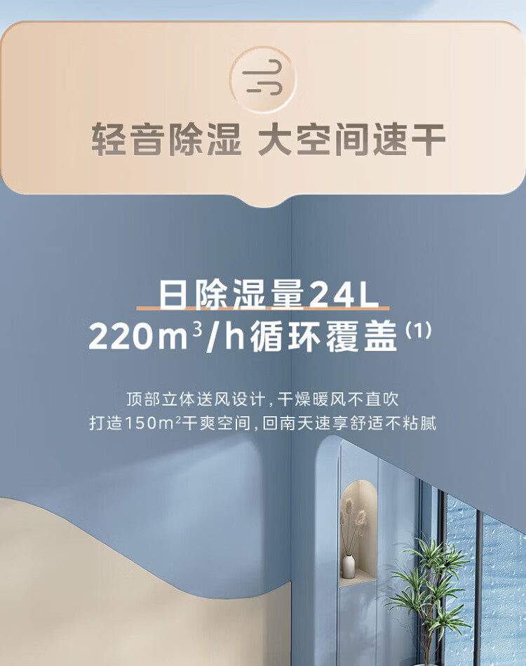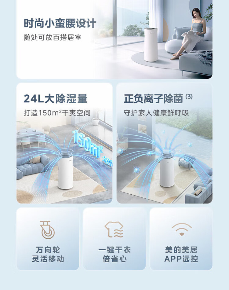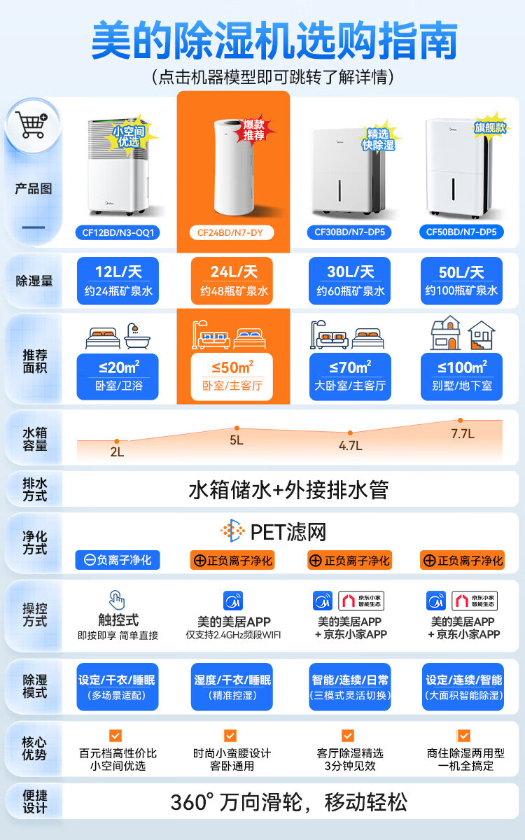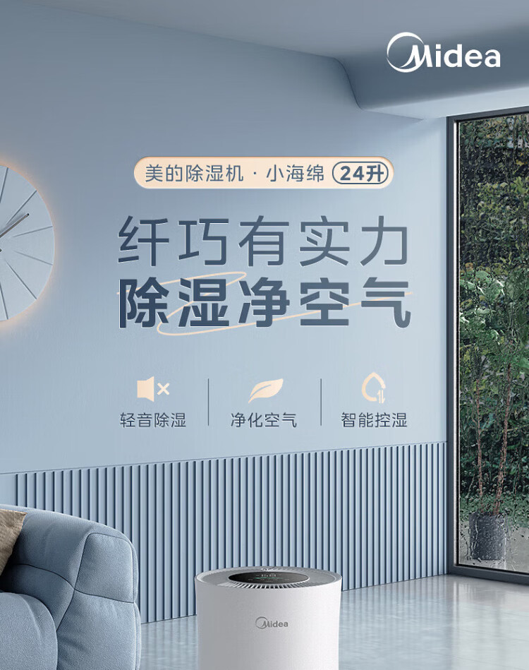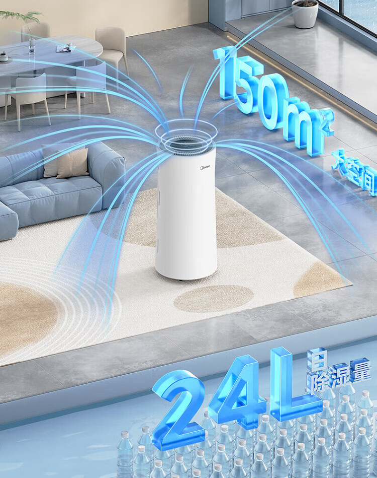 Midea dehumidifier dehumidifier WIFI intelligent control positive and negative ion sterilization intelligent control household soft sound dehumidifier dehumidification capacity 24 liters/day CF24BD/N7-DY 12L/day 2-20 bedroom dry clothes moisture-proof OQ1 24L/day 50 household dehumidifier